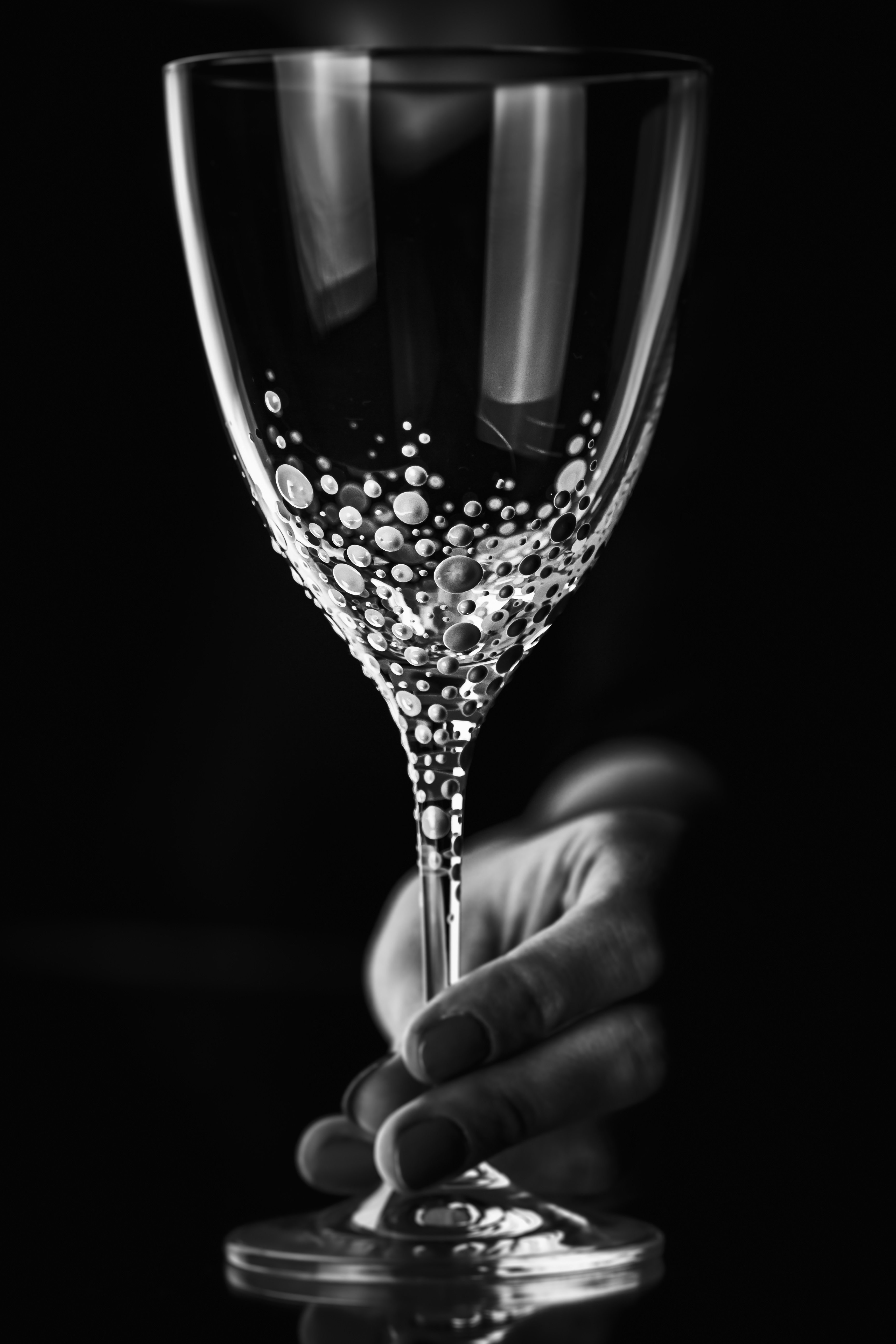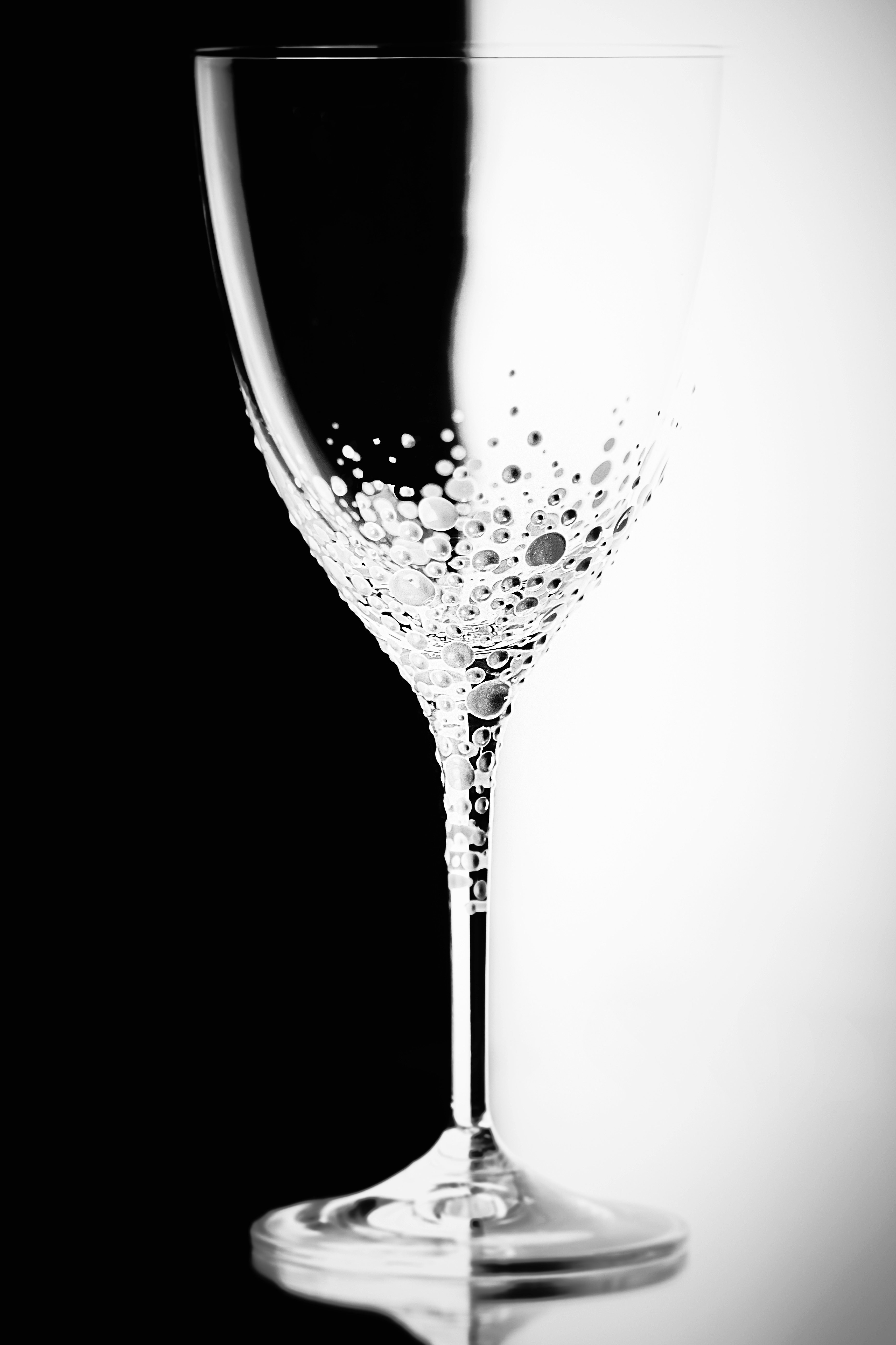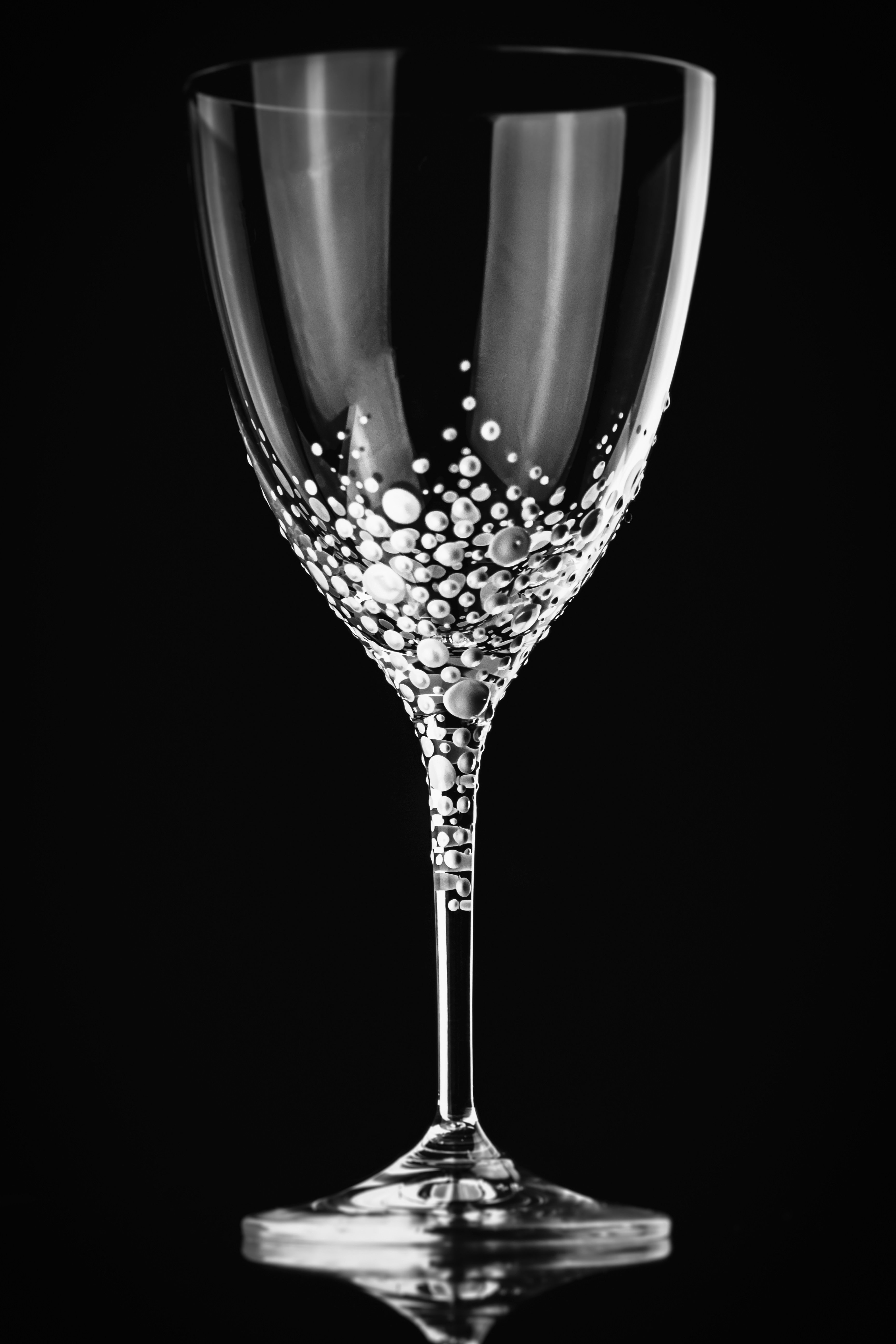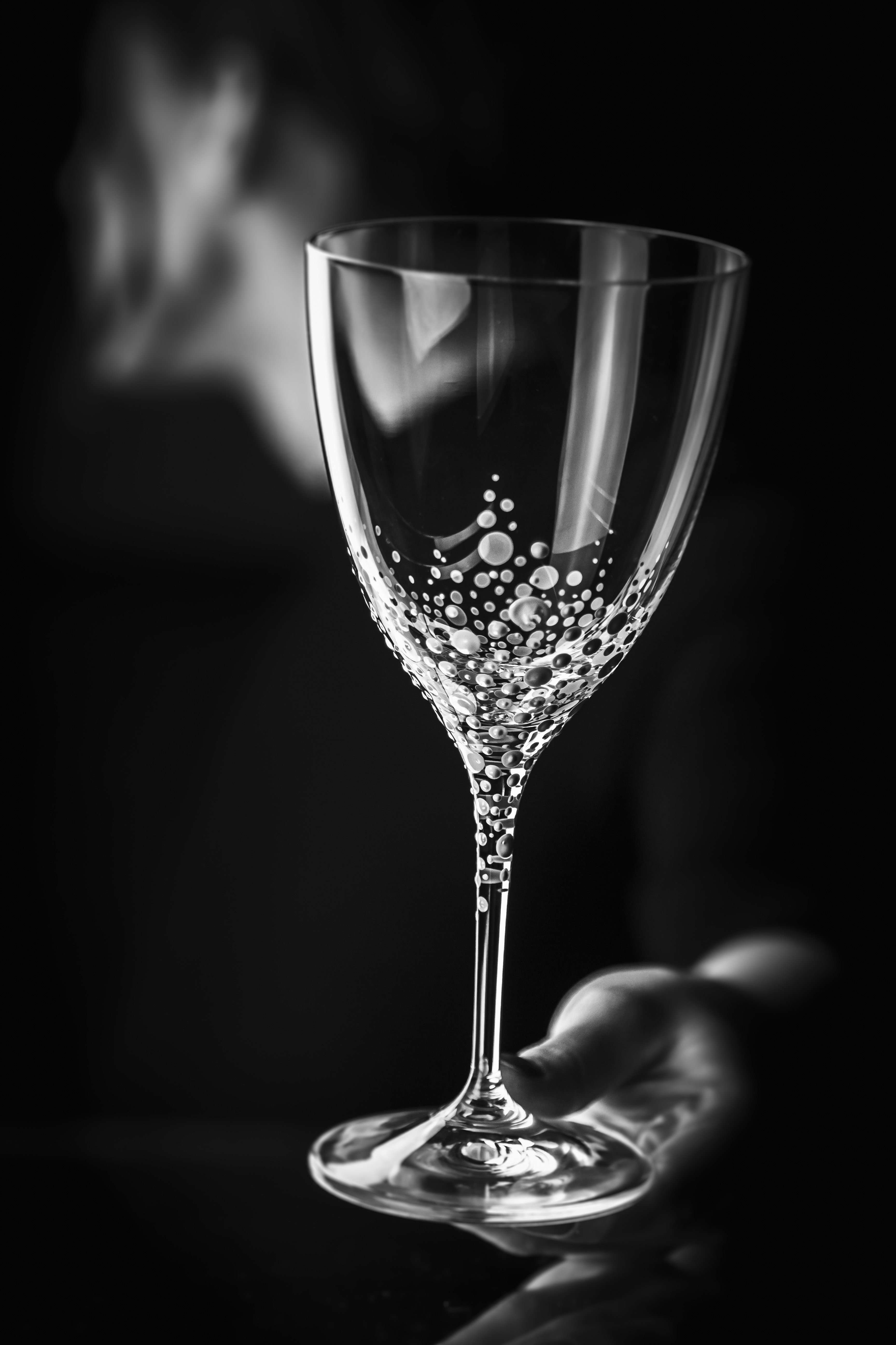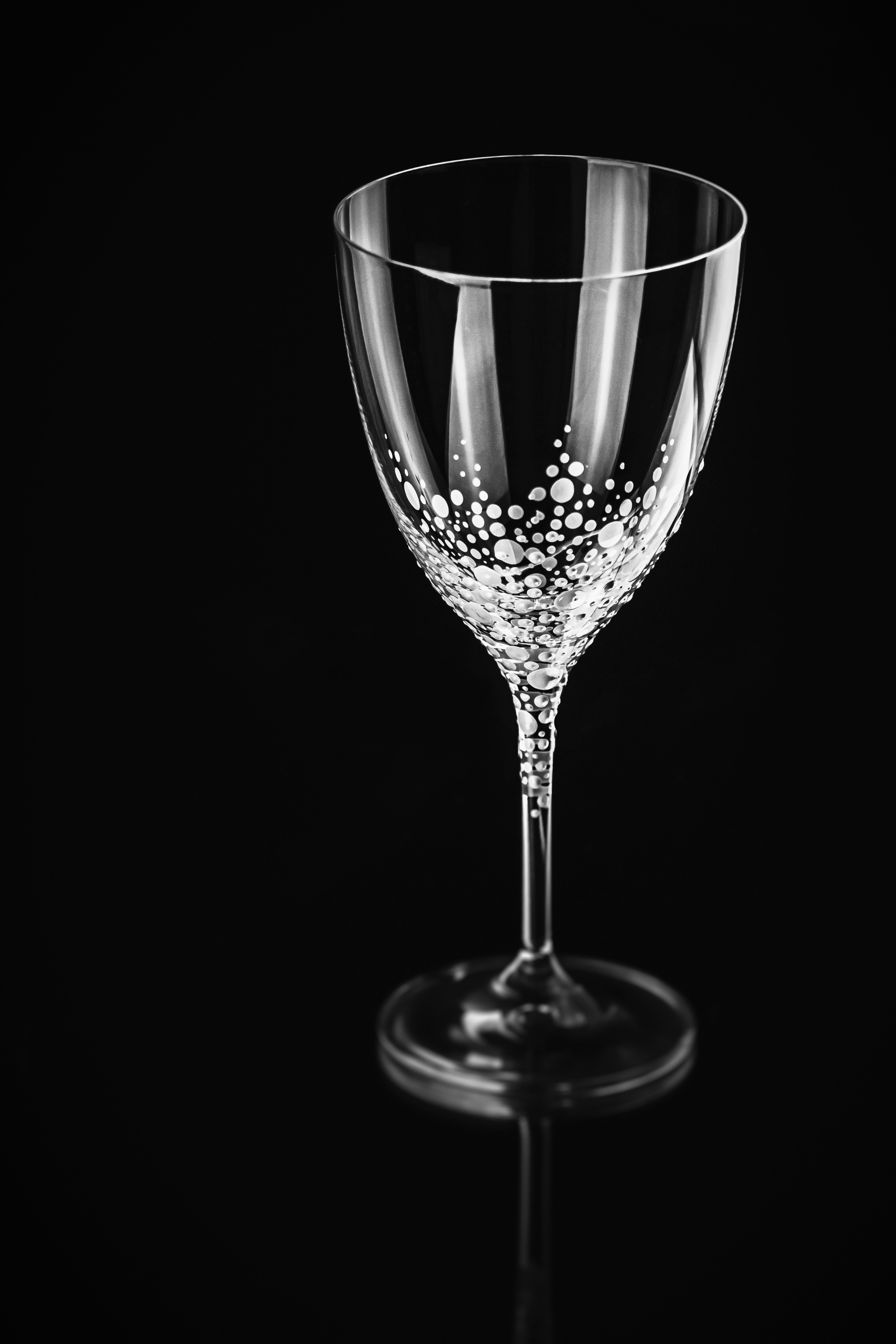 Křišťálová sklenice na bílé víno Grip je tvarem klasická a jednoduchá, to jí však na ladnosti a praktičnosti neubírá. Samotná dekorace je ruční a na dotek velice příjemná. Jedná se o malbu speciální bílou barvou, která získá po vysokoteplotním výpalu jedinečný lesklý efekt. Tečky vystupují do prostoru a jsou nejvíce orientovány okolo dna rozevřeného kalichu a nožičky, kde poutají pozornost na její obsah.