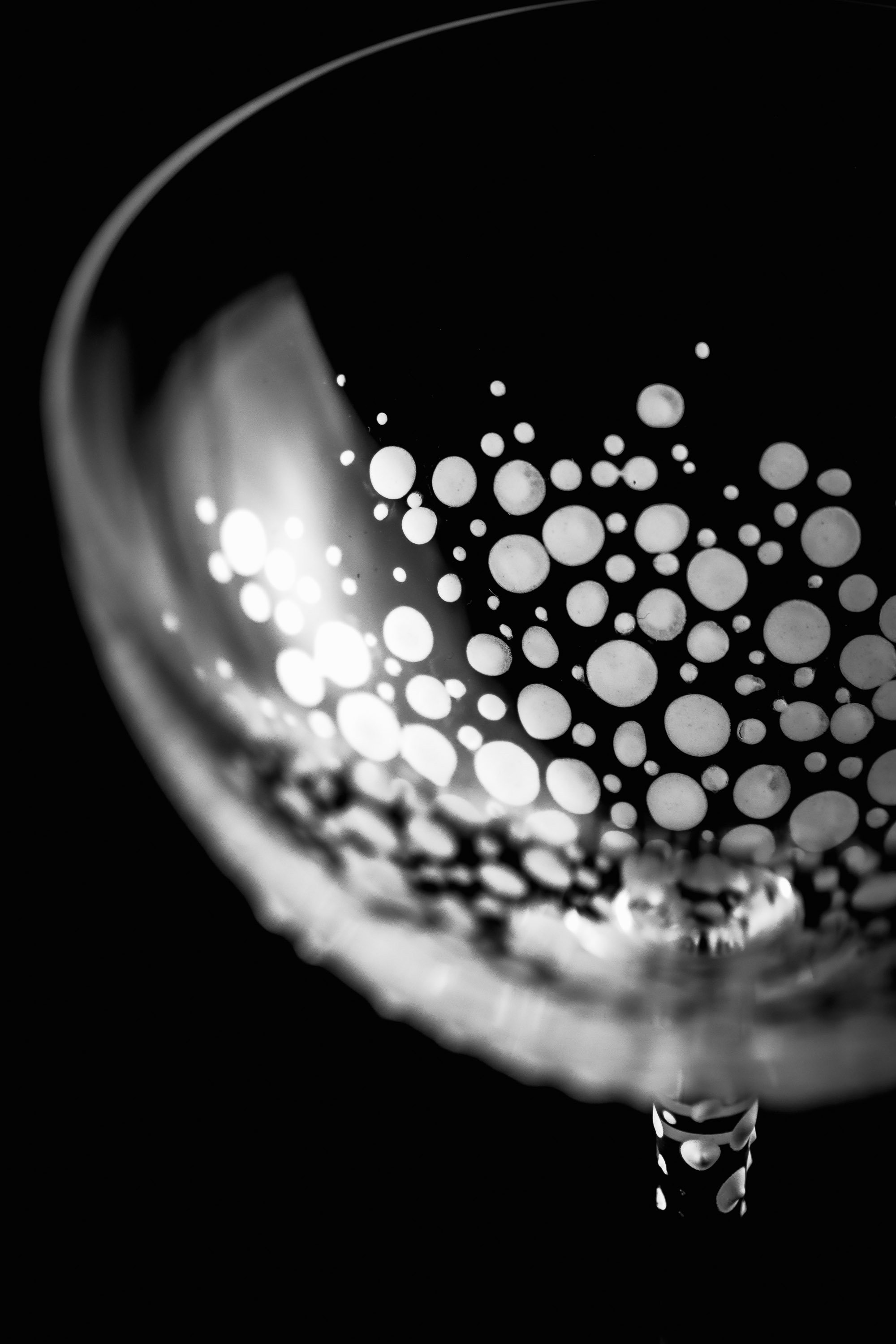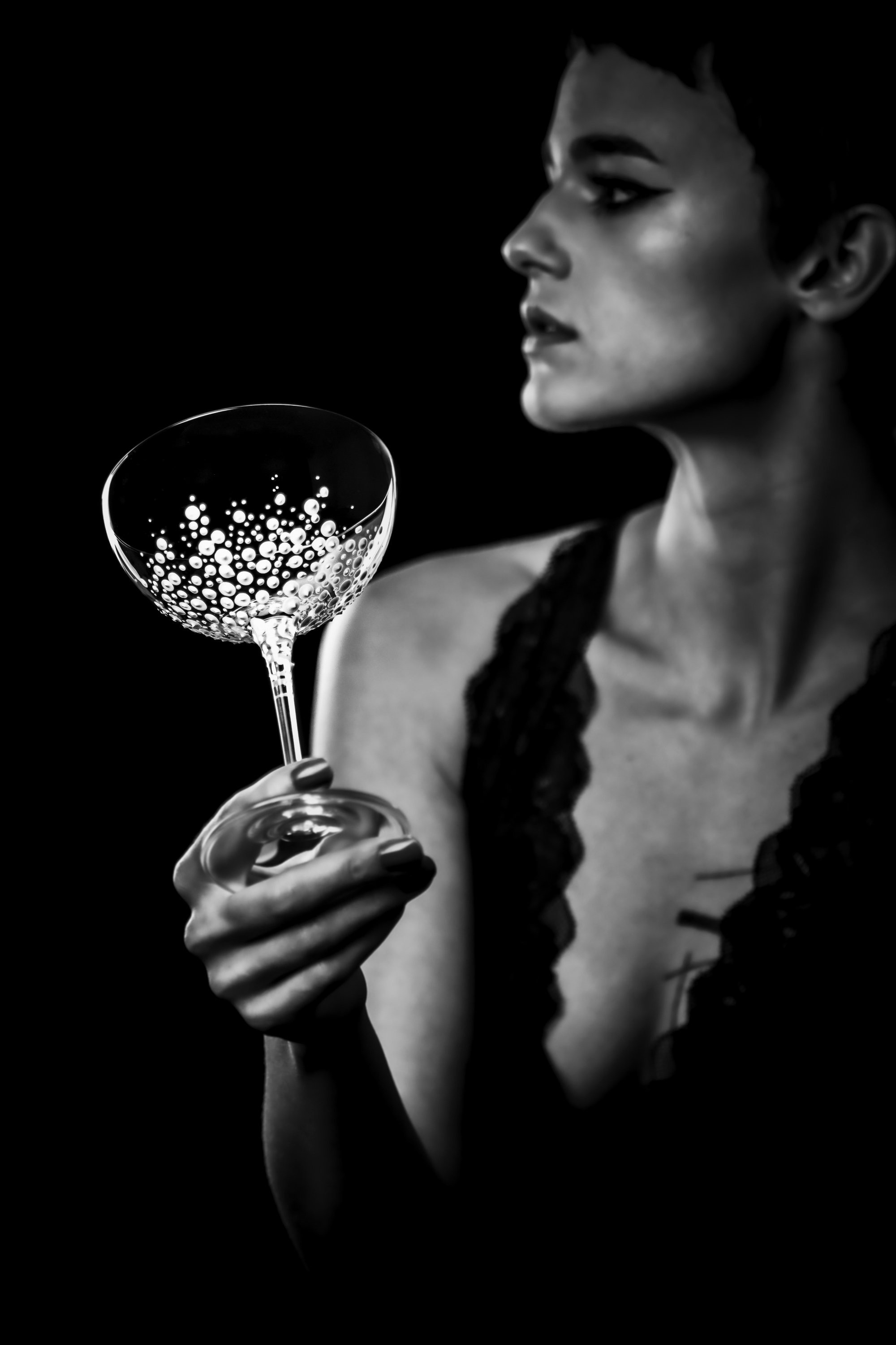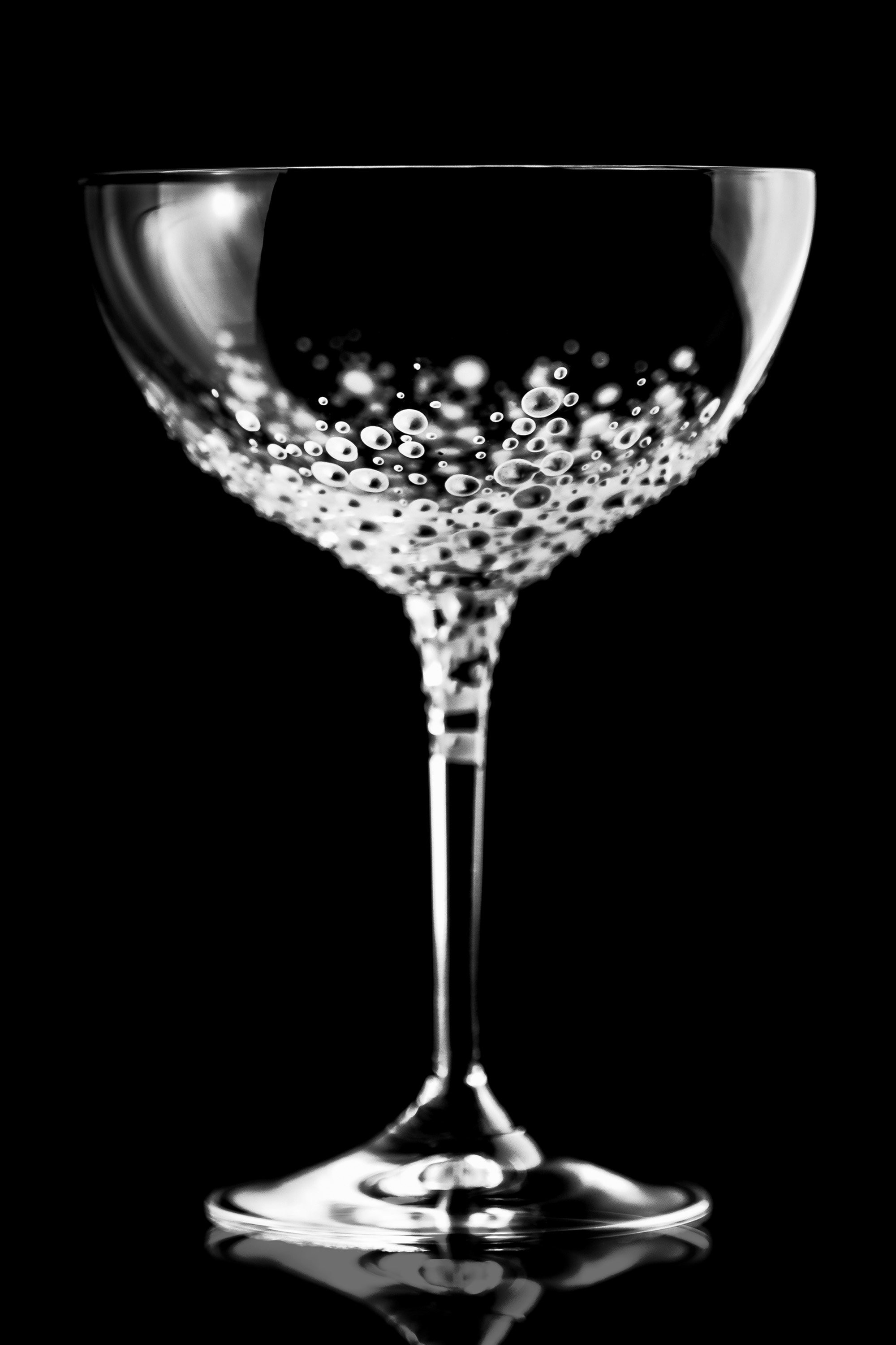 Křišťálová sklenice na šampaňské či šumivé víno Grip je tvarem originální a působivá. Samotná dekorace je ruční a na dotek velice příjemná. Jedná se o malbu speciální bílou barvou, která získá po vysokoteplotním výpalu jedinečný lesklý efekt. Tečky vystupují do prostoru a jsou nejvíce orientovány okolo dna rozevřeného kalichu a nožičky, kde poutají pozornost na její obsah.