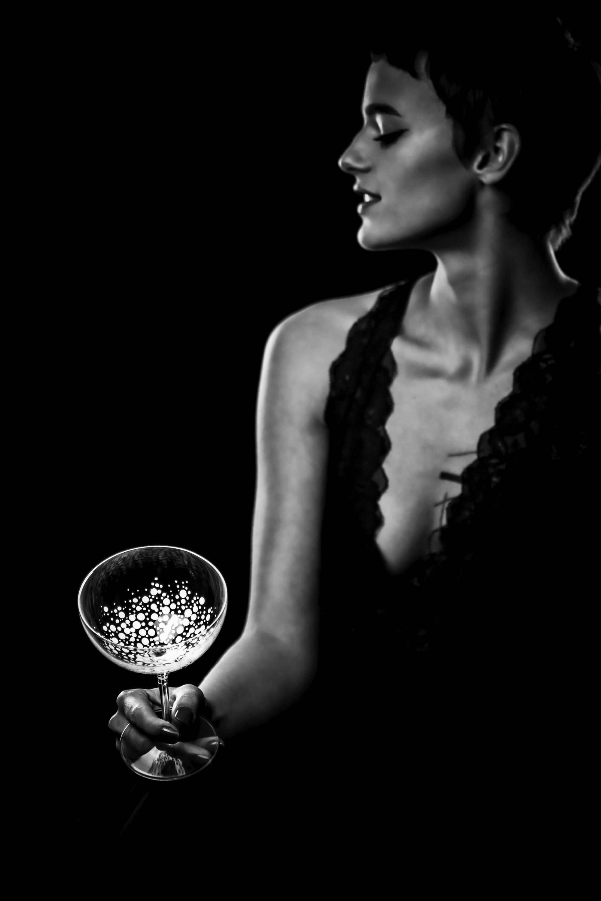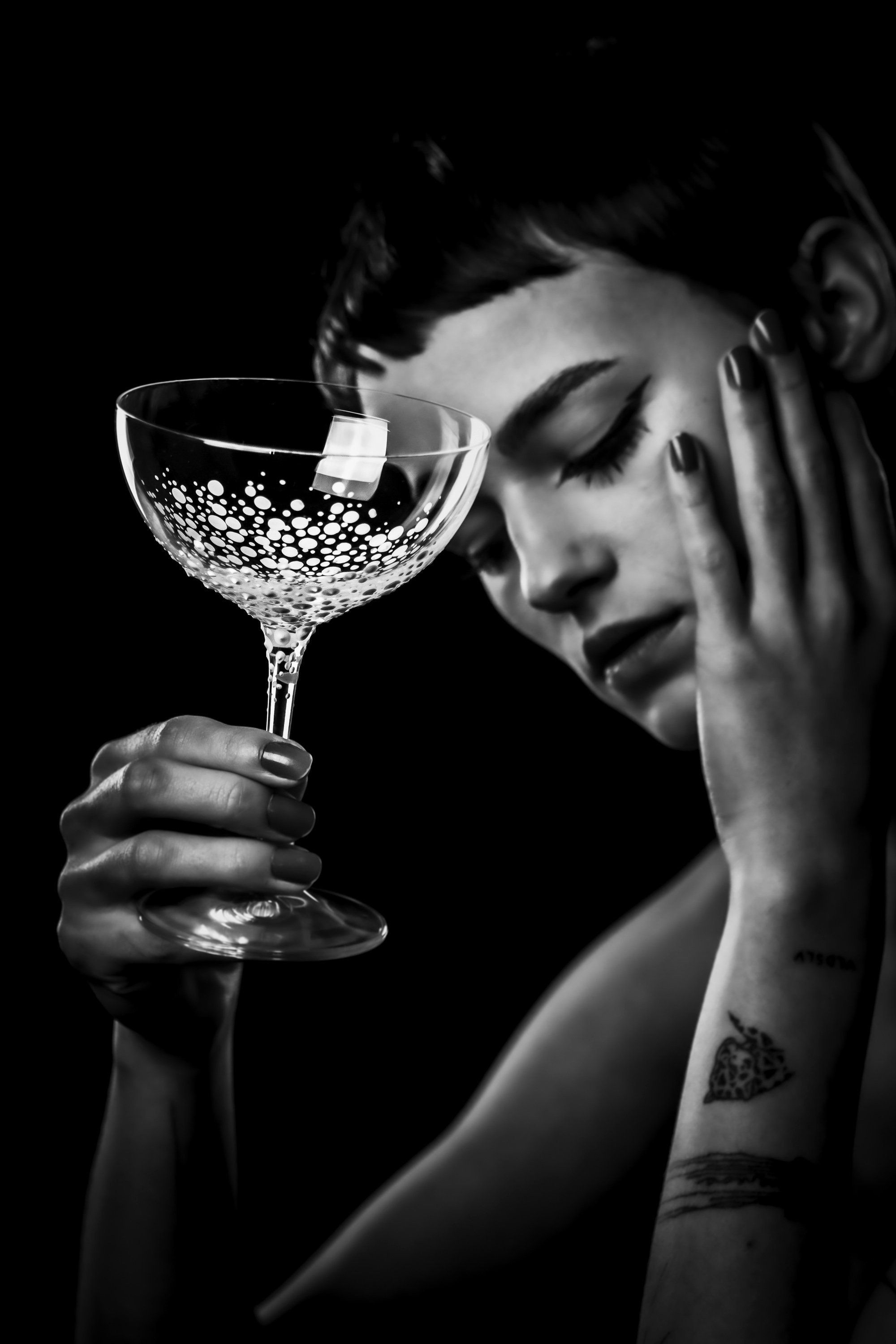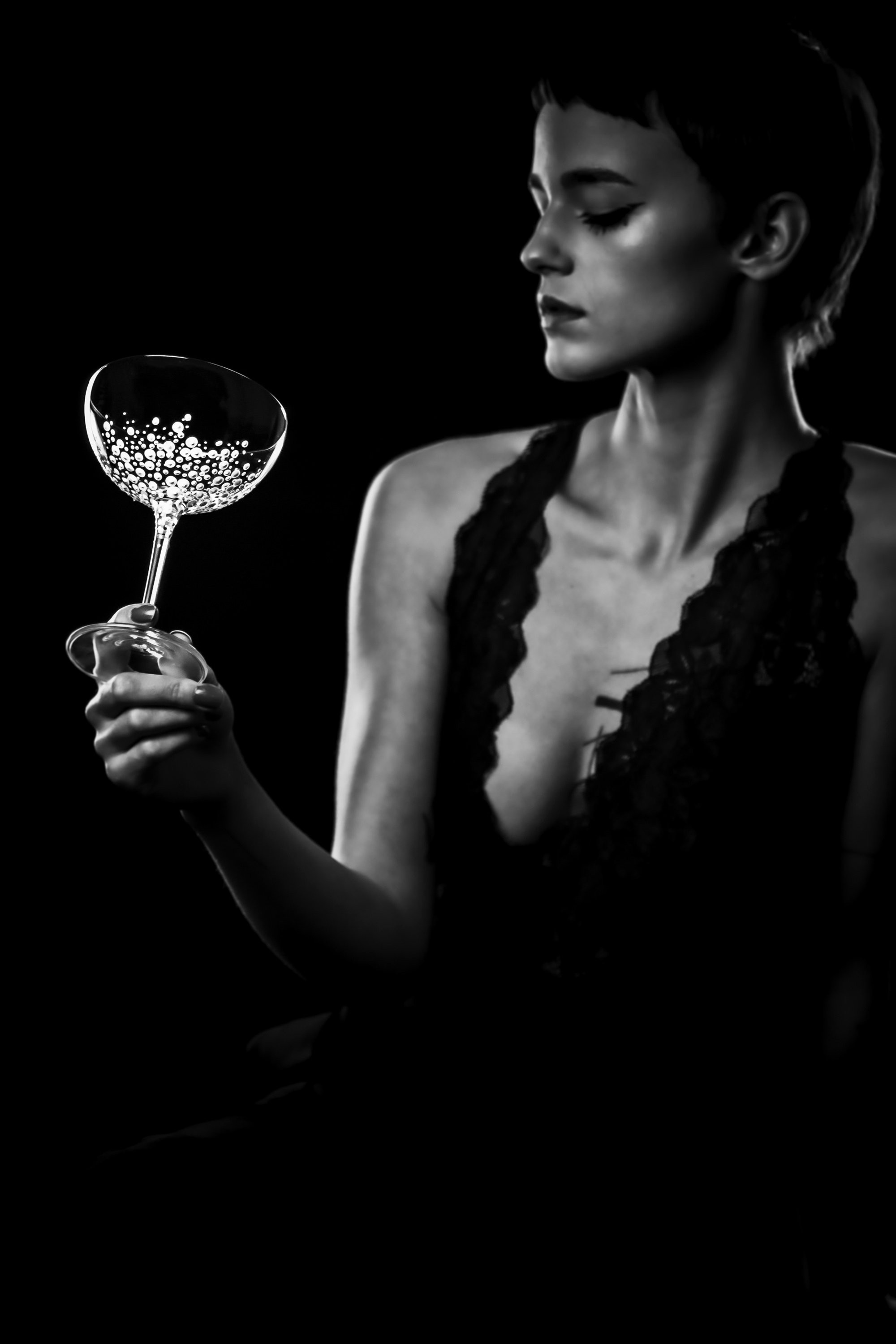 Křišťálová sklenice na šampaňské či šumivé víno Grip je tvarem originální a působivá. Samotná dekorace je ruční a na dotek velice příjemná. Jedná se o malbu speciální bílou barvou, která získá po vysokoteplotním výpalu jedinečný lesklý efekt. Tečky vystupují do prostoru a jsou nejvíce orientovány okolo dna rozevřeného kalichu a nožičky, kde poutají pozornost na její obsah.