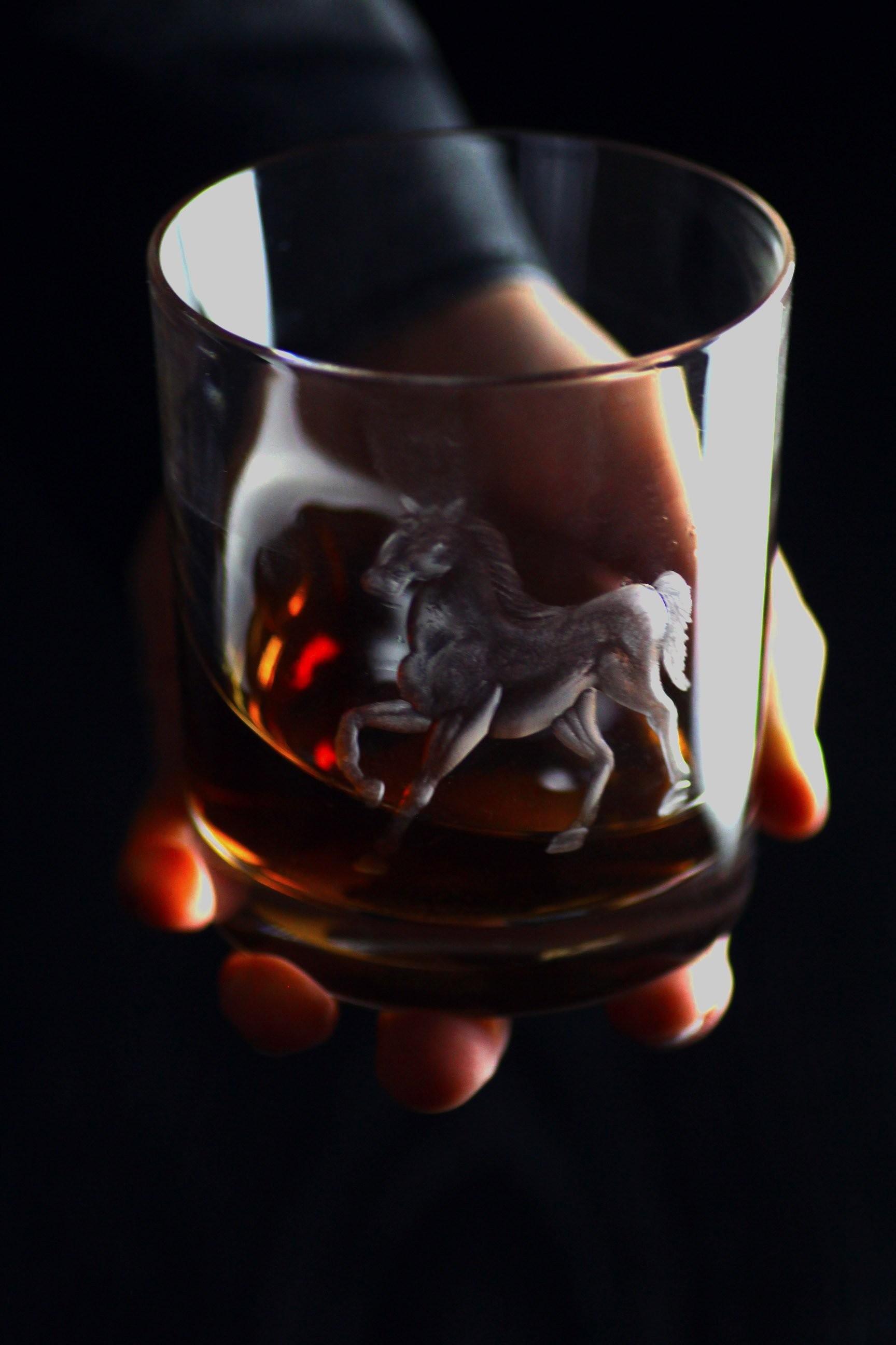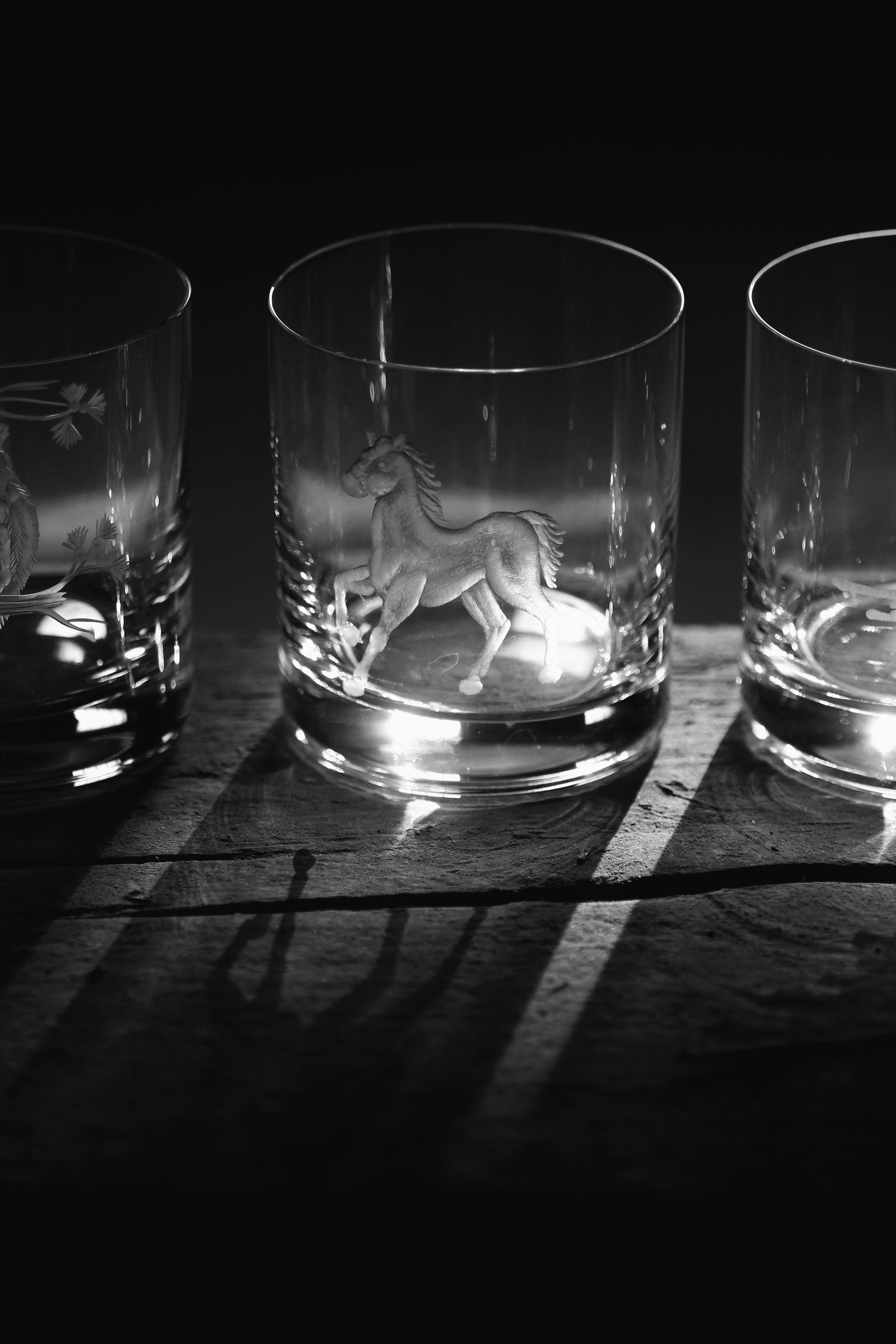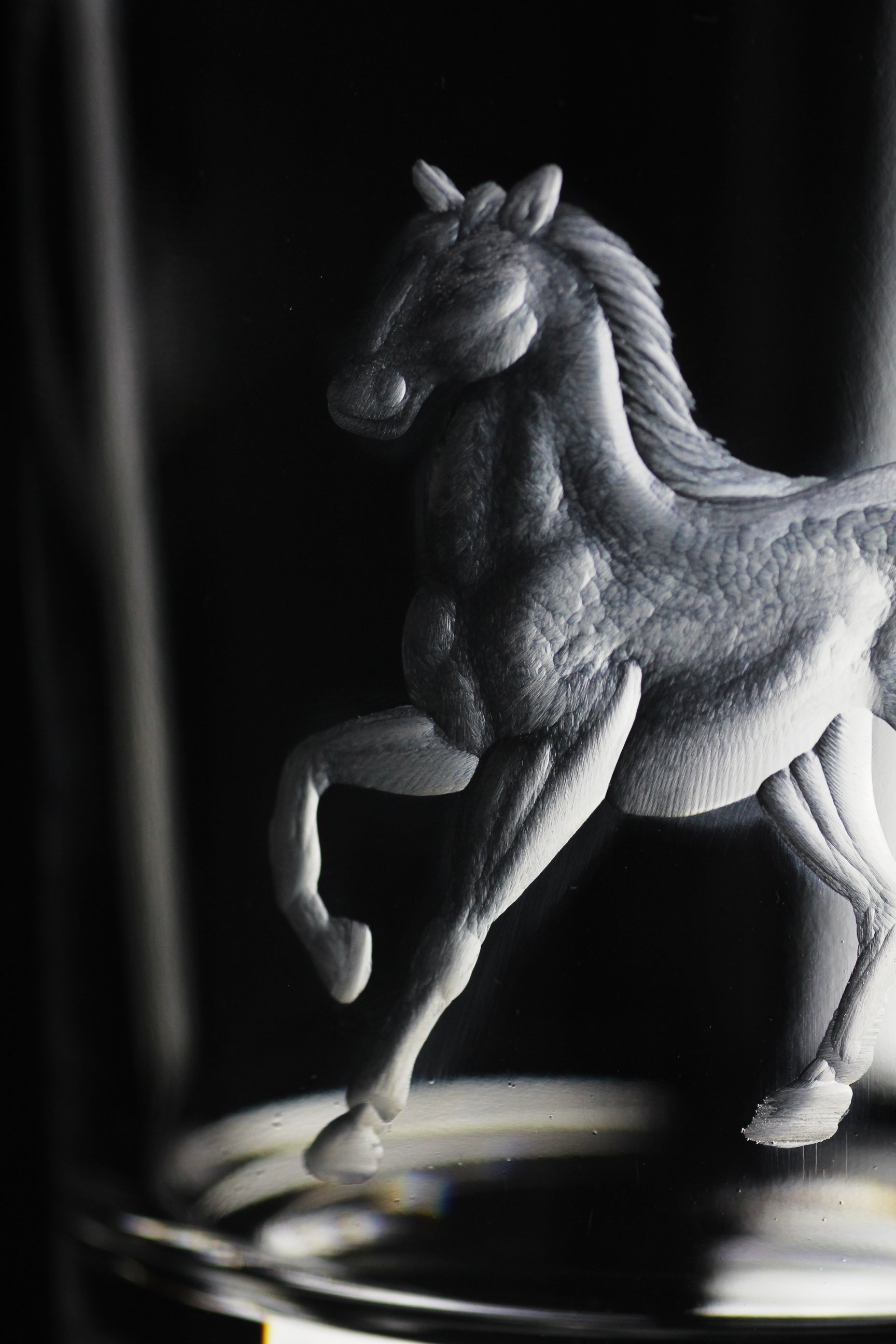 Krásná křišťálová sklenice na whisky, která je inspirována dominantním zvířecím motivem v podobě nádherného ručně rytého koně. Kůň provází lidstvo již od pravěku. Symbolizuje chuť do života, sílu, vznešenost, krásu a eleganci. Tato sklenice si získá pánské i dámské milovníky whisky, kteří chtějí popíjet s novou zvířecí jiskrou a noblesou, která se hodí k jakémukoli stylu nábytku a sklu.