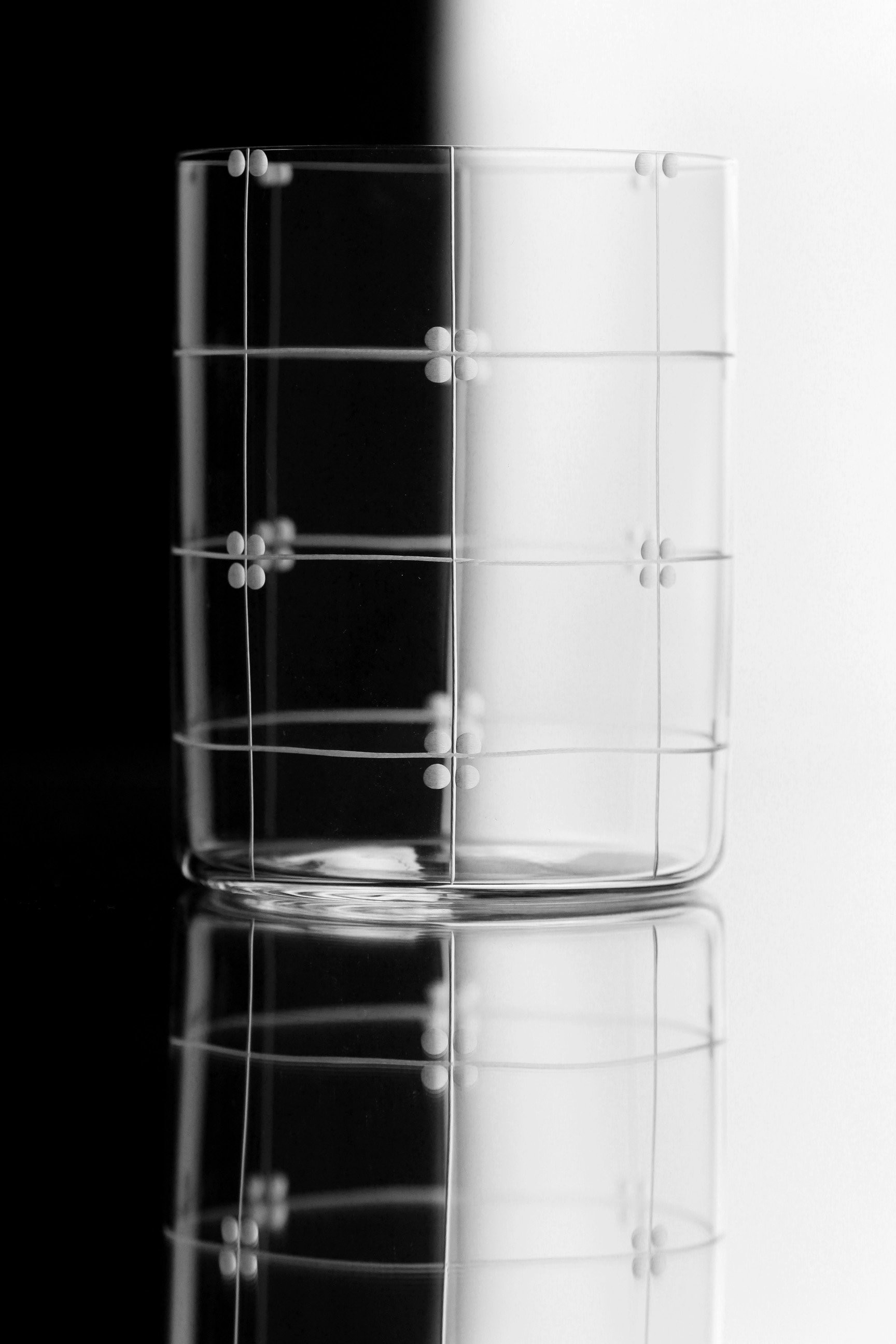 Sklo: Čiré, Ručně ryté, Bezolovnatý český křišťál