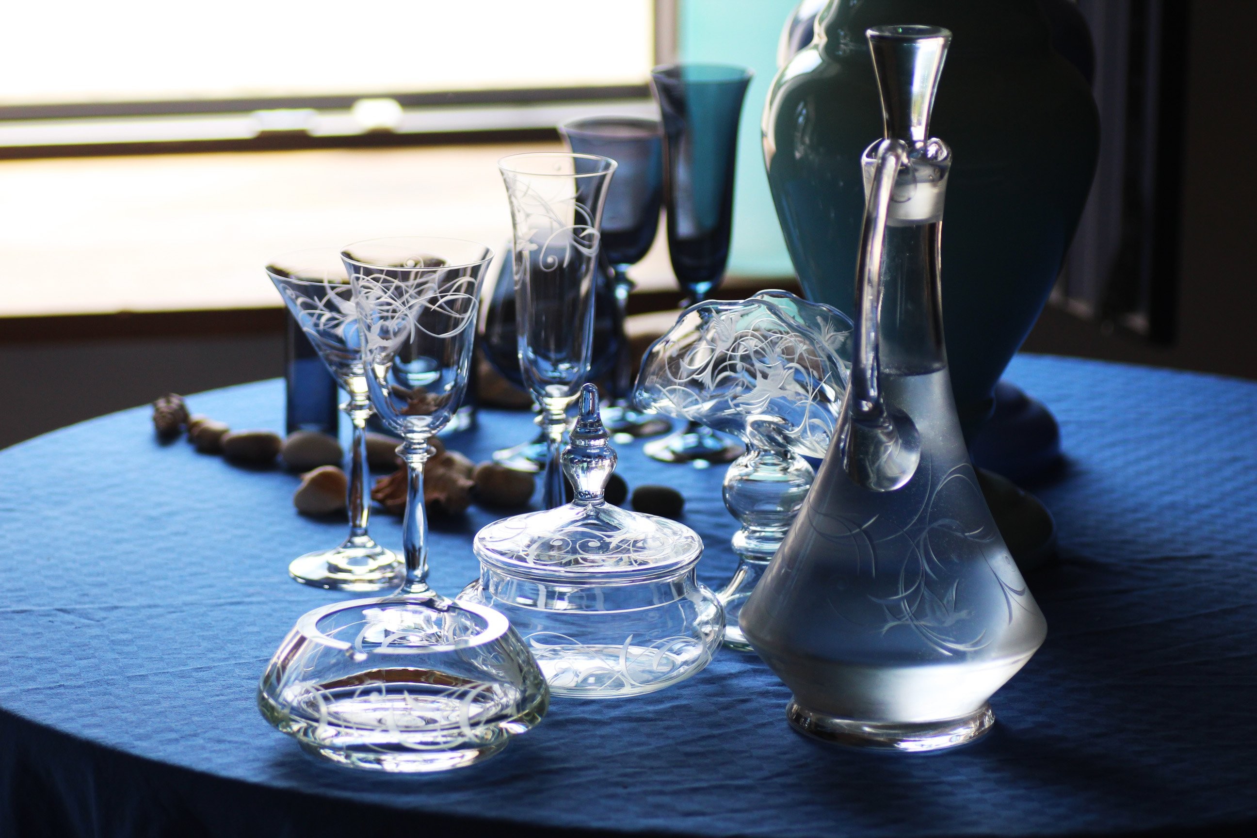 Sklo: Čiré, Ručně ryté, Bezolovnatý český křišťál