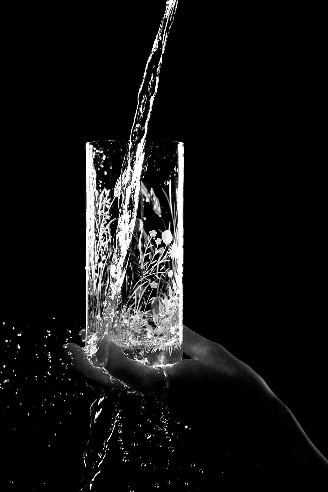 Sklo: Čiré, Ručně ryté, Bezolovnatý český křišťál