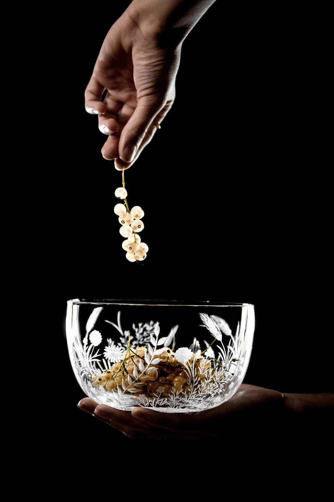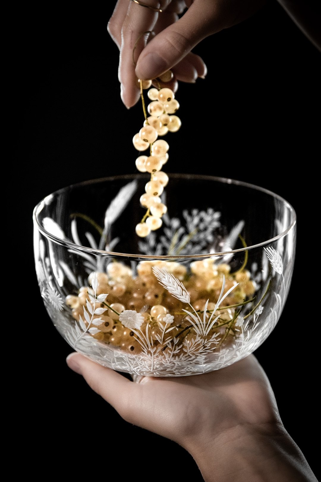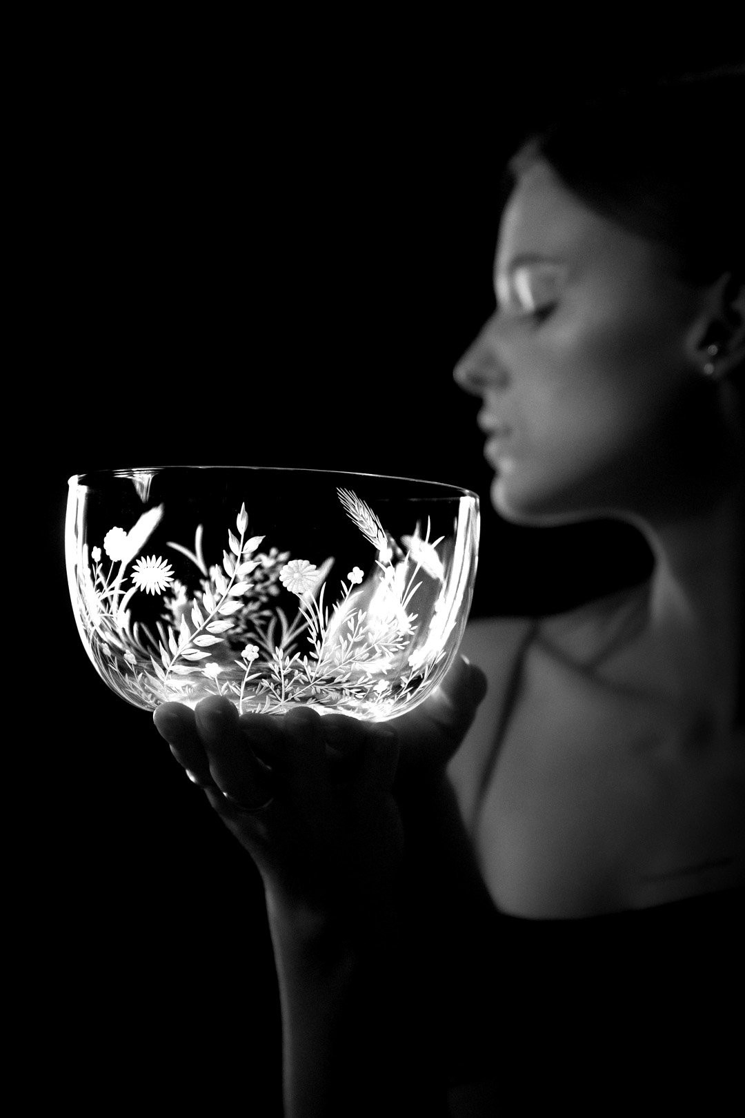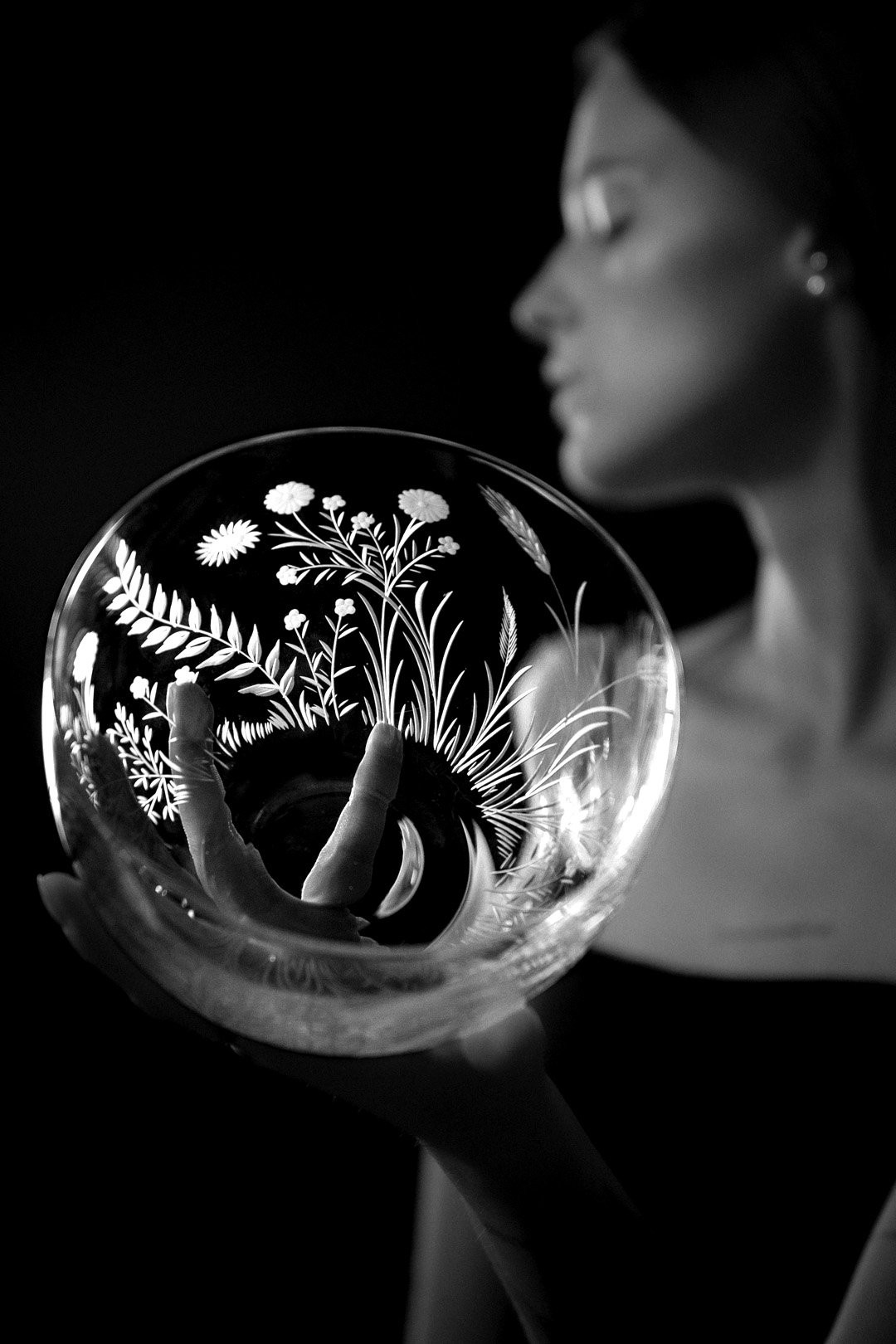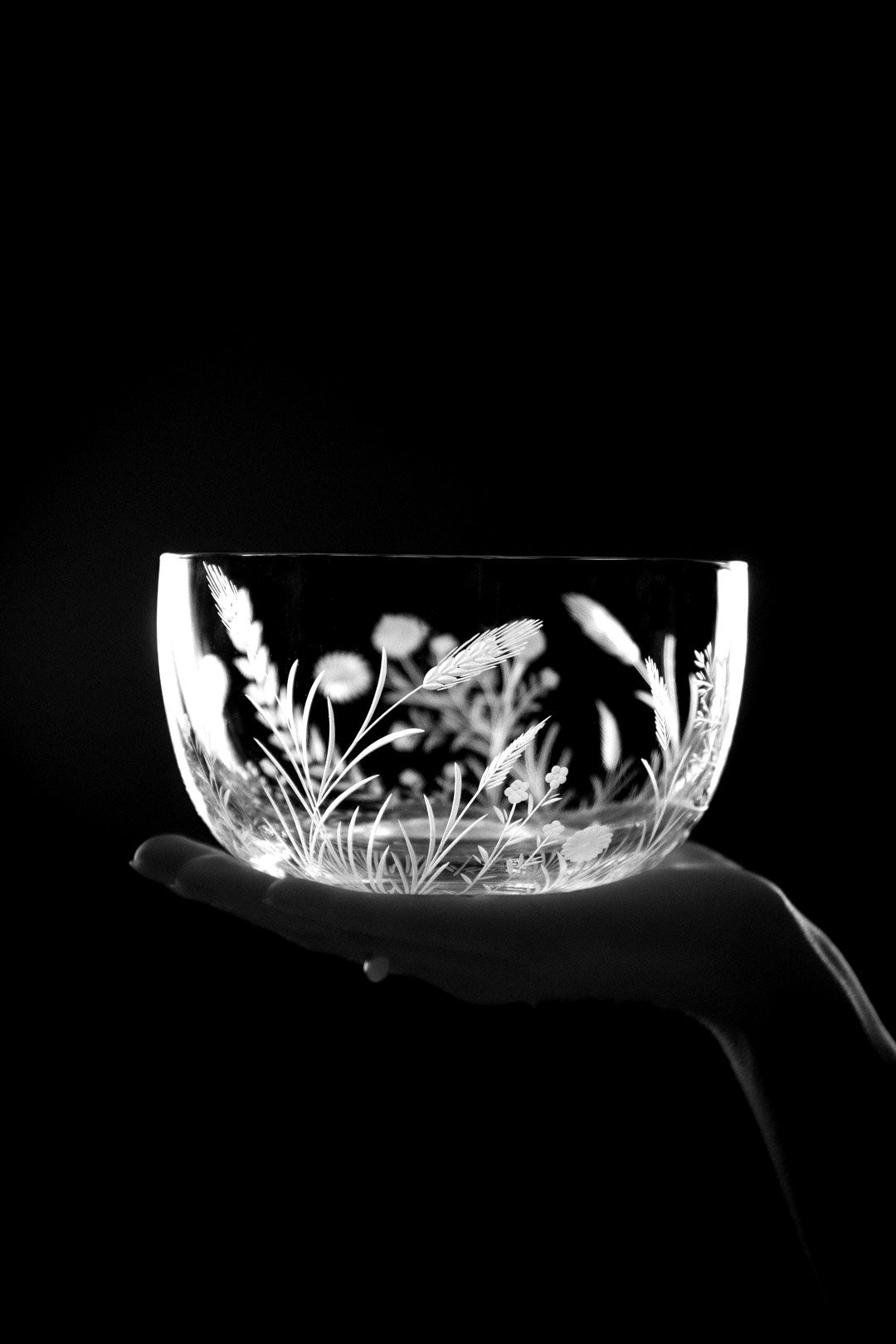 Sklo: Čiré, Ručně ryté, Bezolovnatý český křišťál