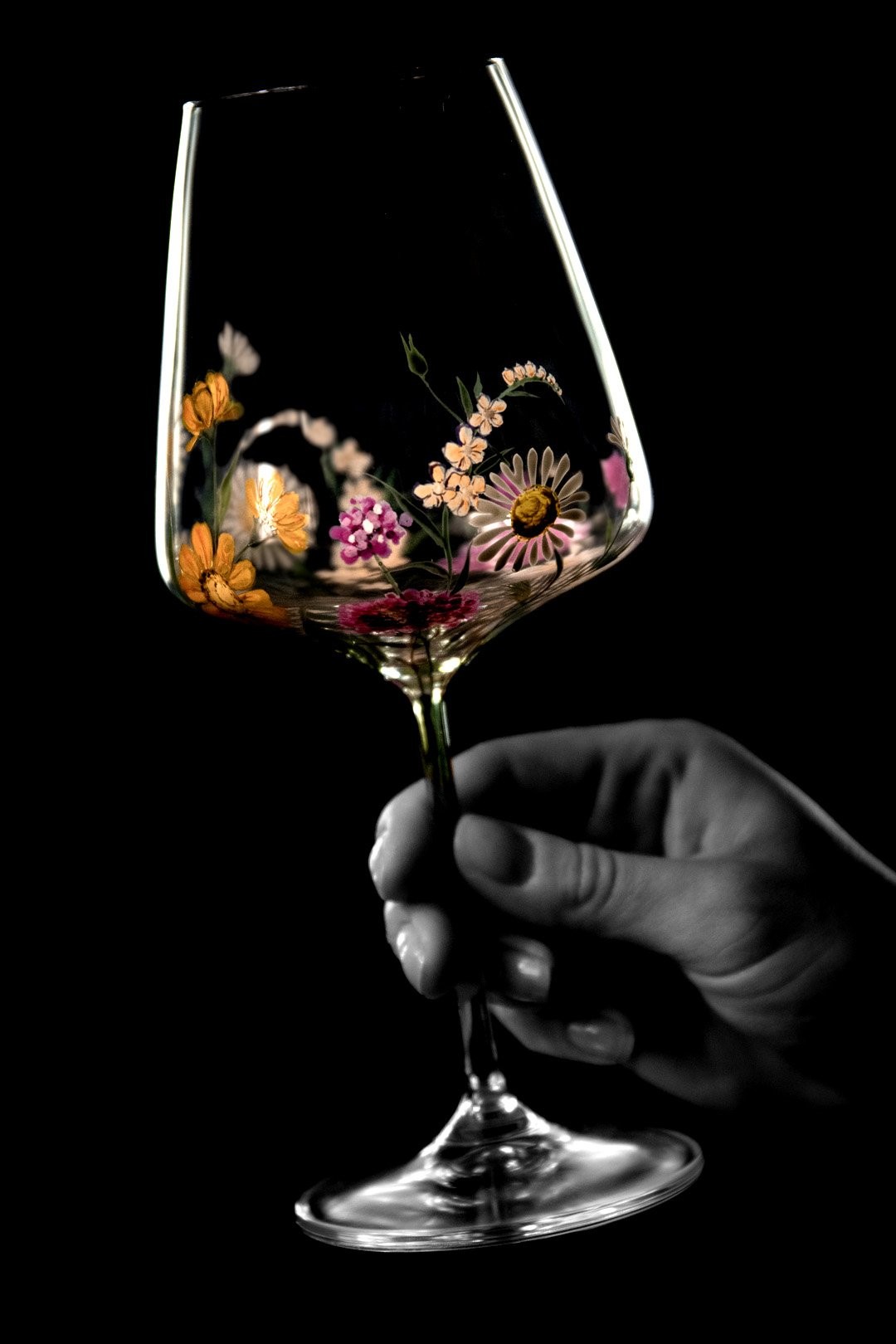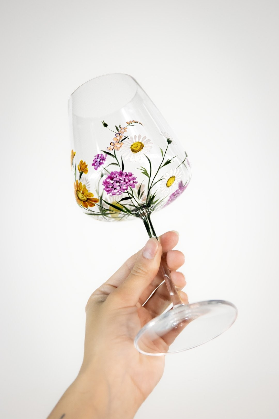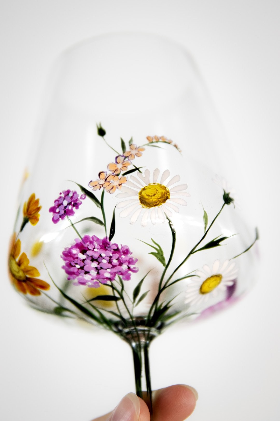 Ručně malované květy na skleničce Lush rozzáří každý okamžik barevnou radostí. Dopřejte si letní radosti při každé příležitosti.