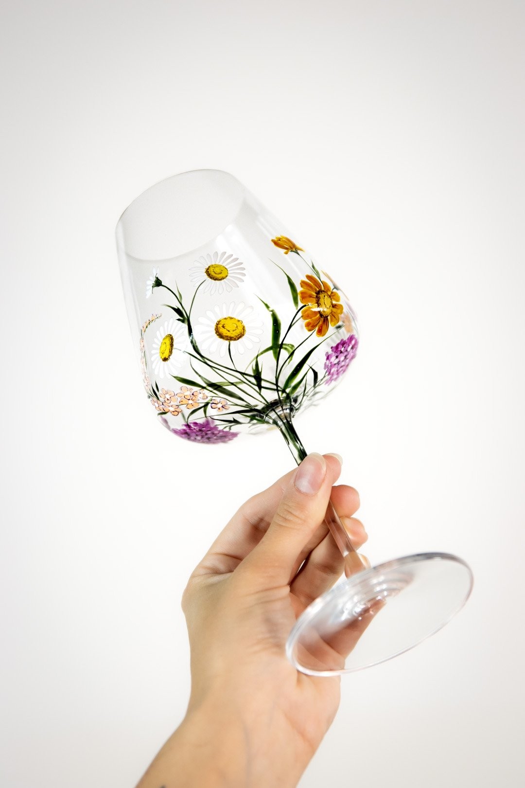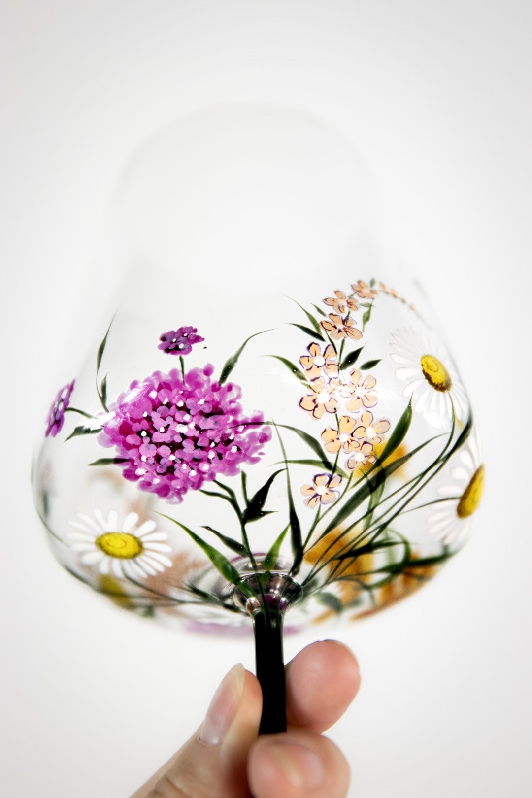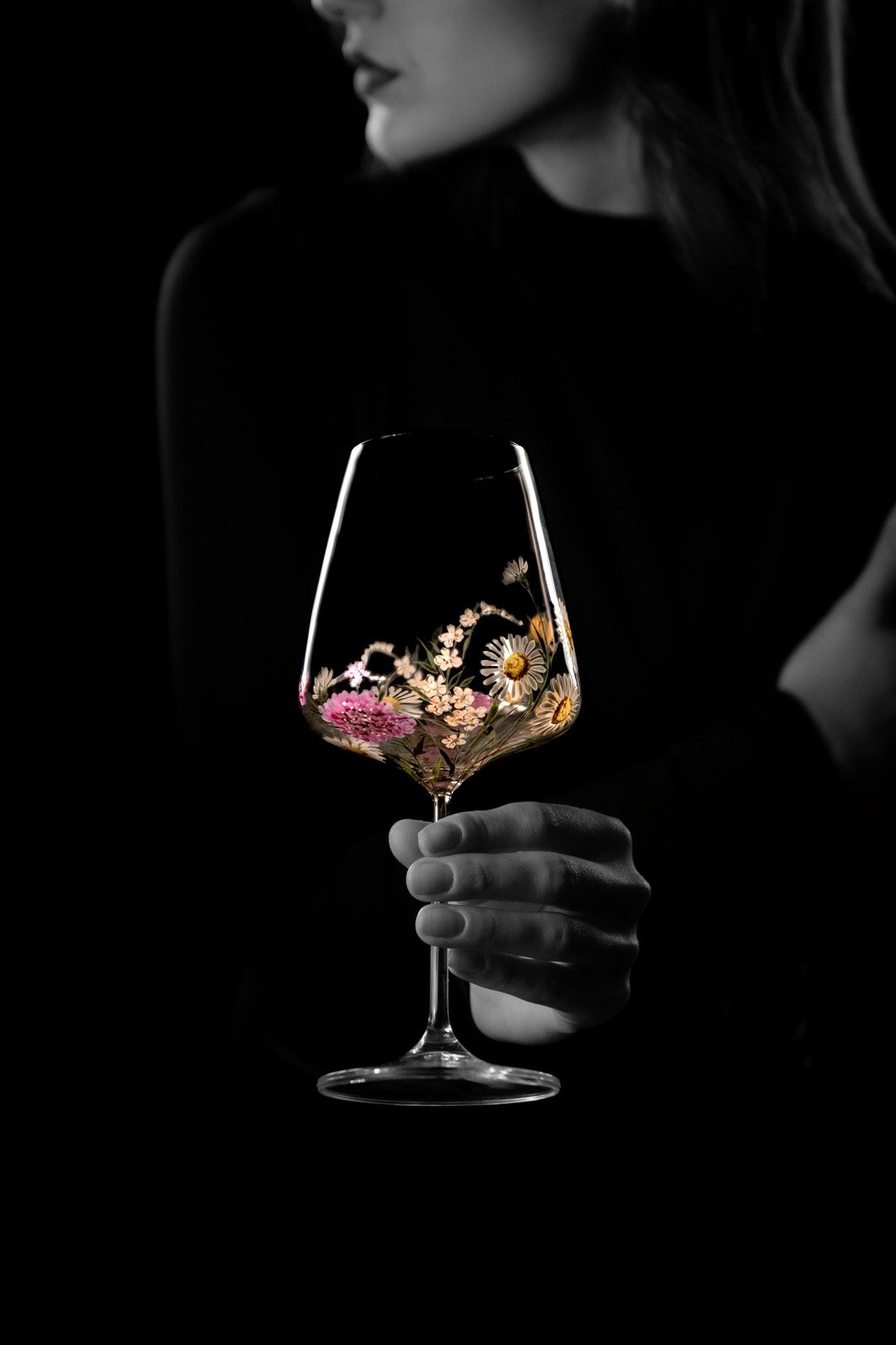Ručně malované květy na skleničce Lush rozzáří každý okamžik barevnou radostí. Dopřejte si letní radosti při každé příležitosti.