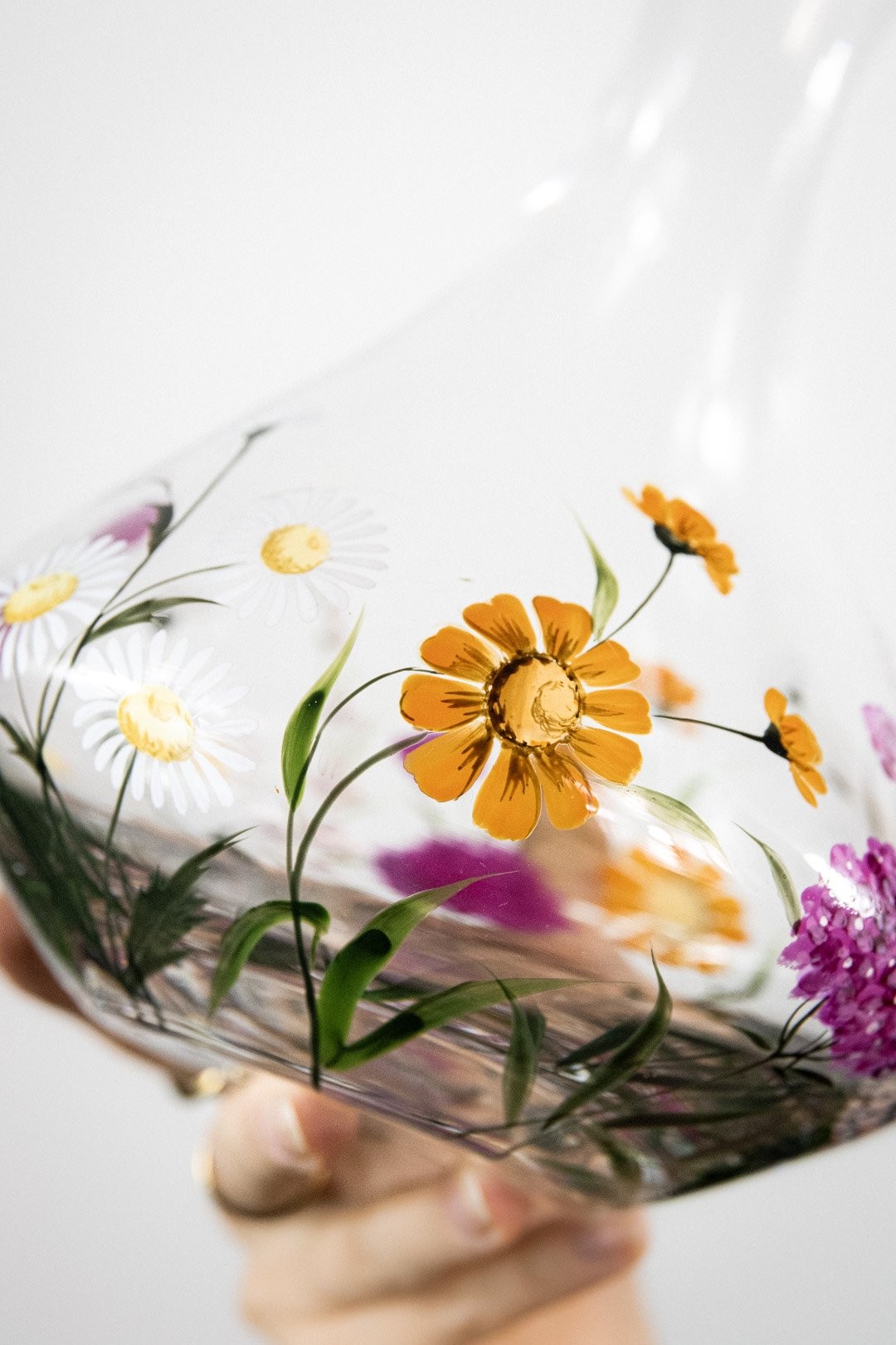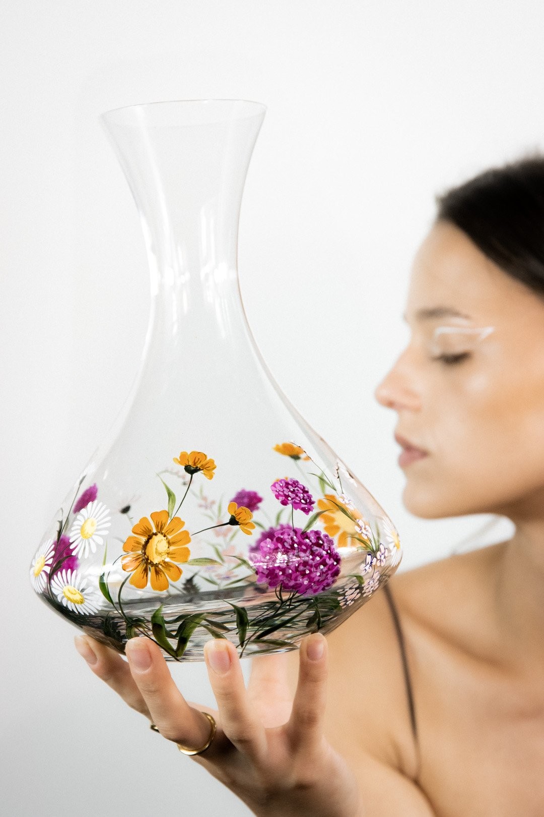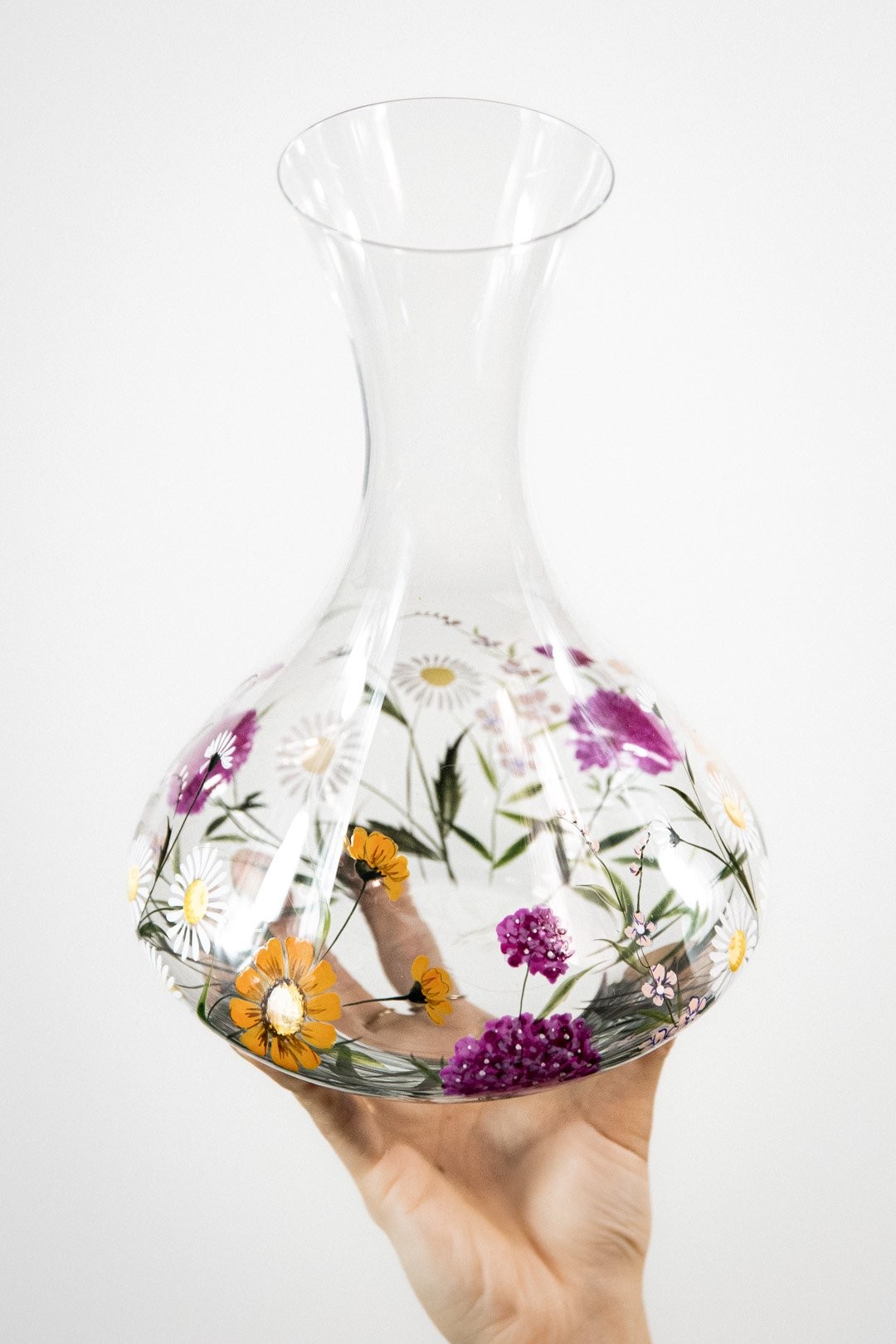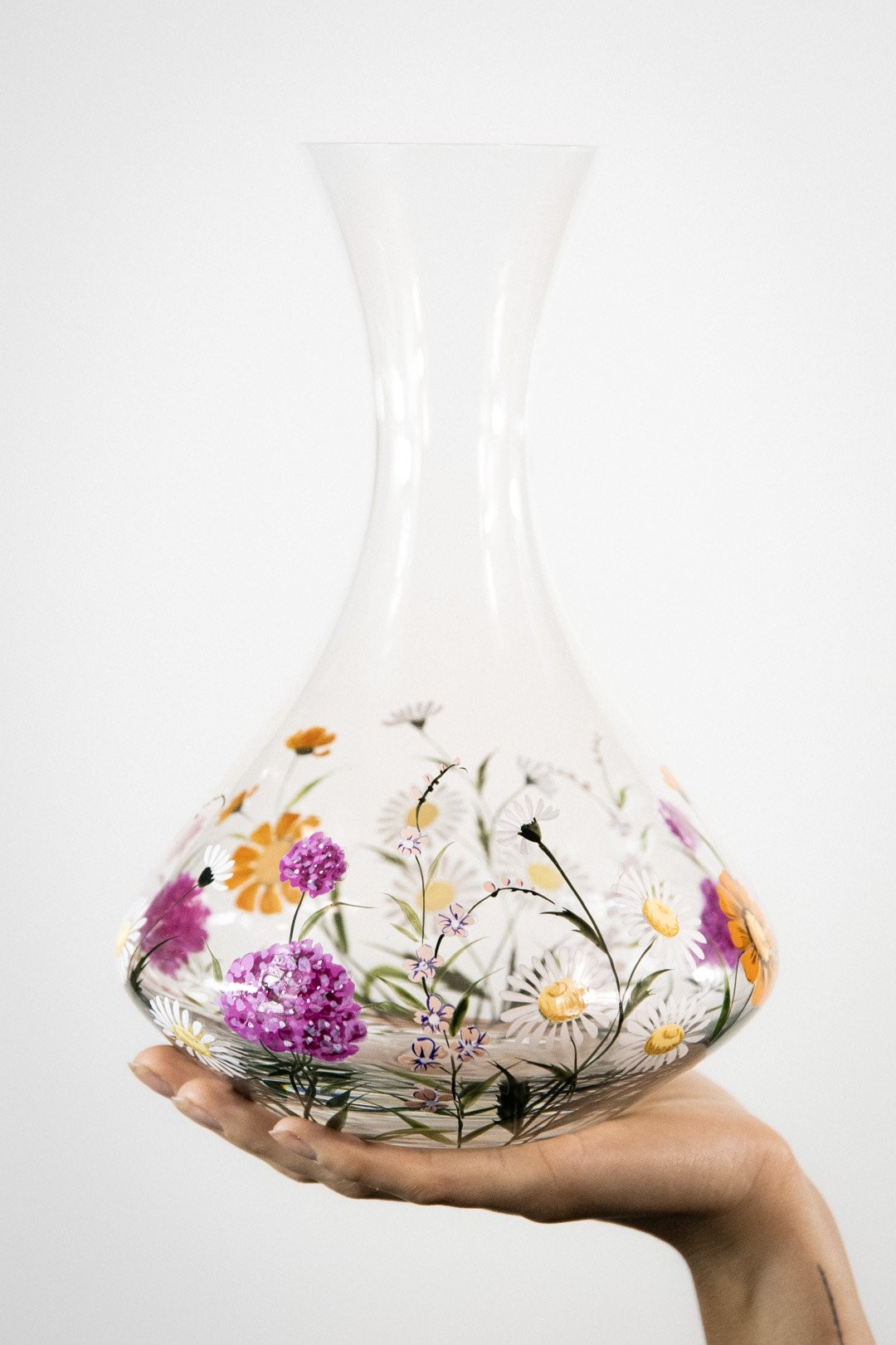 Ručně malované květy na dekantéru Lush rozzáří každý okamžik barevnou radostí. Dopřejte si letní radosti při každé příležitosti.