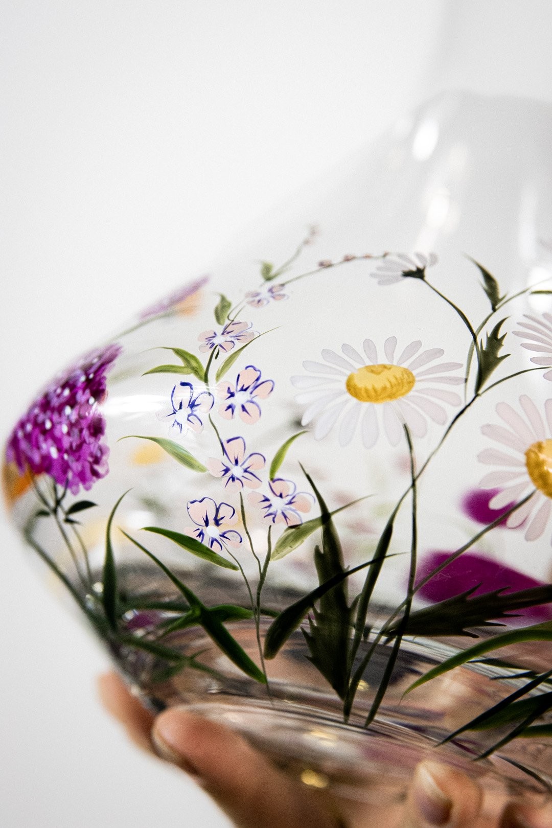 Sklo: Čiré, Ručně malované, Bezolovnatý český křišťál