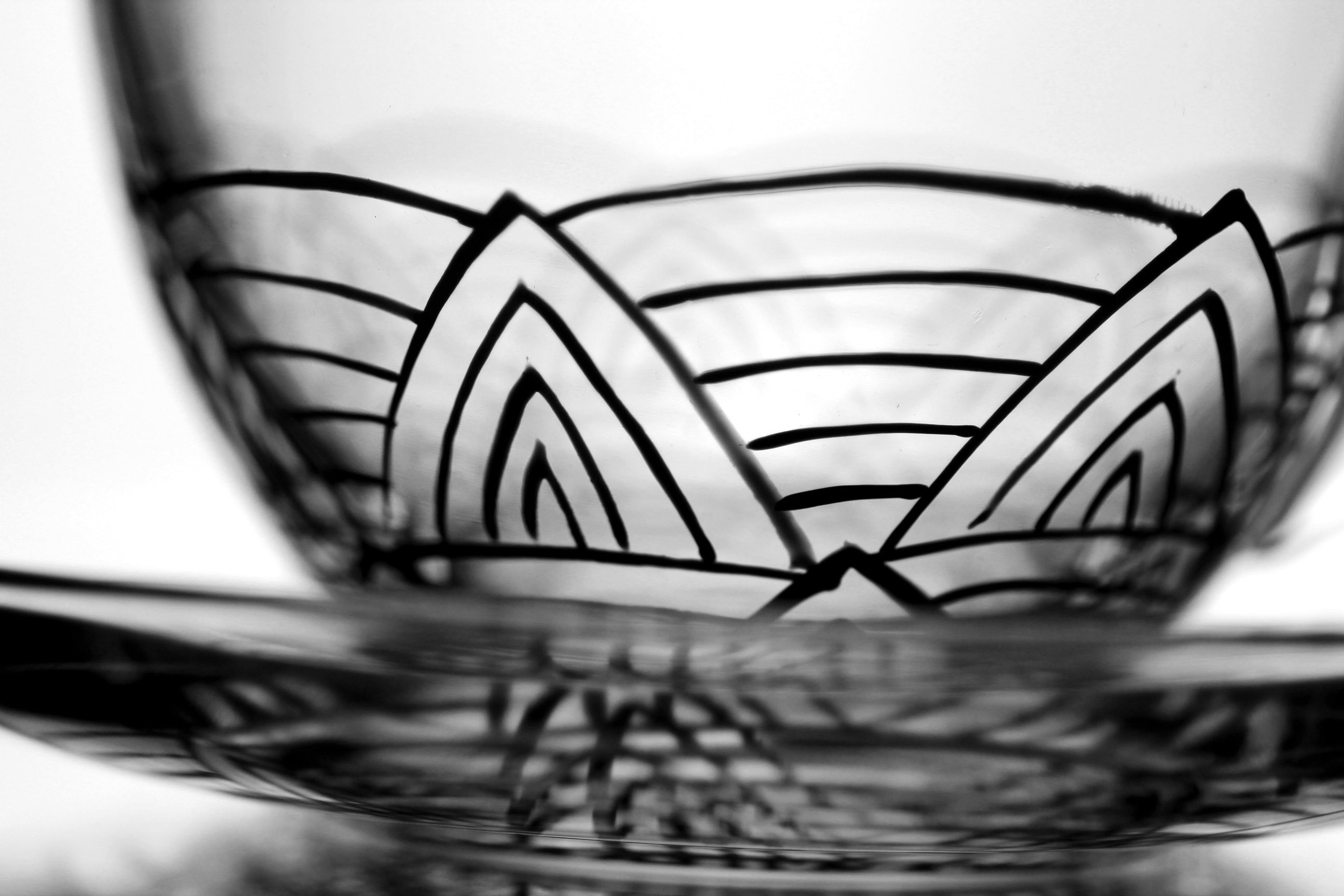 Sklo: Čiré, Ručně malované, Bezolovnatý český křišťál