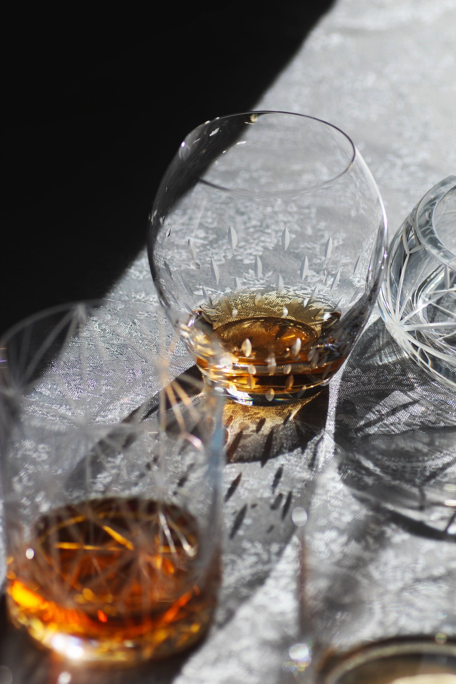 Sklo: Čiré, Ručně ryté, Bezolovnatý český křišťál