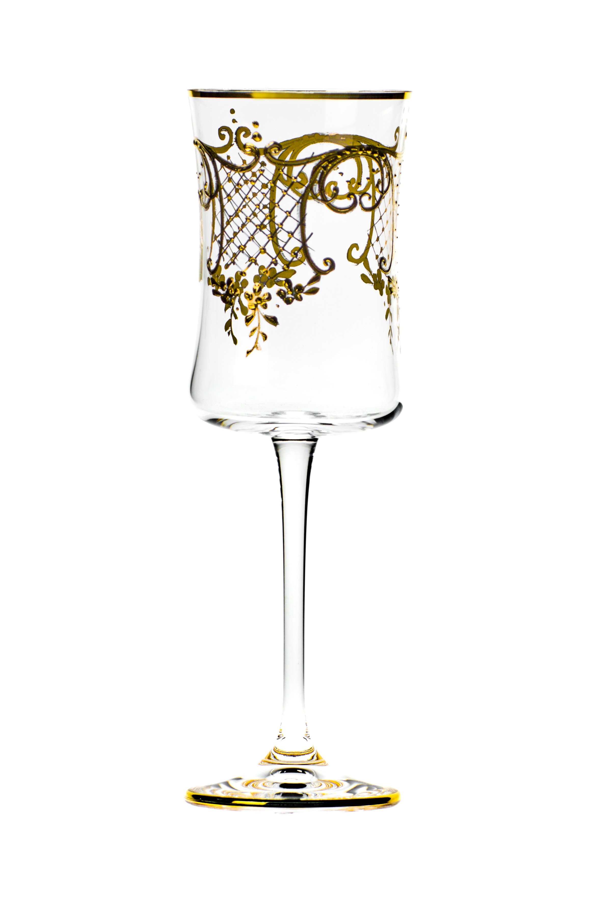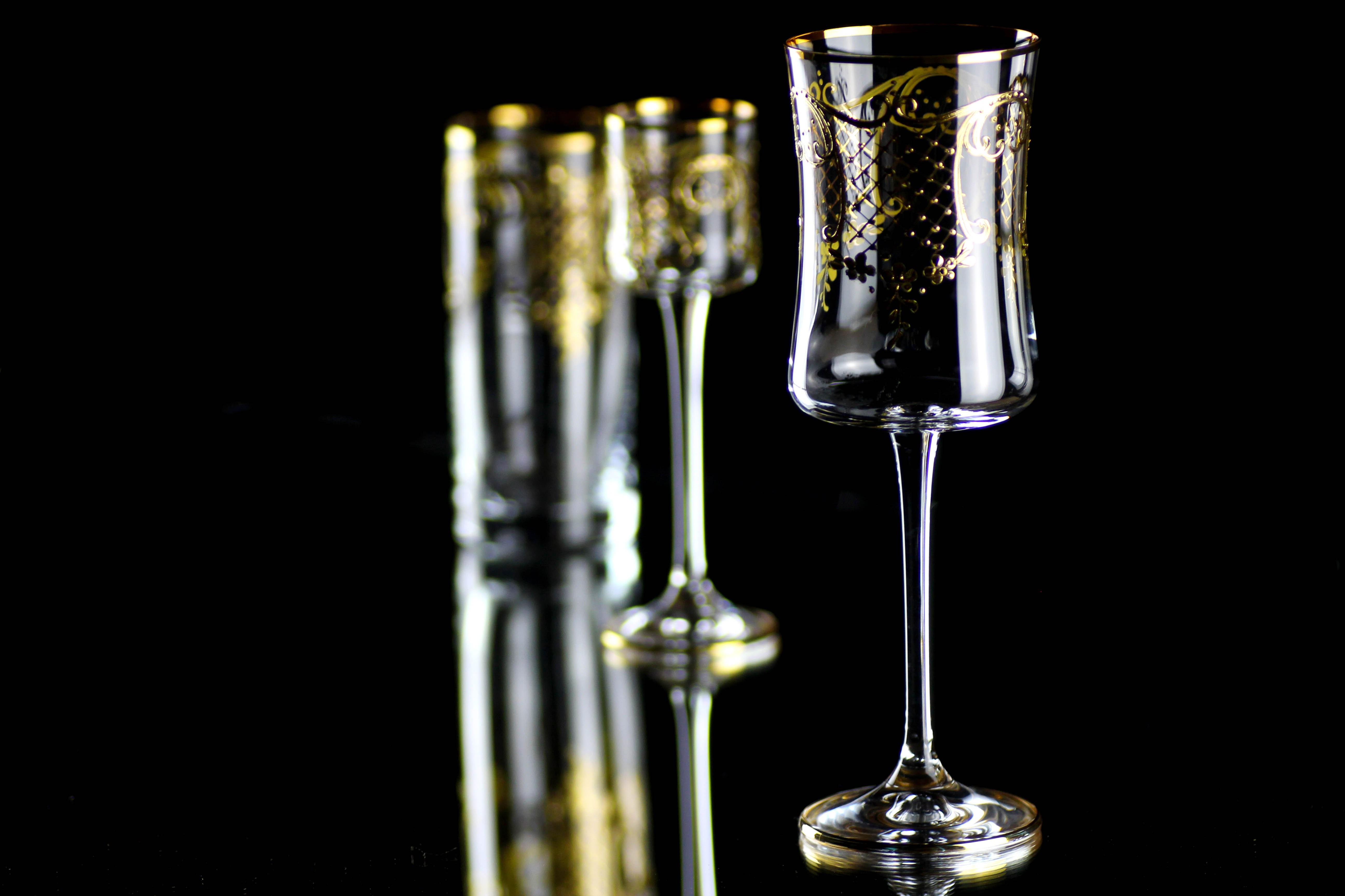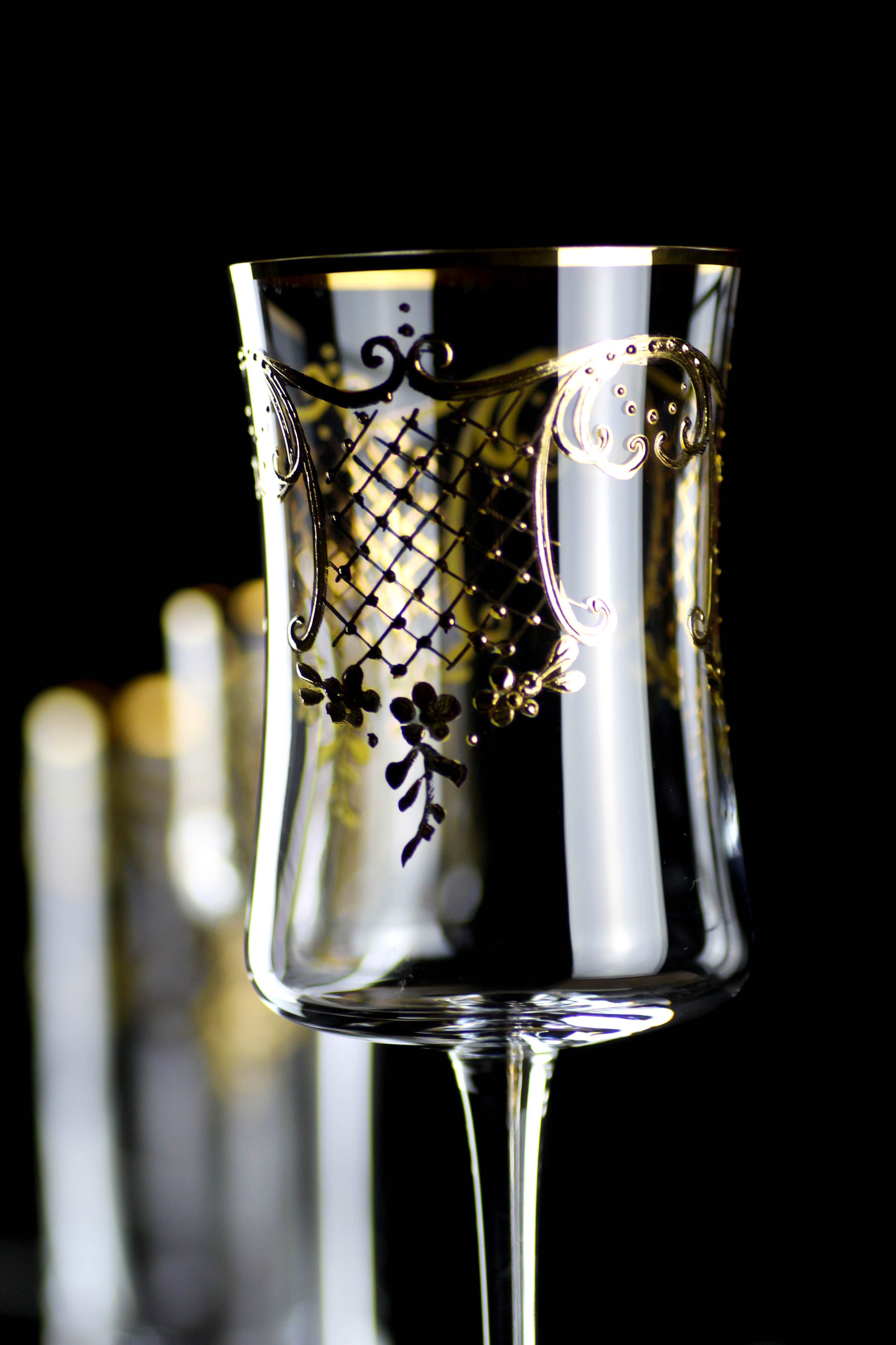 Sklo: Čiré, Ručně malované, Ryzí zlato, Bezolovnatý český křišťál