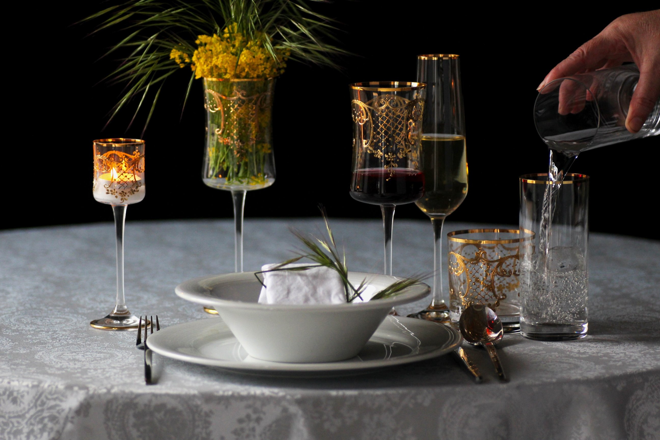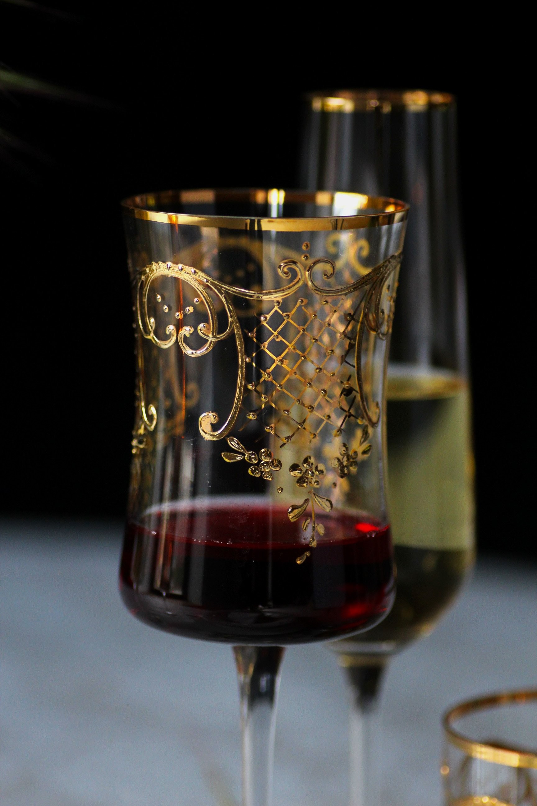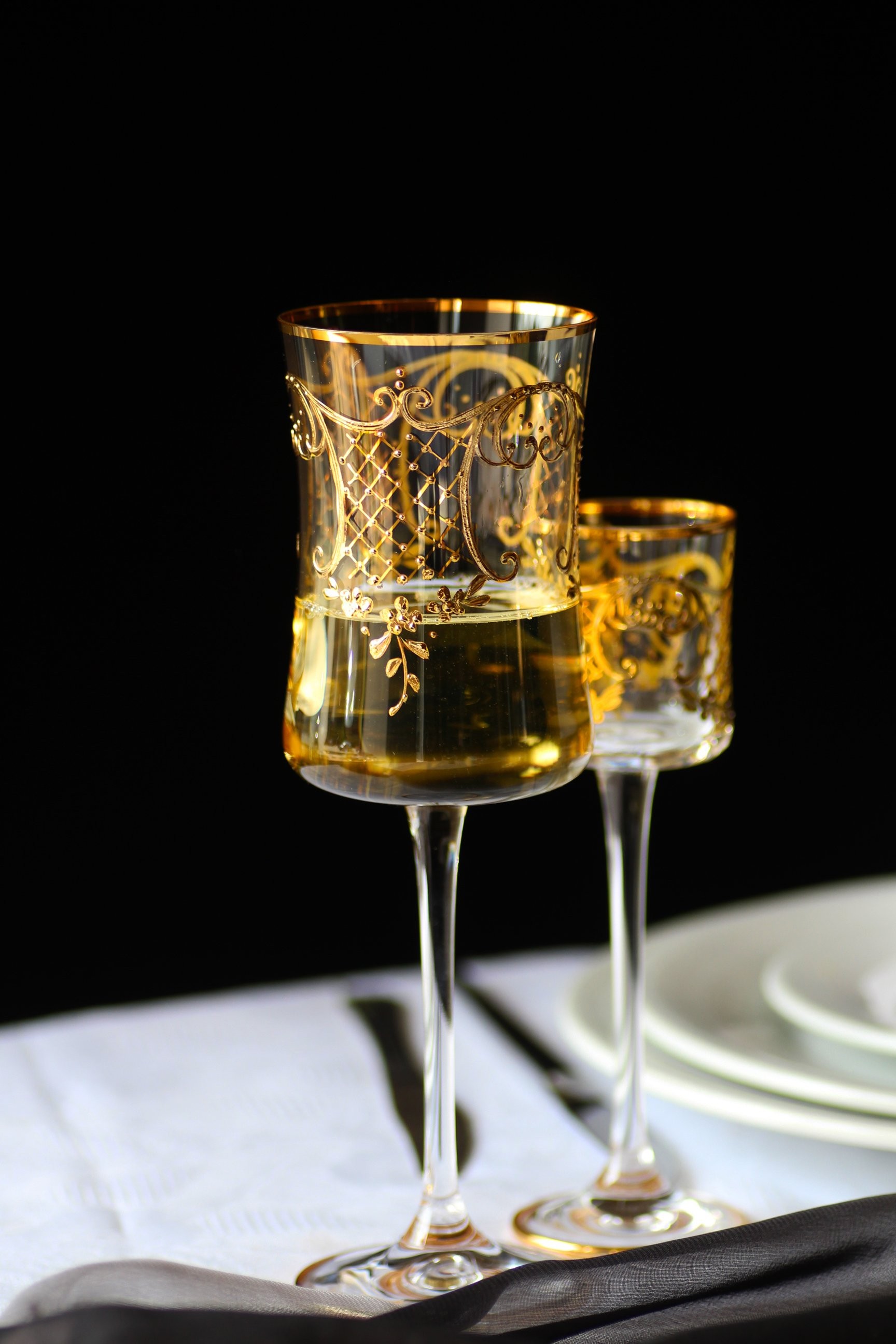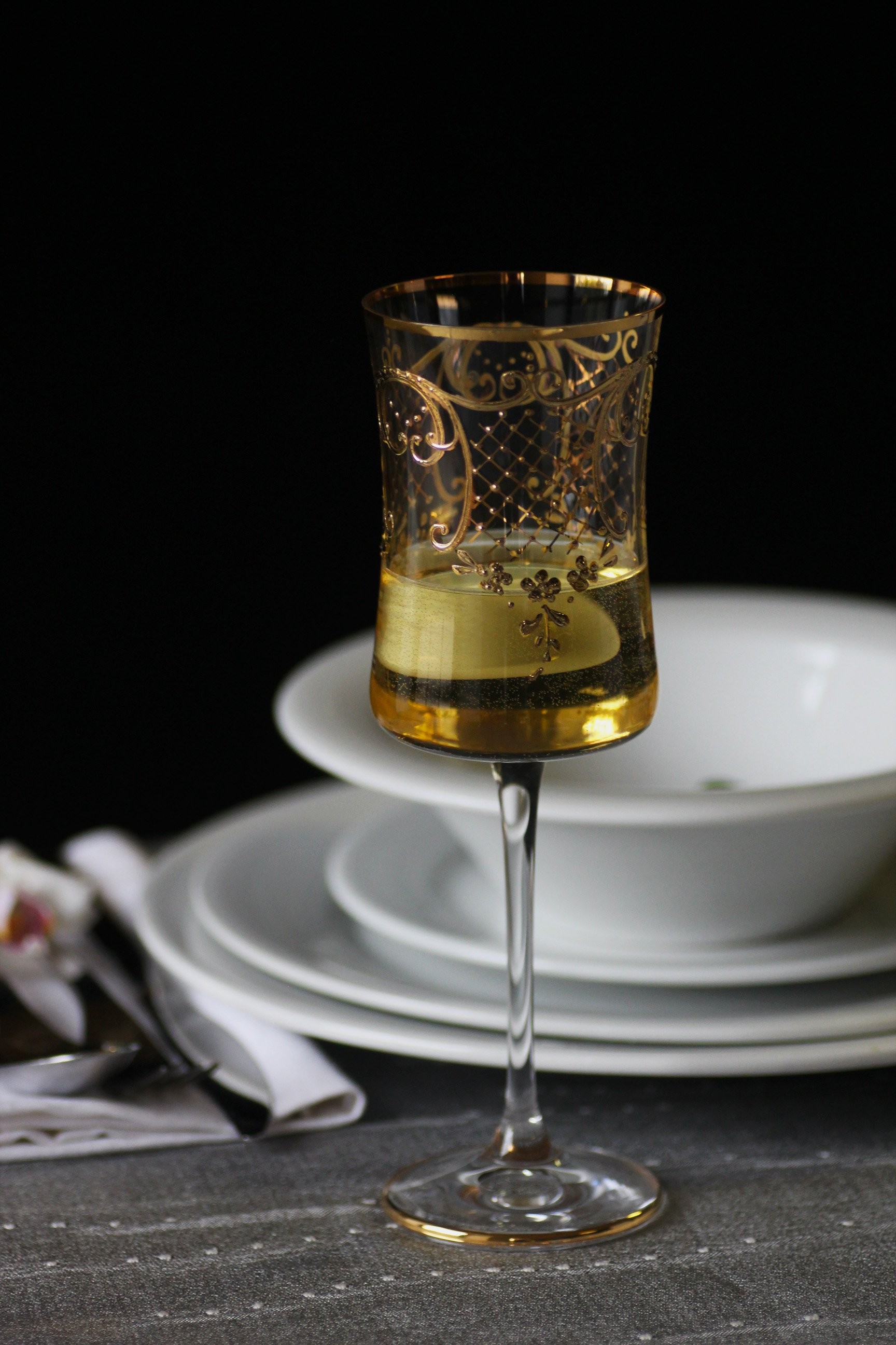 Sklo: Čiré, Ručně malované, Ryzí zlato, Bezolovnatý český křišťál