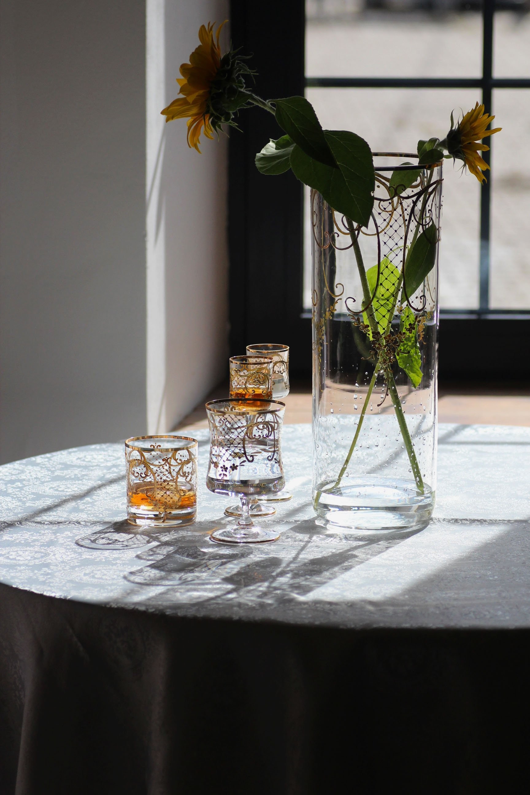 Sklo: Čiré, Ručně malované, Ryzí zlato, Bezolovnatý český křišťál
