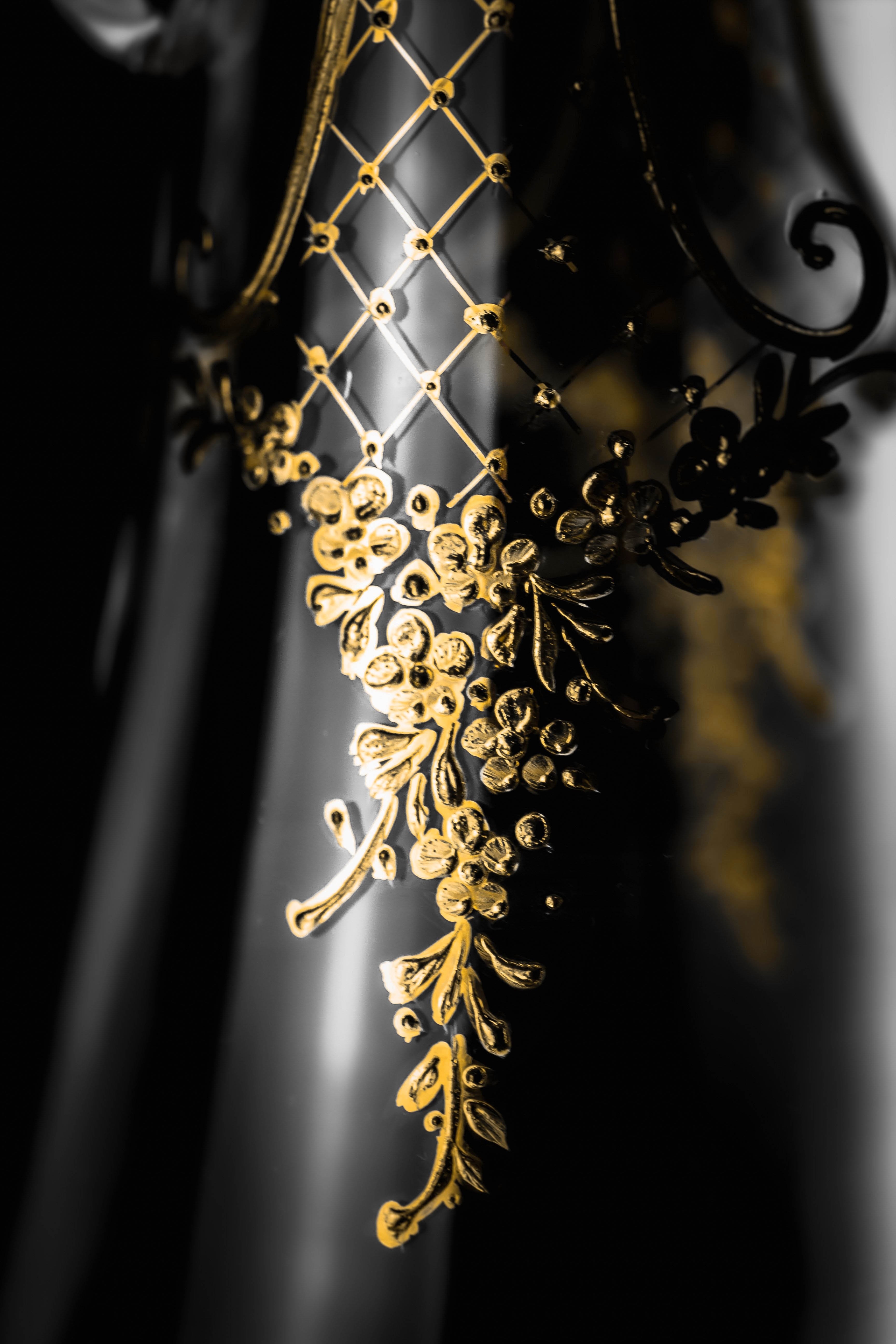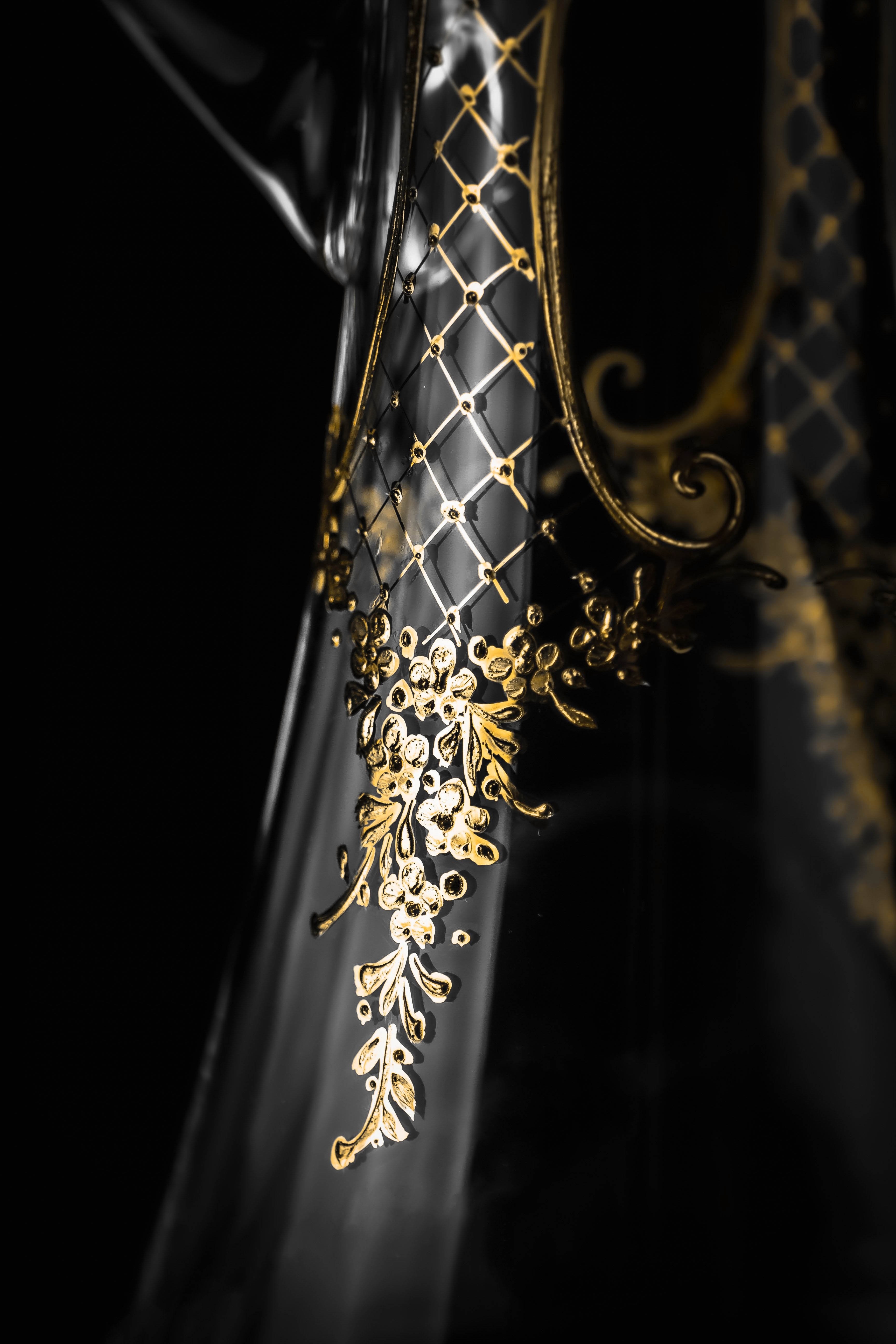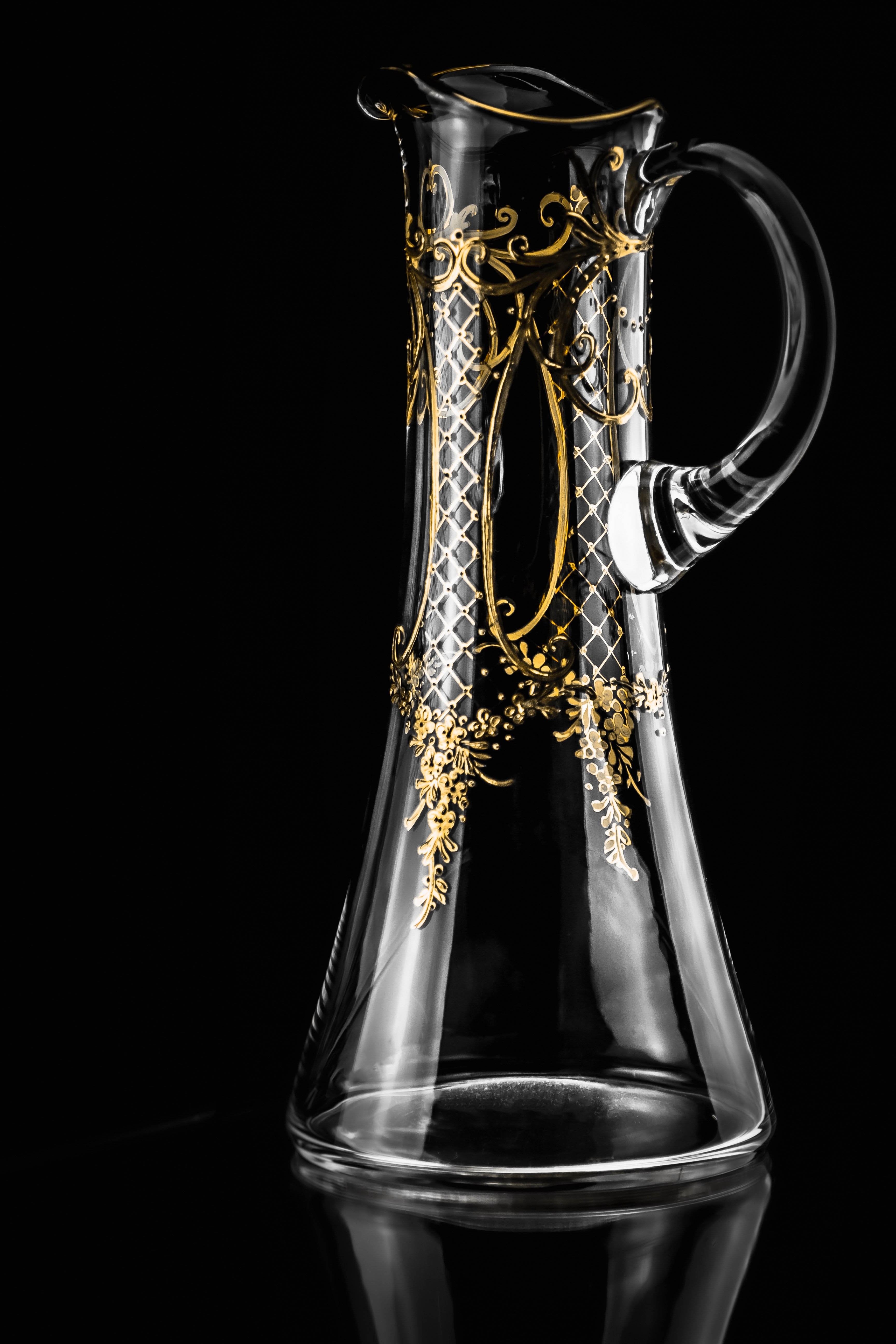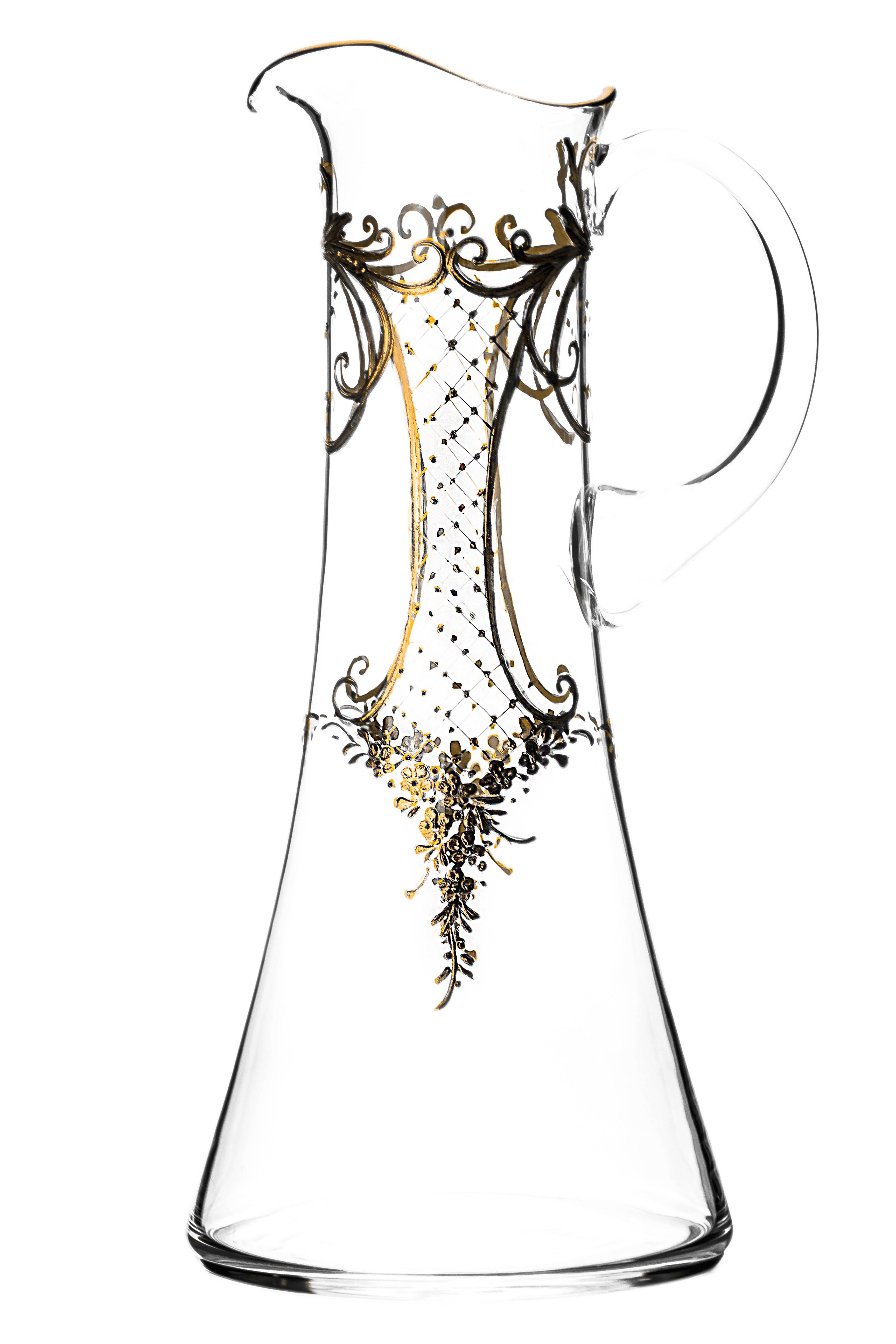 Džbán pro Vaše nápoje má ladné křivky s rozšířeným dnem a pojme až 2l. Zdobení je ruční a malovamé reliéfním rokokovým dekorem pomocí karátového zlata. Díky bohatému designu budete mít při pití vznešený pocit. Tímto se celá řada Noble zhostila svého jména. Podívejte se i na ostatní výrobky z řady Noble. Se sklenicemi na vodu není vznešenějšího setu umístěného na Váš stůl.