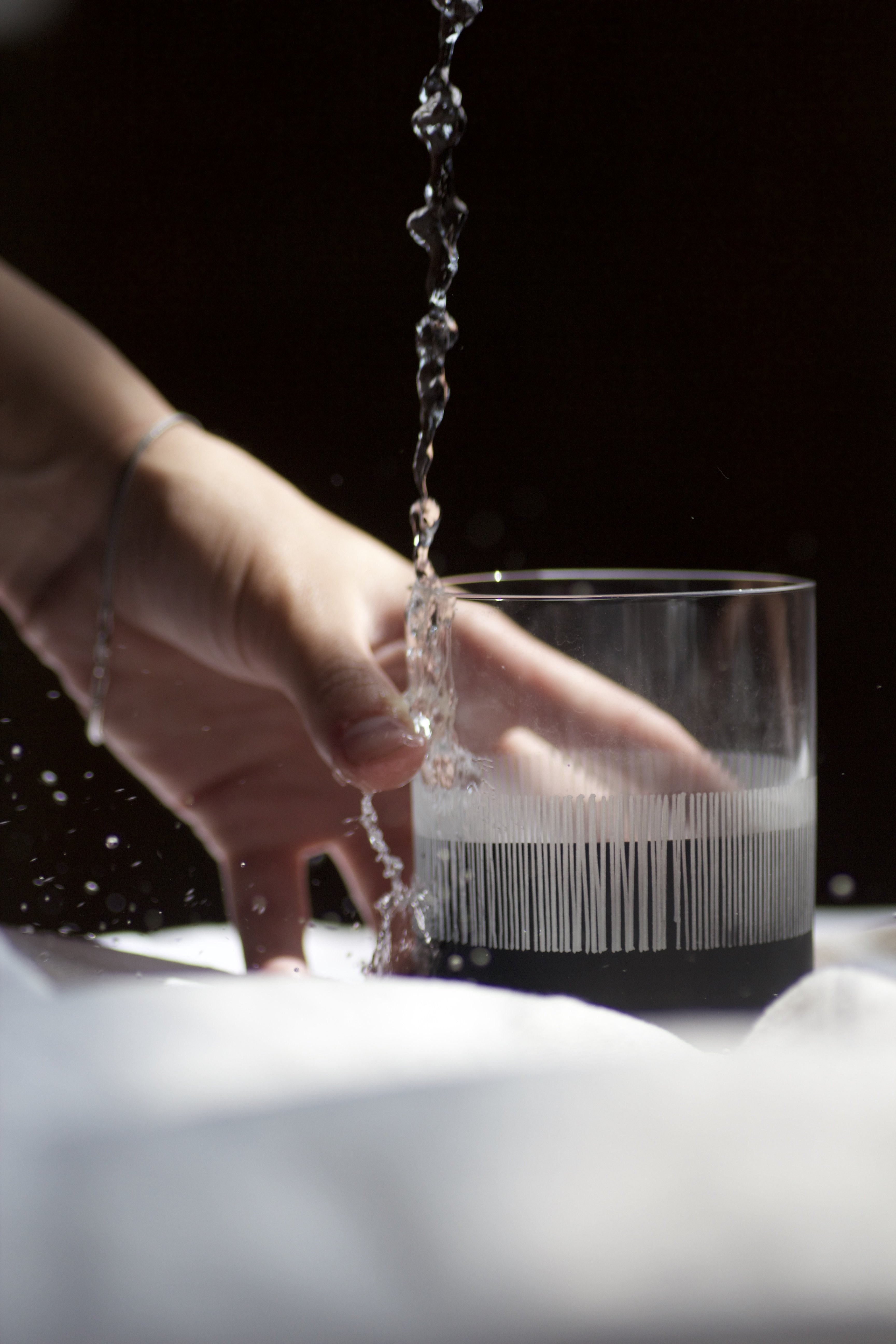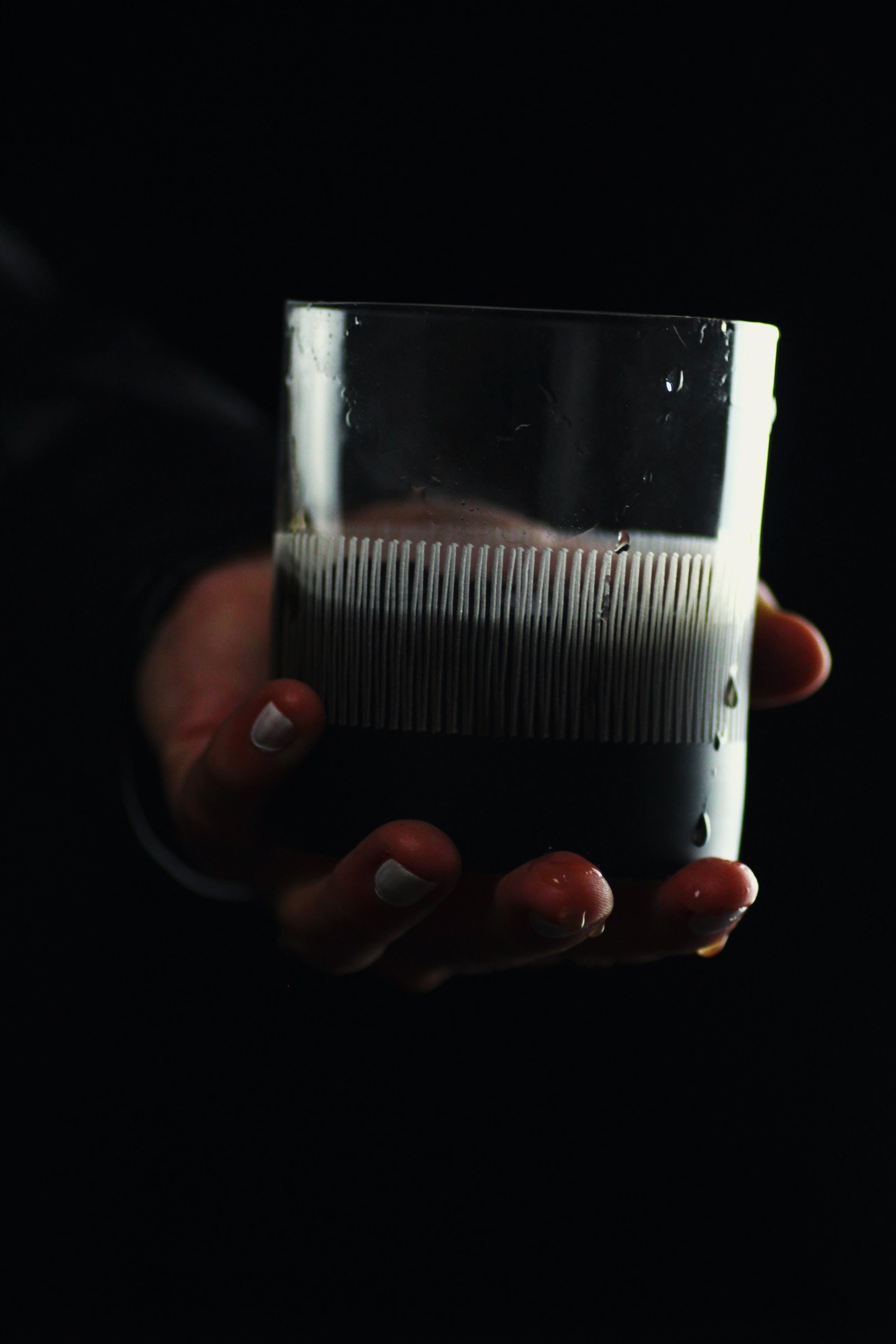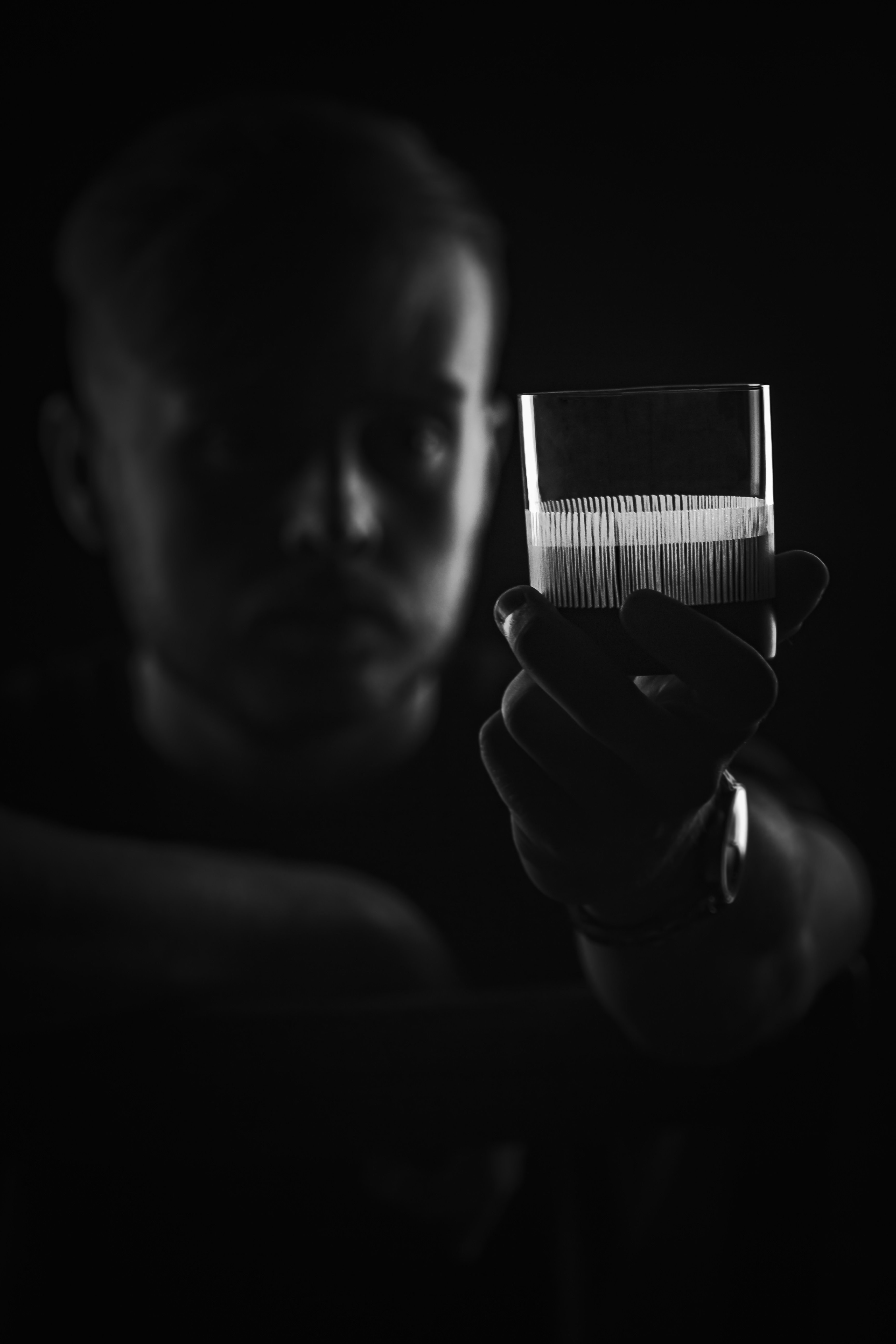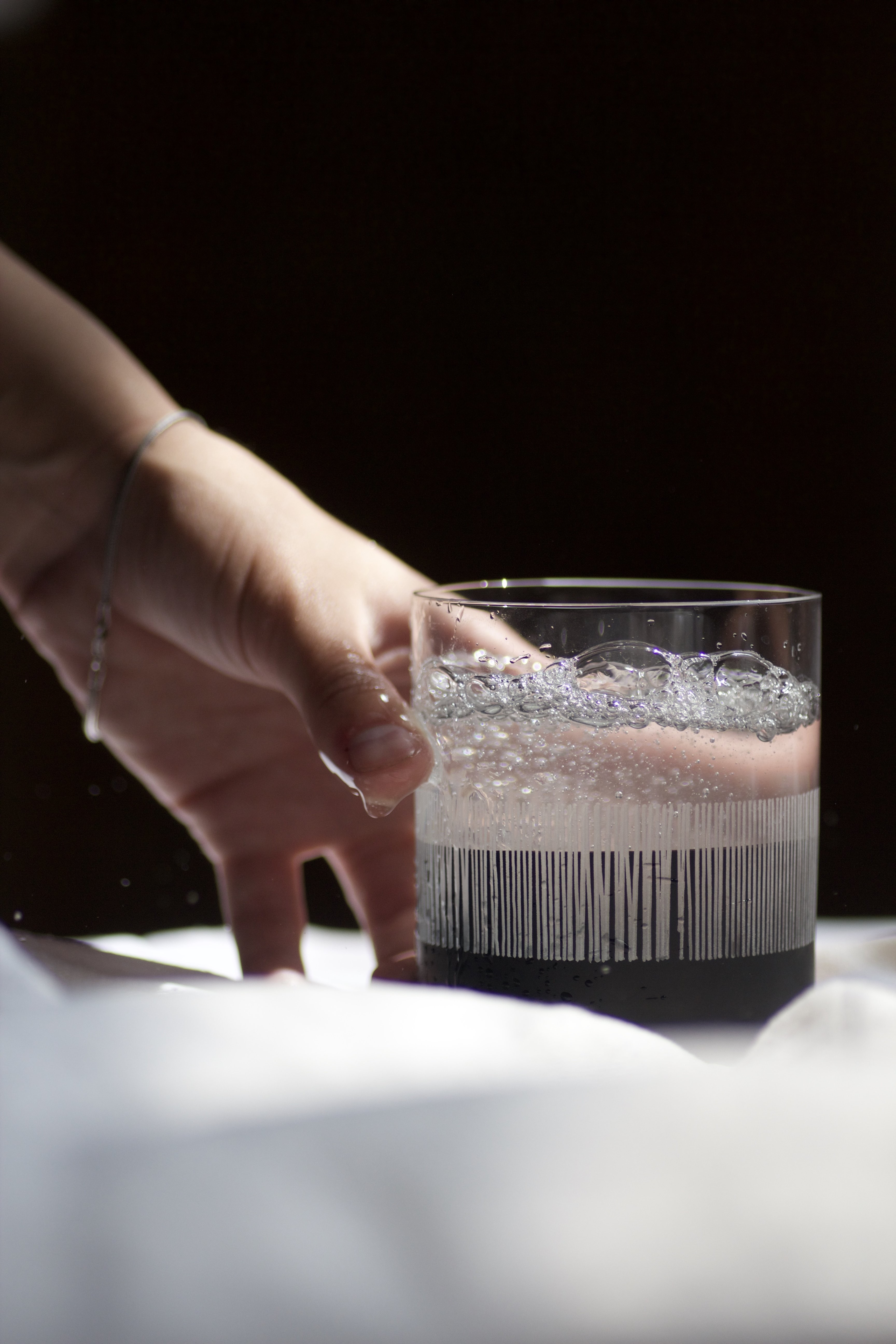 Design této sklenice na whisky je moderní v pojetí rytých pruhů po celém obvodu sklenice, jenž přecházejí do černého matného základu.
