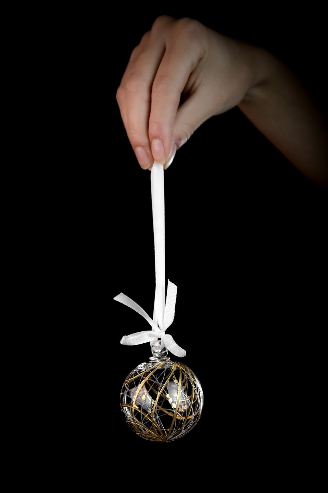 Ručně ryté linky objímají kříšťálové ozdoby Orbit a ryzí zlato dodává ten pravý slavnostní lesk. Dopřejte svým vánocům kouzelné, nadpozemské a jedinečné ozdoby.