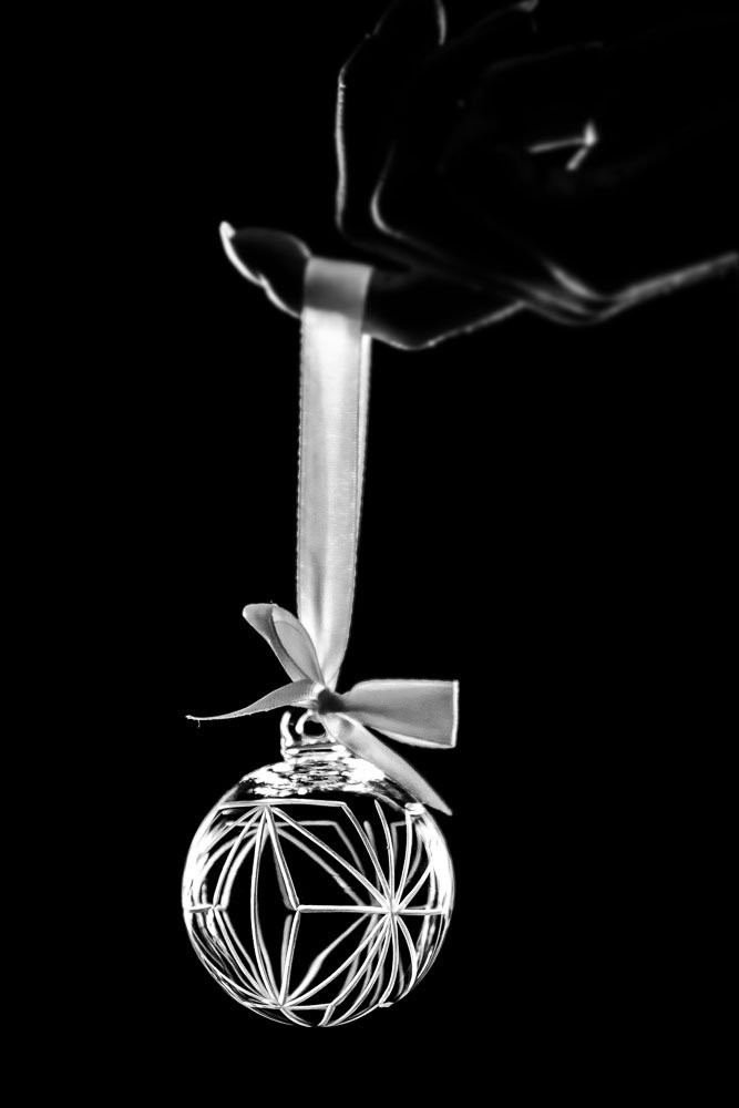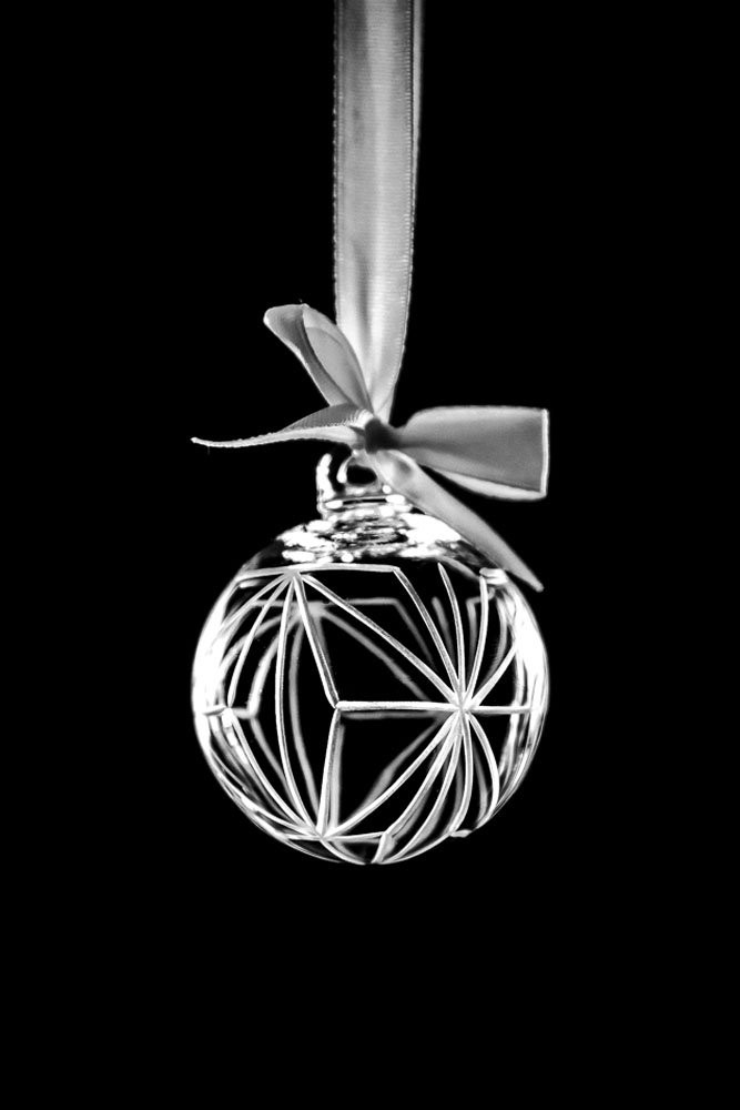Glory, téměř geometrický design skládá motiv hvězd, které k vánocům neodmyslitelně patří. Propadněte kouzlu Vánoc s ručně rytými elegány na vašem stromečku.