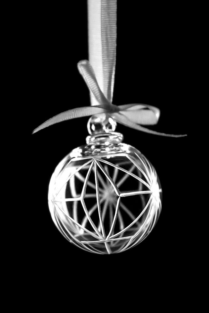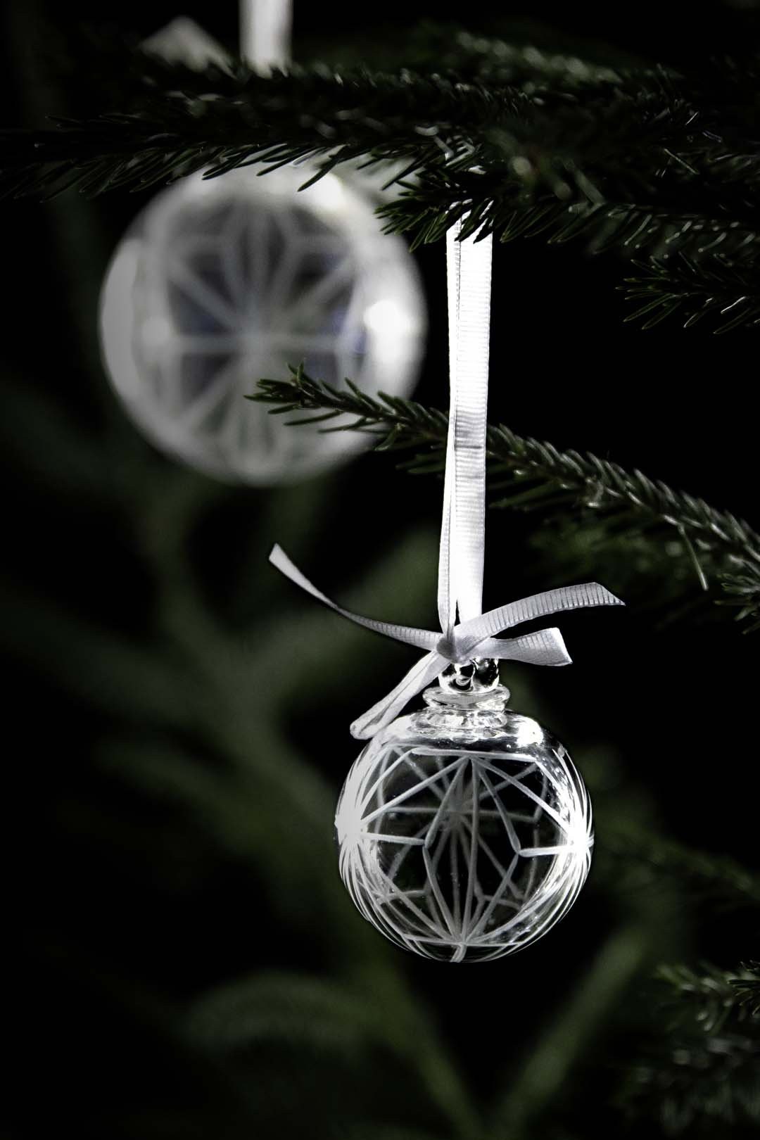 Glory, téměř geometrický design skládá motiv hvězd, které k vánocům neodmyslitelně patří. Propadněte kouzlu Vánoc s ručně rytými elegány na vašem stromečku.