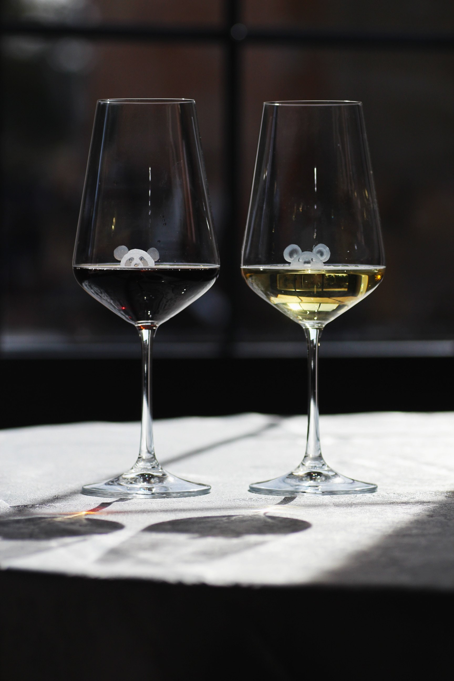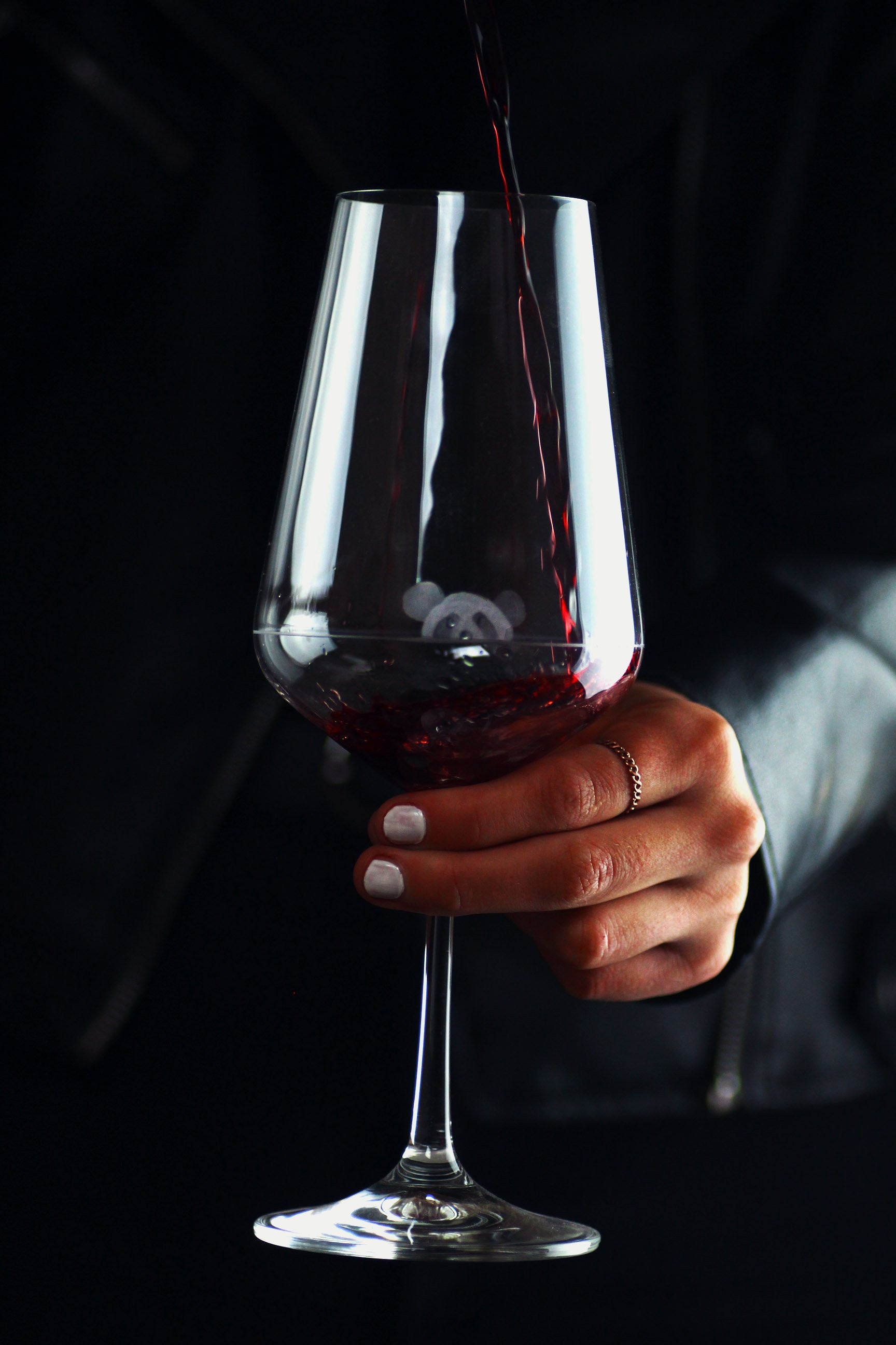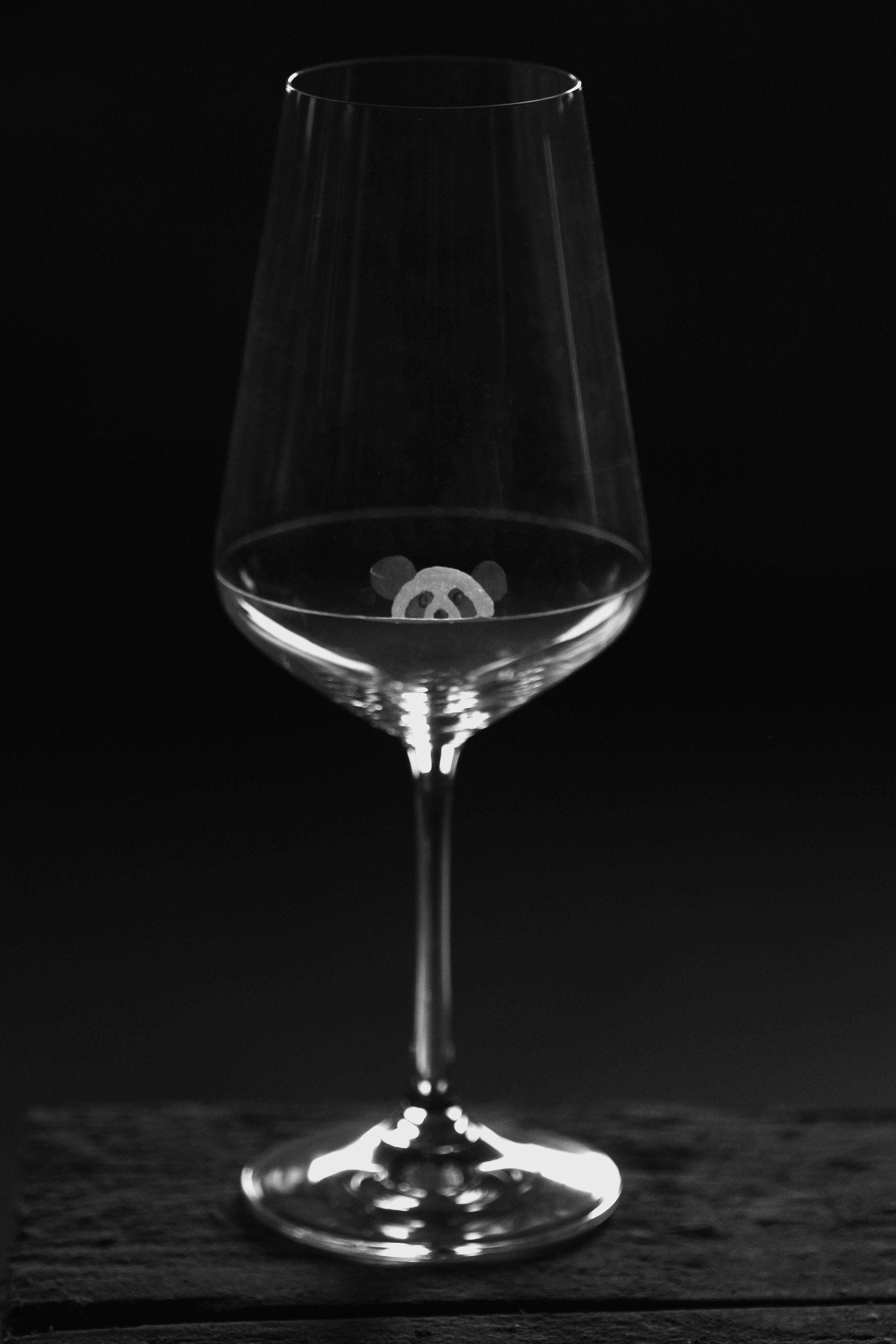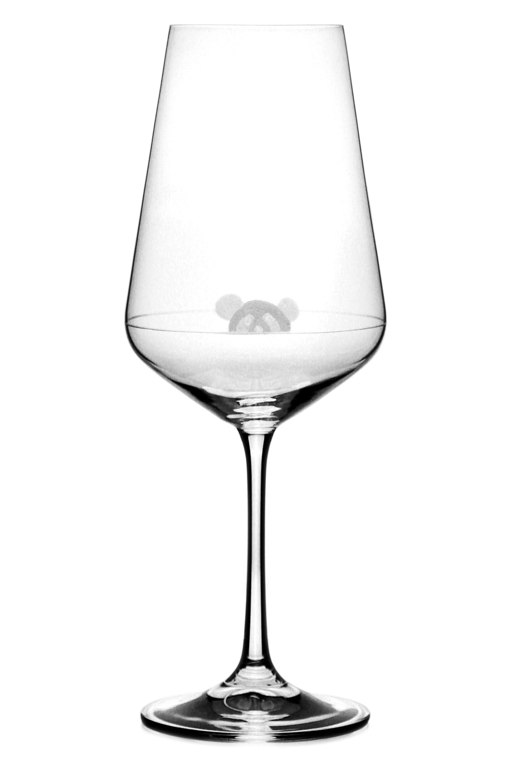 Čirá sklenice na víno o 350 ml s minimalistickým ručně rytým dekorem pro hravé lidi s nadhledem. S touto sklenicí si užijete legraci v každém vašem doušku, tak neváhejte, protože vykukující Panda je opravdu schopna pokaždé vykouzlit úsměv, bez kterého by se život neobešel.