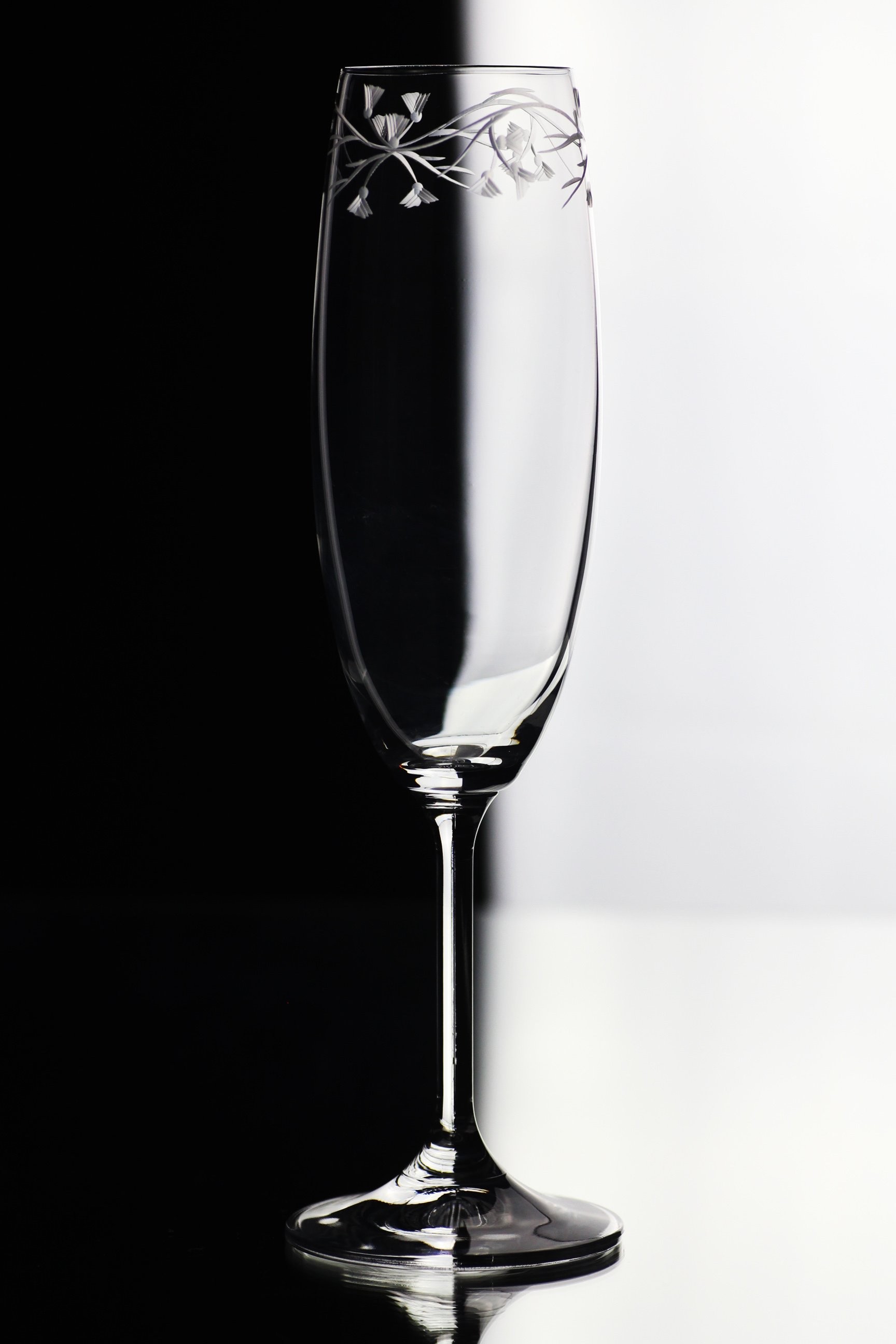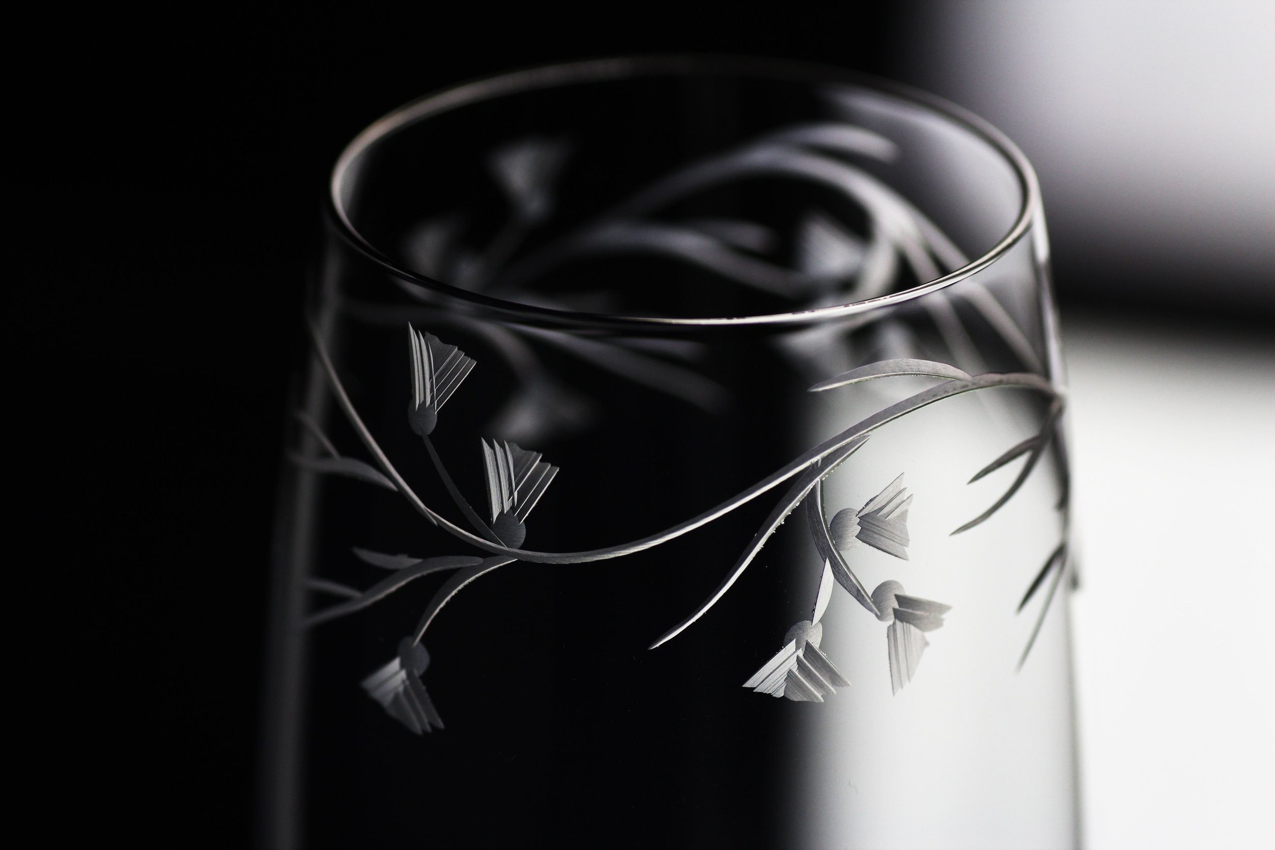 Ve vrchní části sklenice se nachází ručně rytý rostlinný dekor, který podtrhuje jedinečnost nápoje uvnitř. Povzneste šampaňské na zcela jinou úroveň.