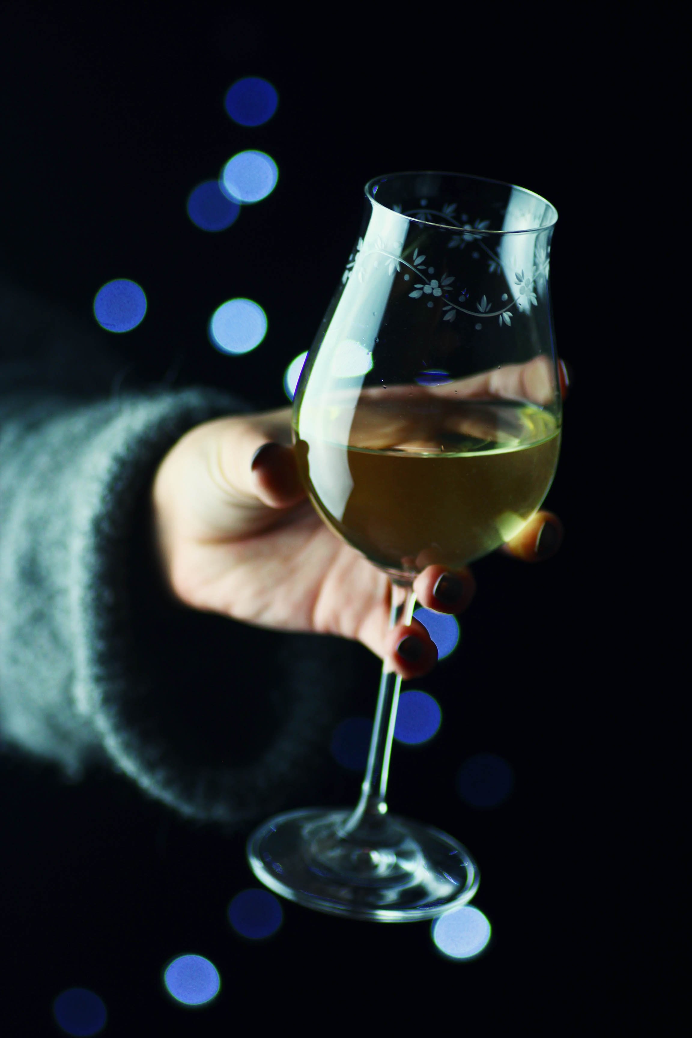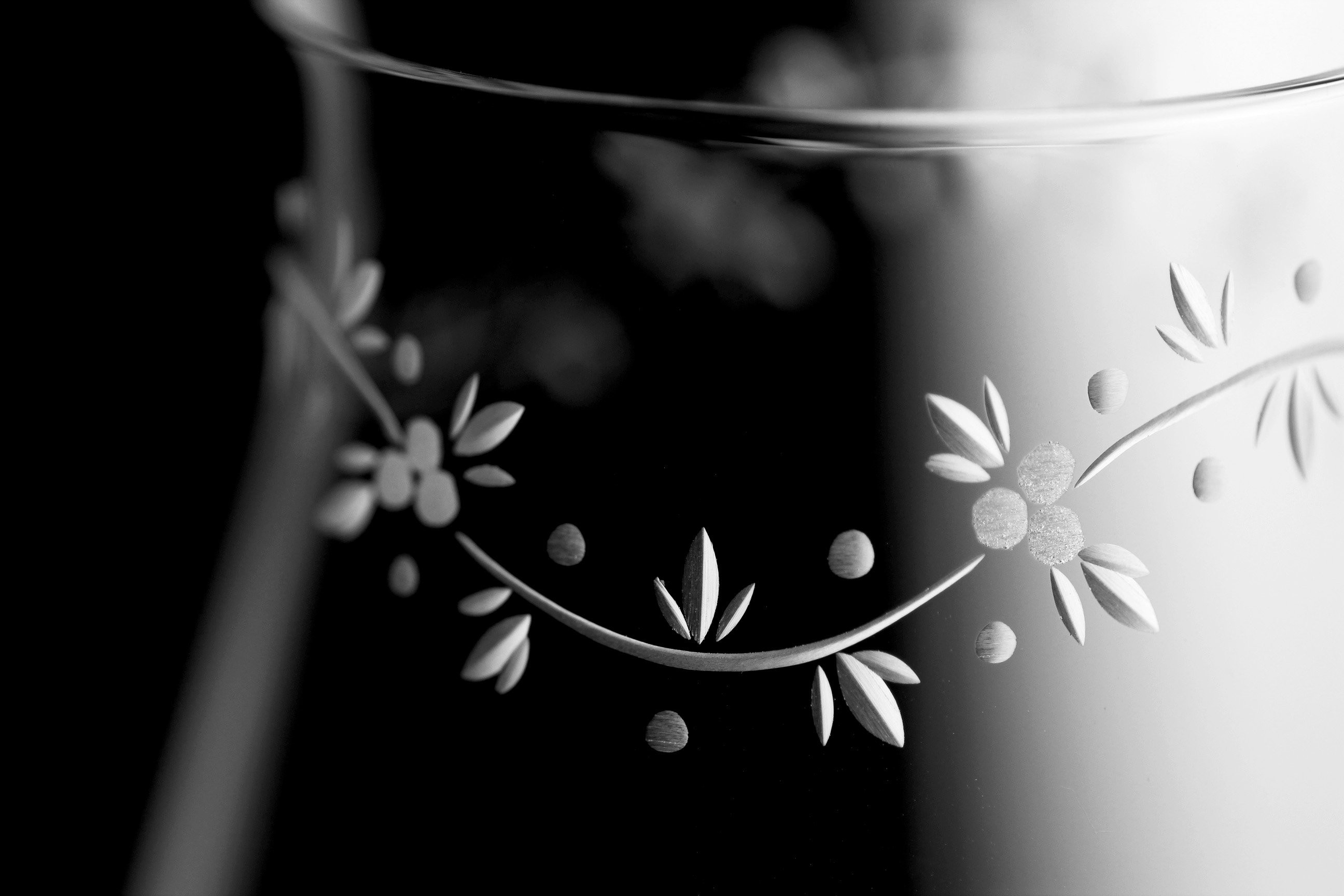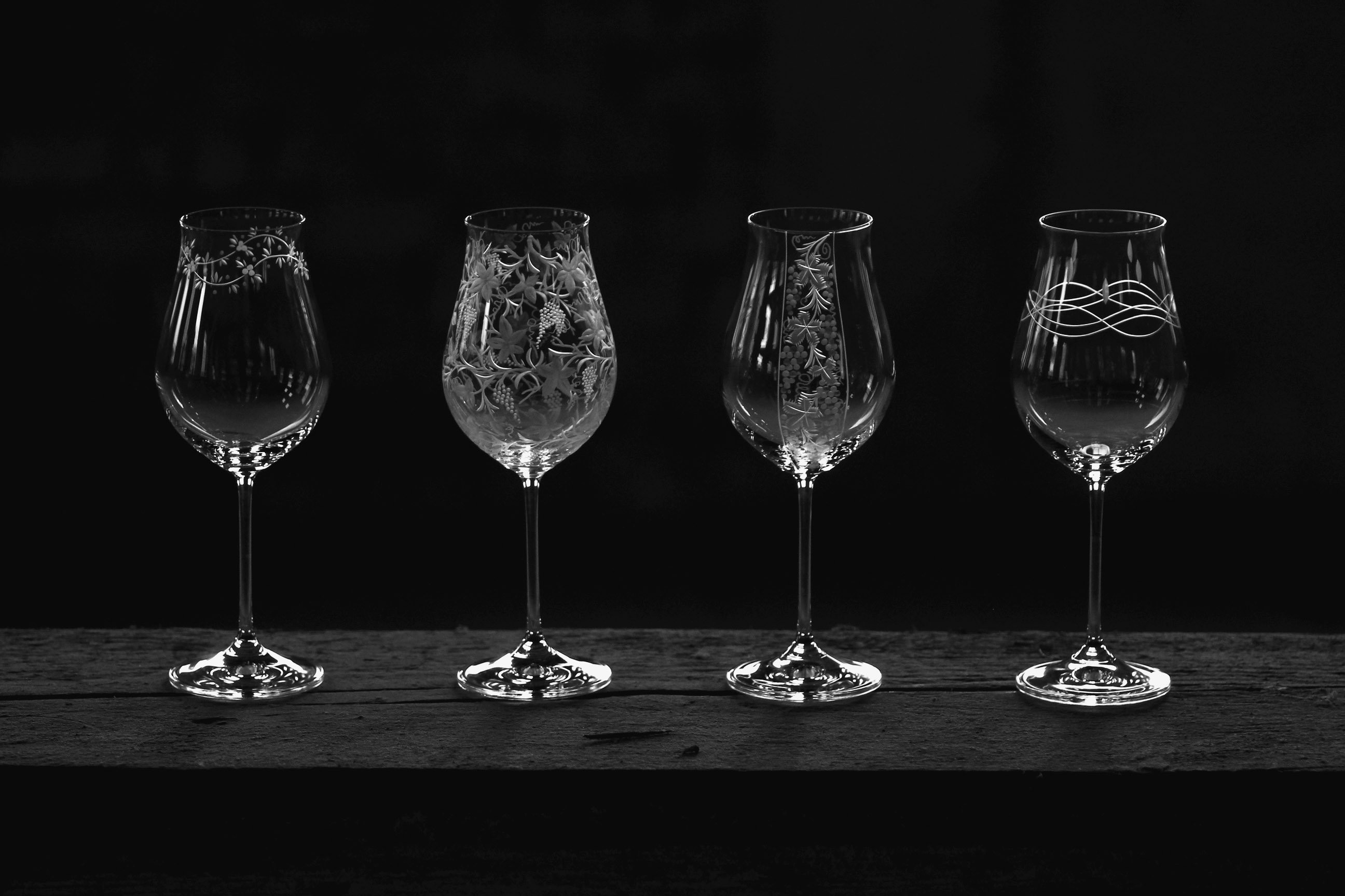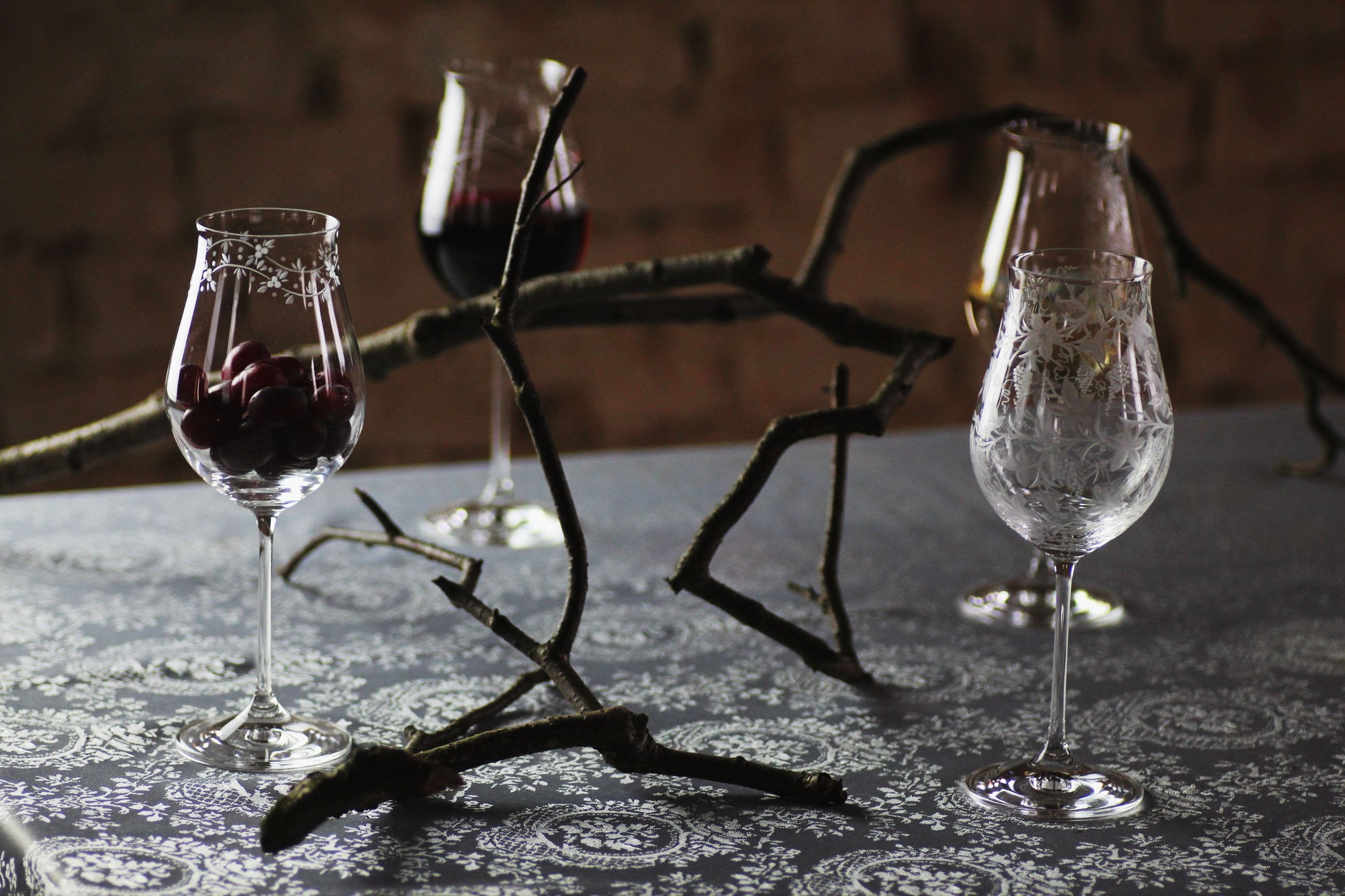 Vinná sklenice ladných křivek v ponechaném čirém provedení a jednoduchém dekoru, to vše kvůli viditelnosti výtečného a kvalitního vína. Dekor je ručně vyrytý a velmi jemný, jenž připomíná nasazenou přírodní korunku.