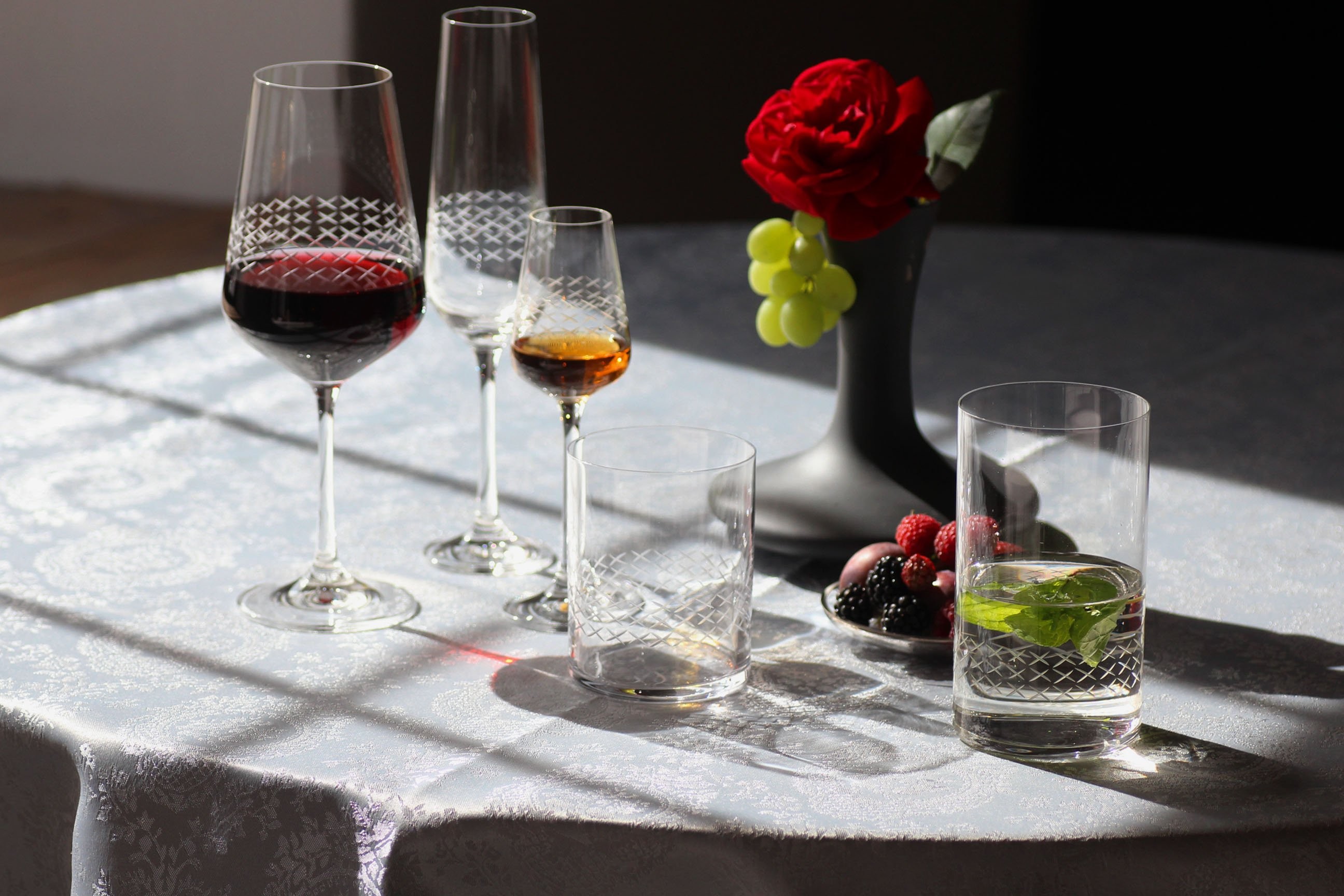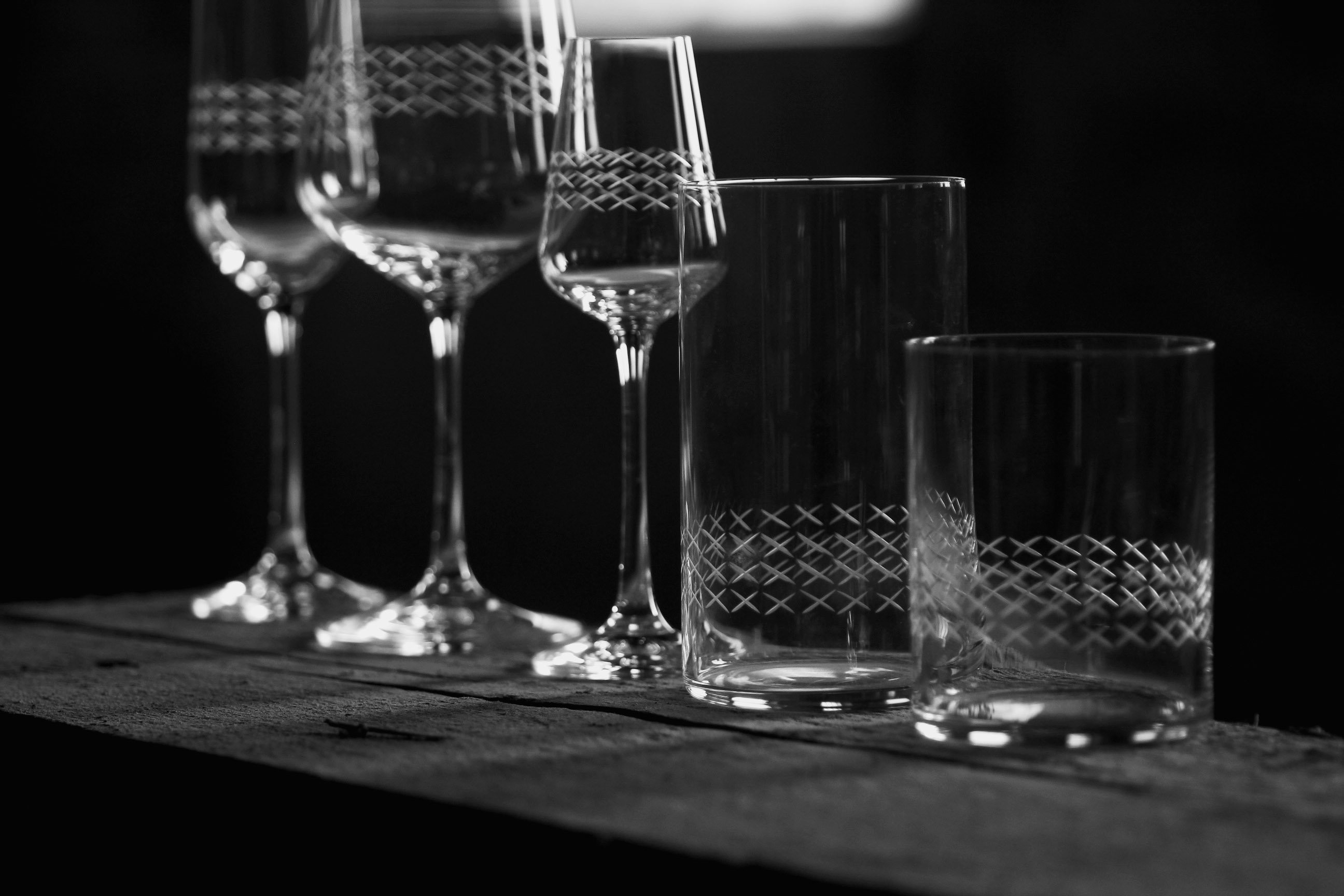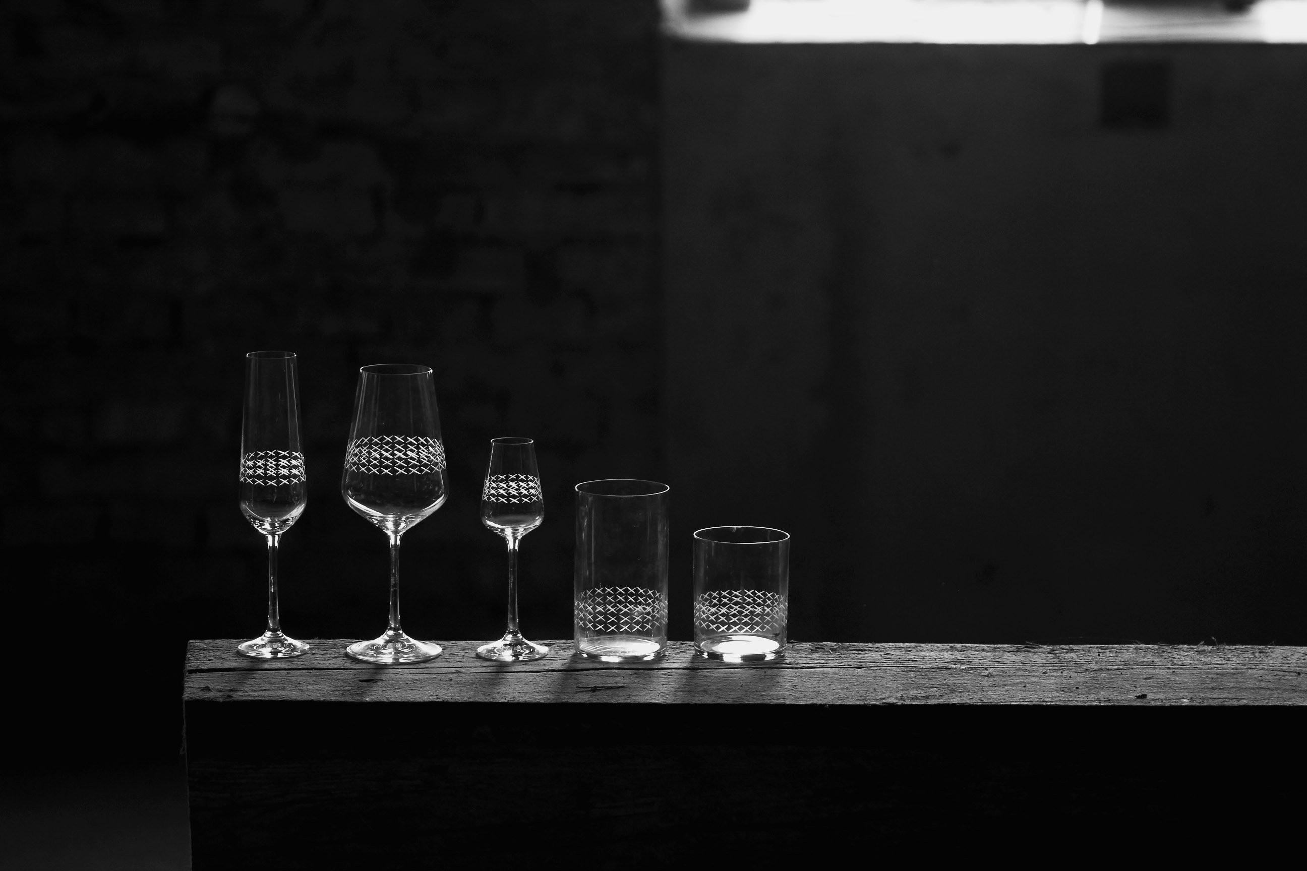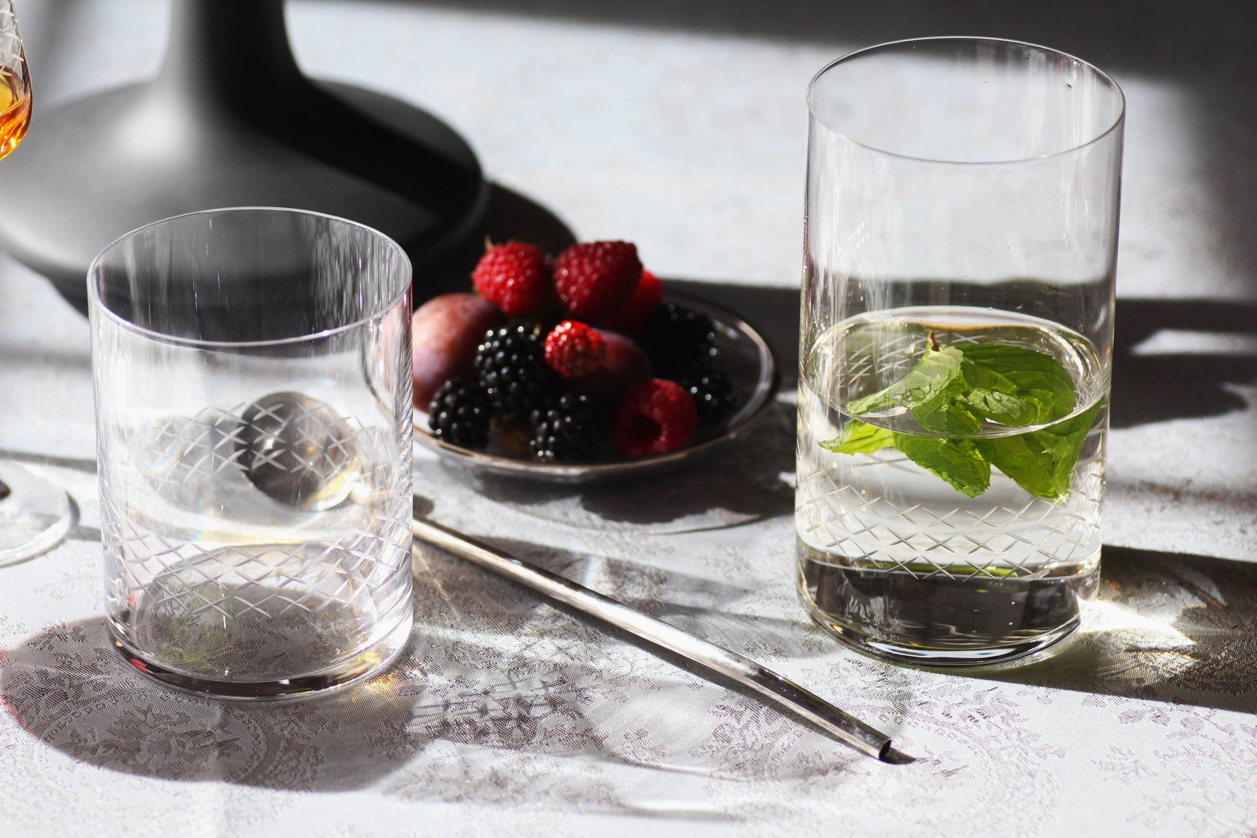 Sklenice nejen na vodu s jednoduchými ručně rytými prvky, které vrhají krásné odlesky. Tady skutečně platí, že v jednoduchosti je krása. A co teprve nastane, když se naplní výborným koktejlem, vodou či pivem - vše se vzájemně propojí.