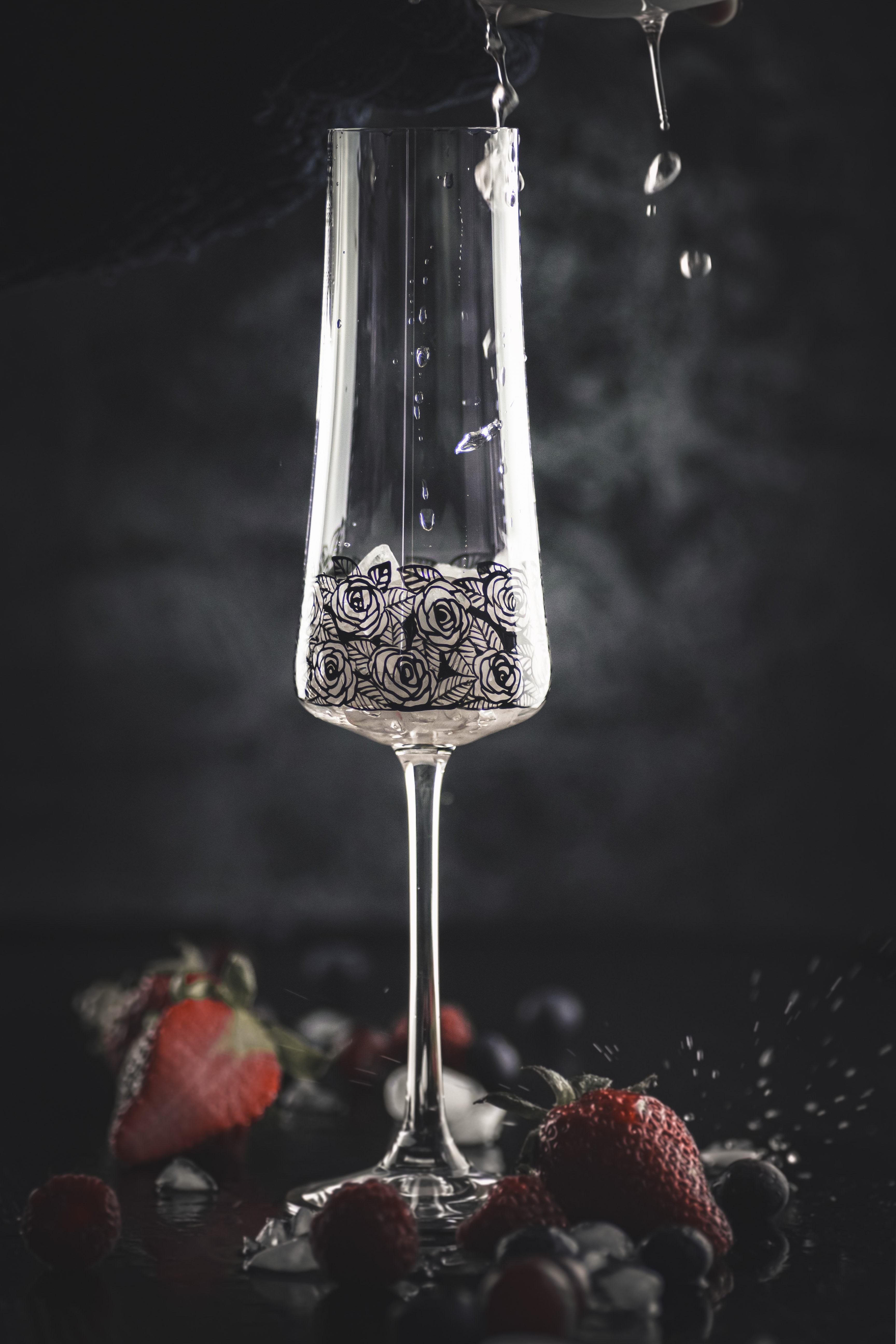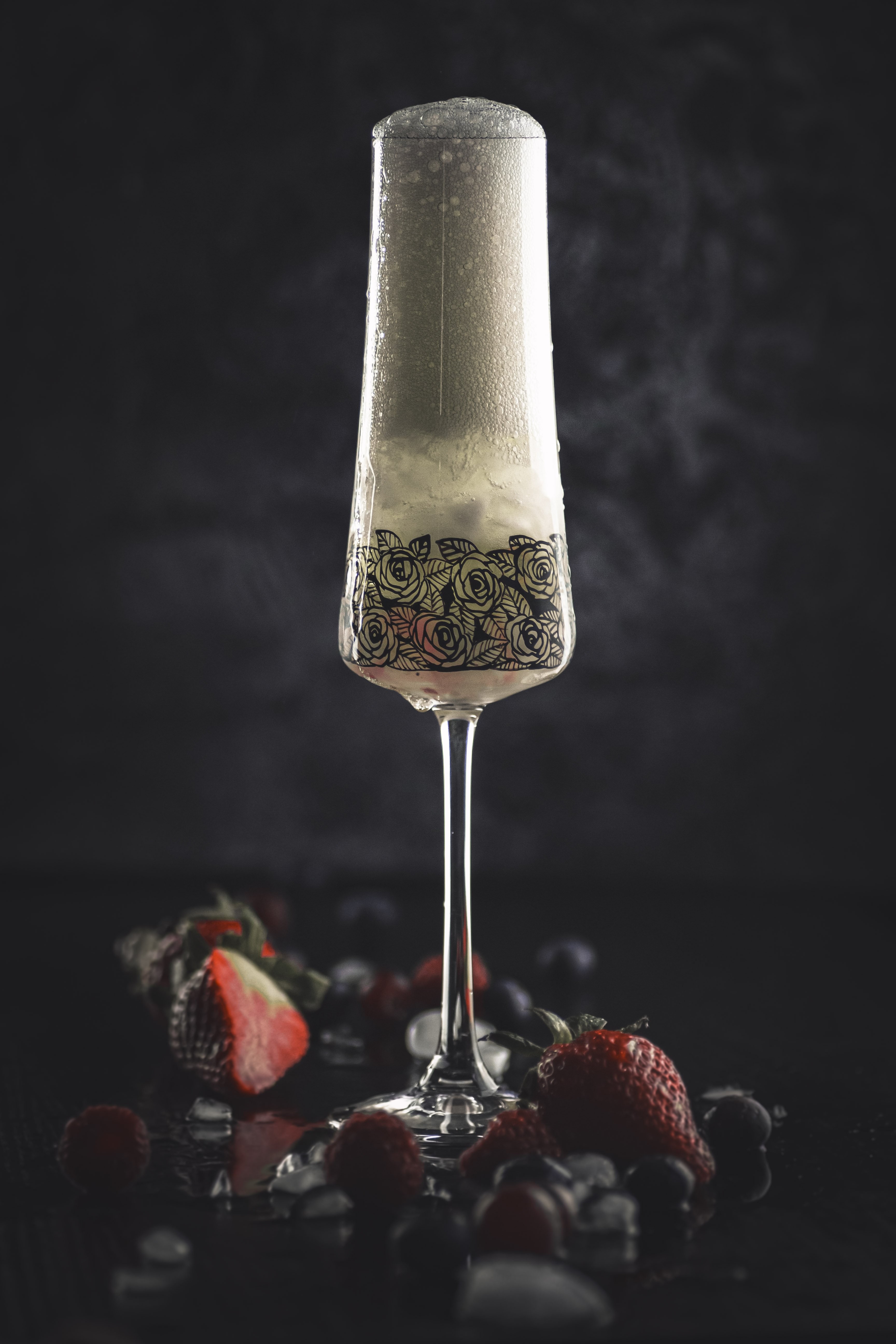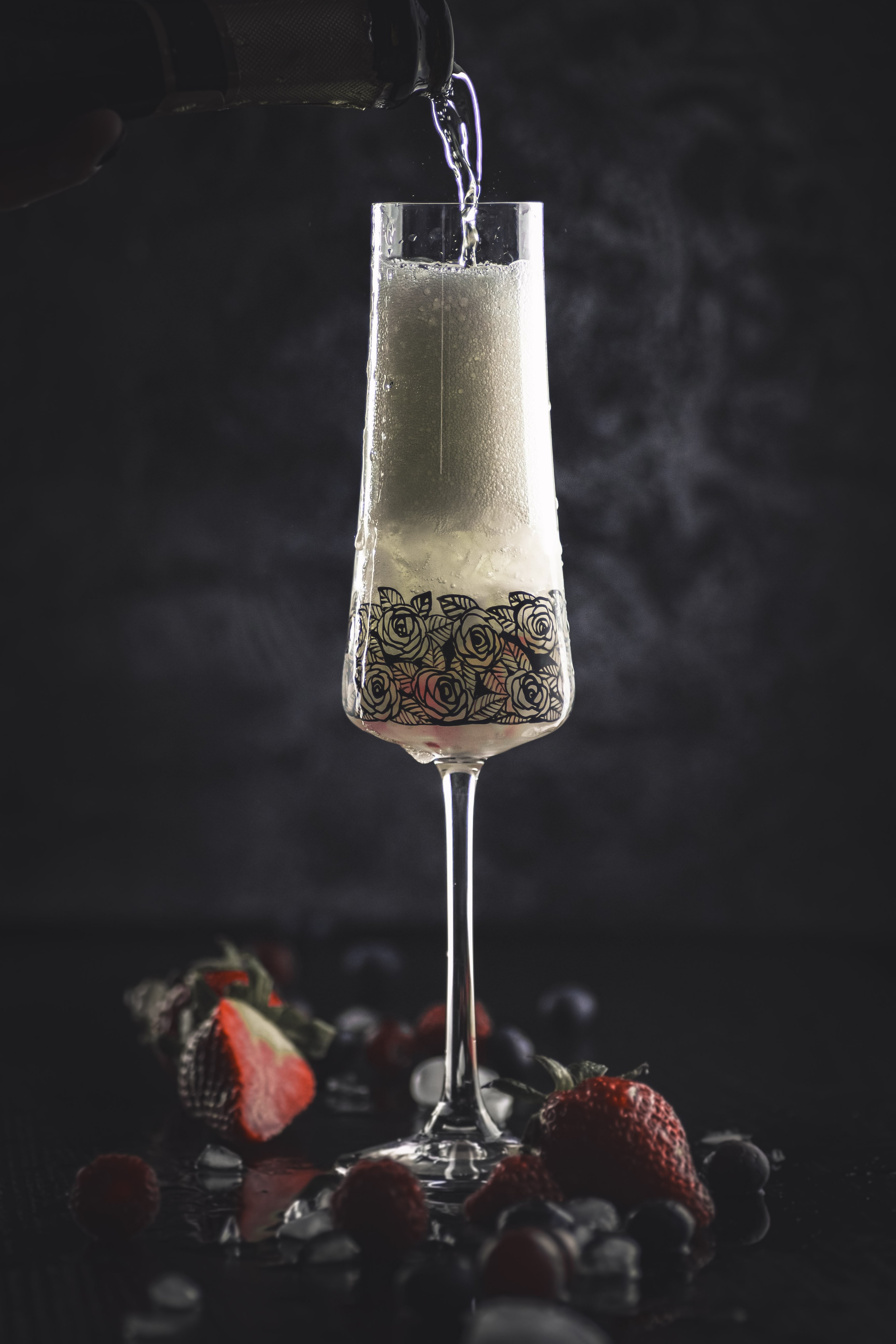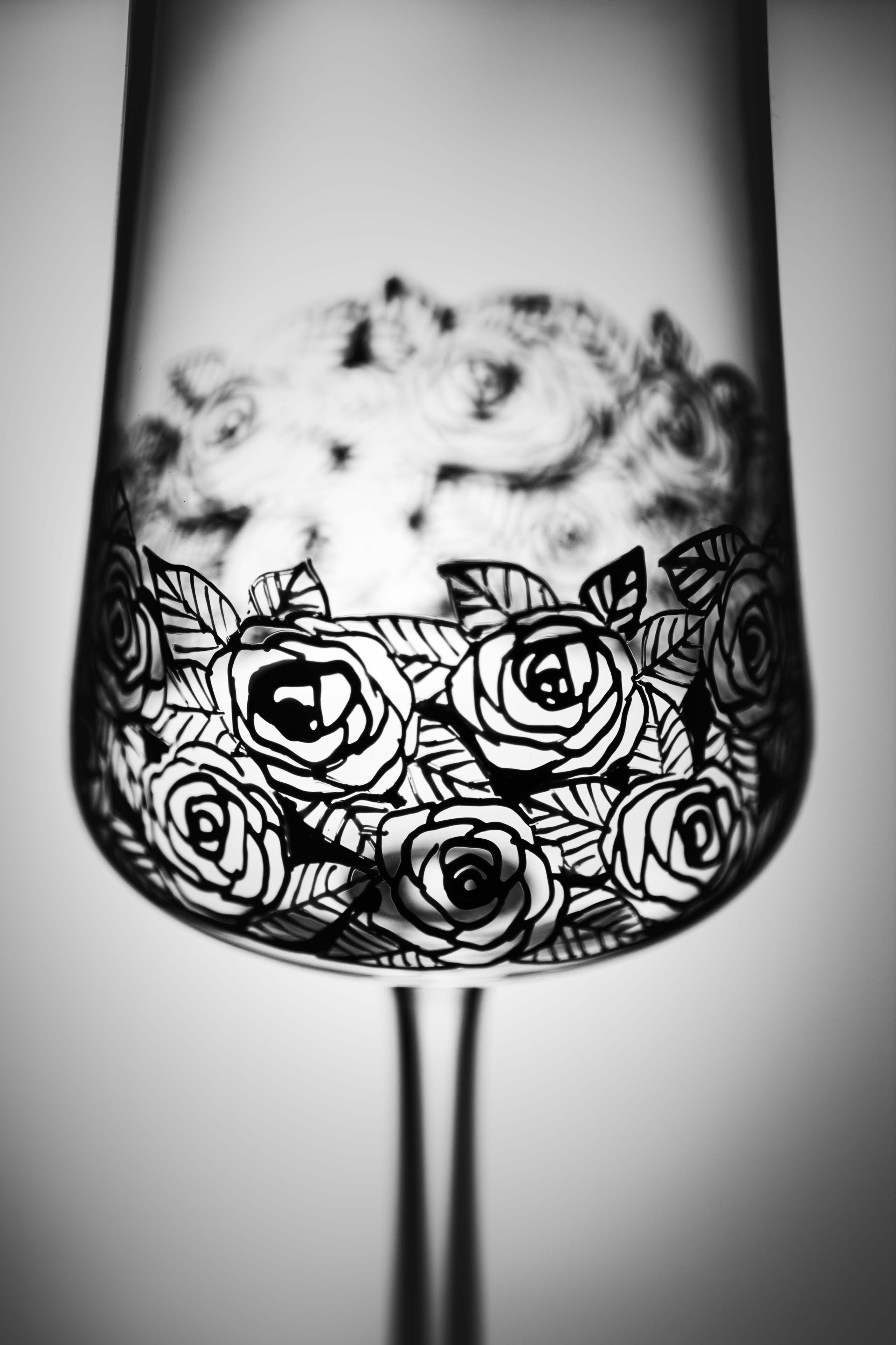 Tento moderní a zároveň romantický dekor osvěží jakýkoliv prostřený stůl. Černé růžičky s lístečky jsou ručně malované a krásně ladí k tvaru číše, ale i ke kombinacím s jinými sklenicemi. Spojení ruční práce se sklem za vzniku nadčasového designu pozvedne stolování na novou úroveň.