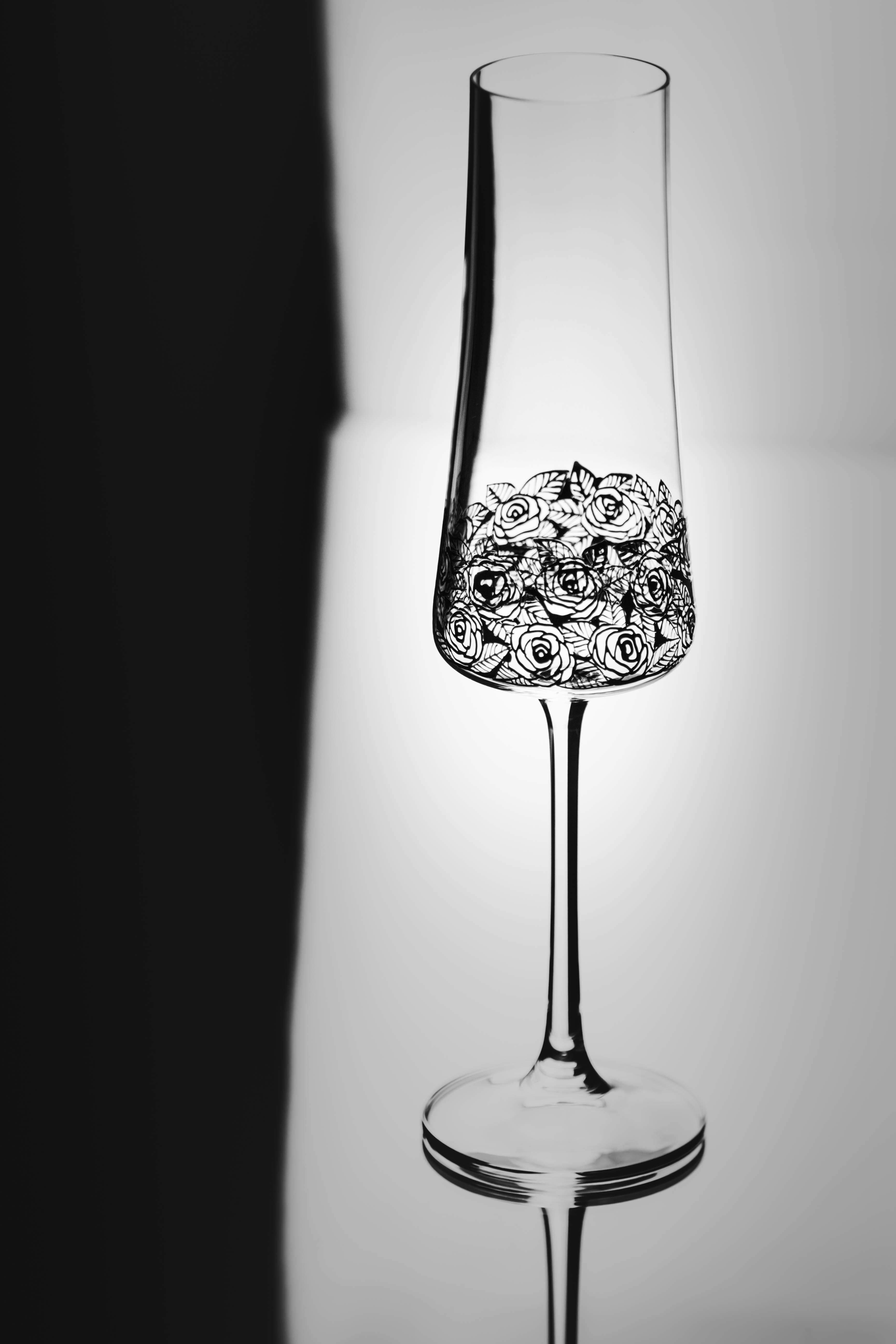 Ručně malovaná sklenice na šampaňské 210 ml