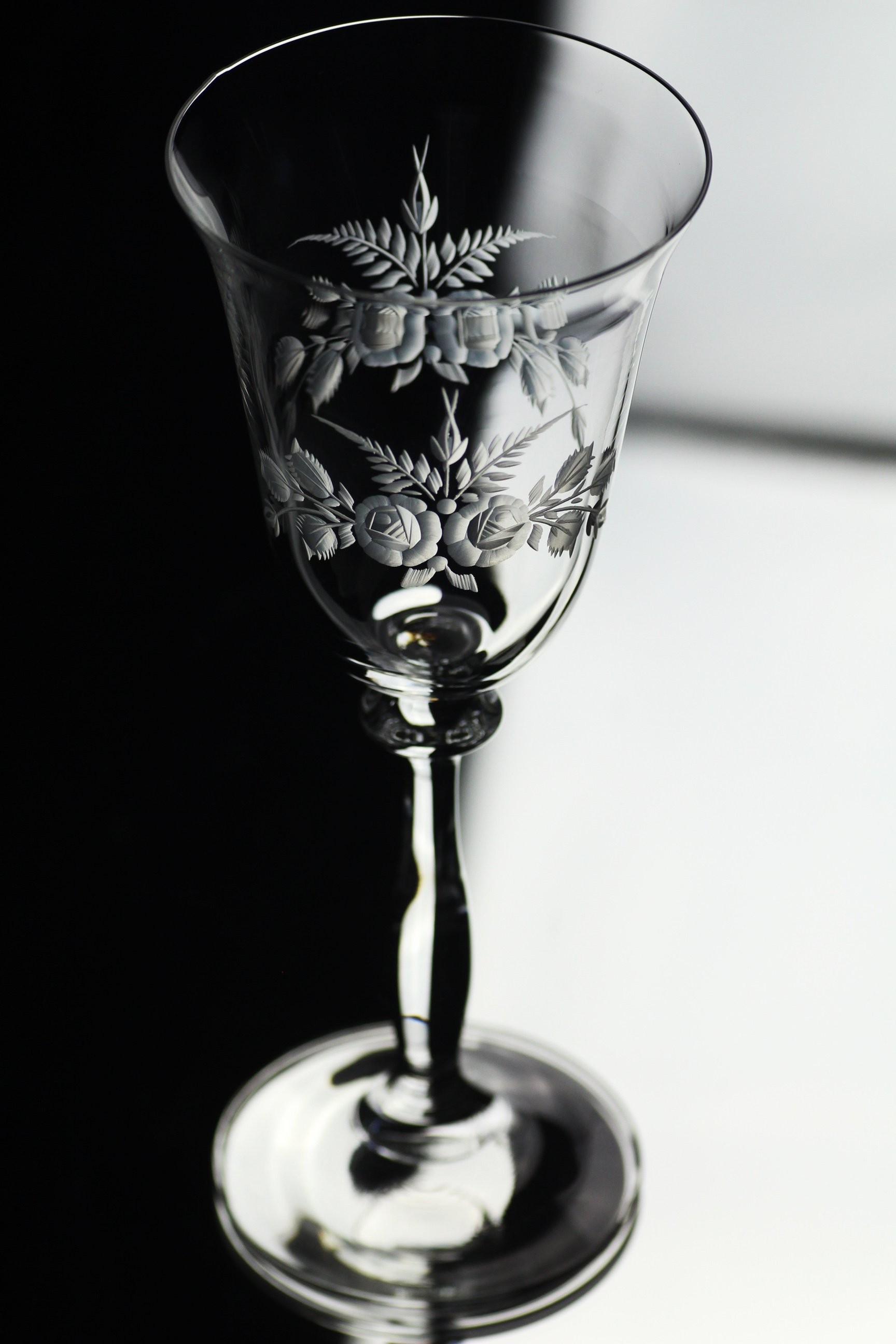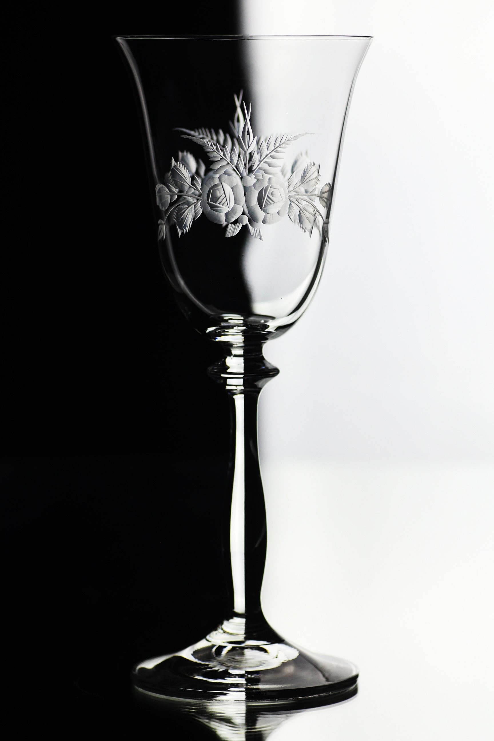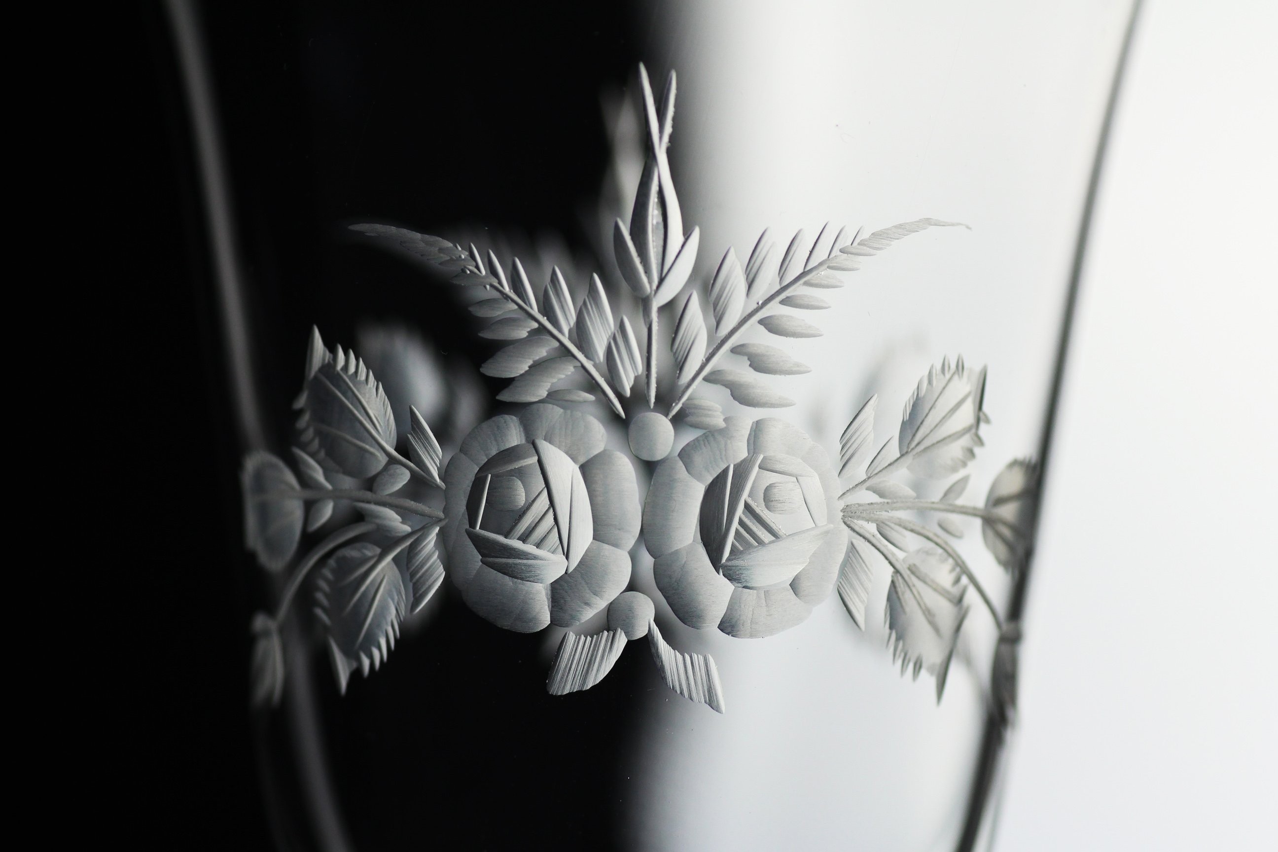 Sklo: Čiré, Ručně ryté, Bezolovnatý český křišťál