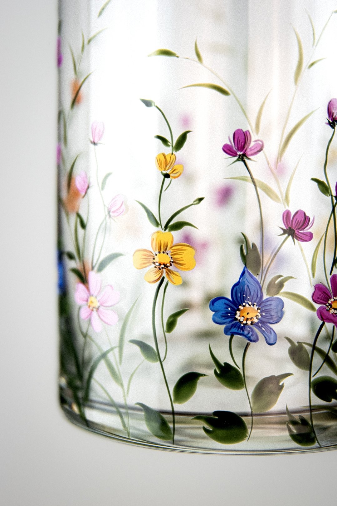 Ručně malovaná sklenička ROSELLE je oslavou barev, které rozzáří každý okamžik. Bohaté květy v pestrých odstínech působí živě, radostně a přirozeně přitahují pohled. Jejich záře vnáší do každodenních chvílí lehkost a krásu, která vykouzlí úsměv při každém doteku a s každým pohledem tak připomíná, jak okouzlující může být svět plný květů všech druhů.