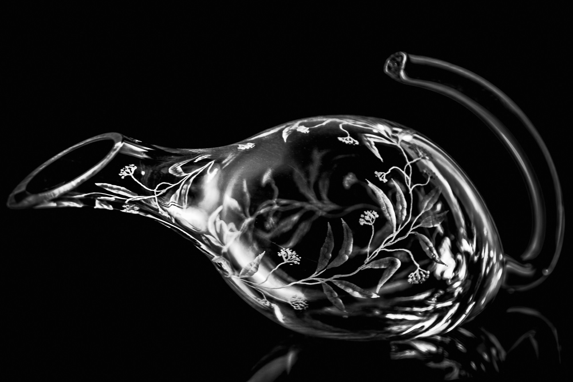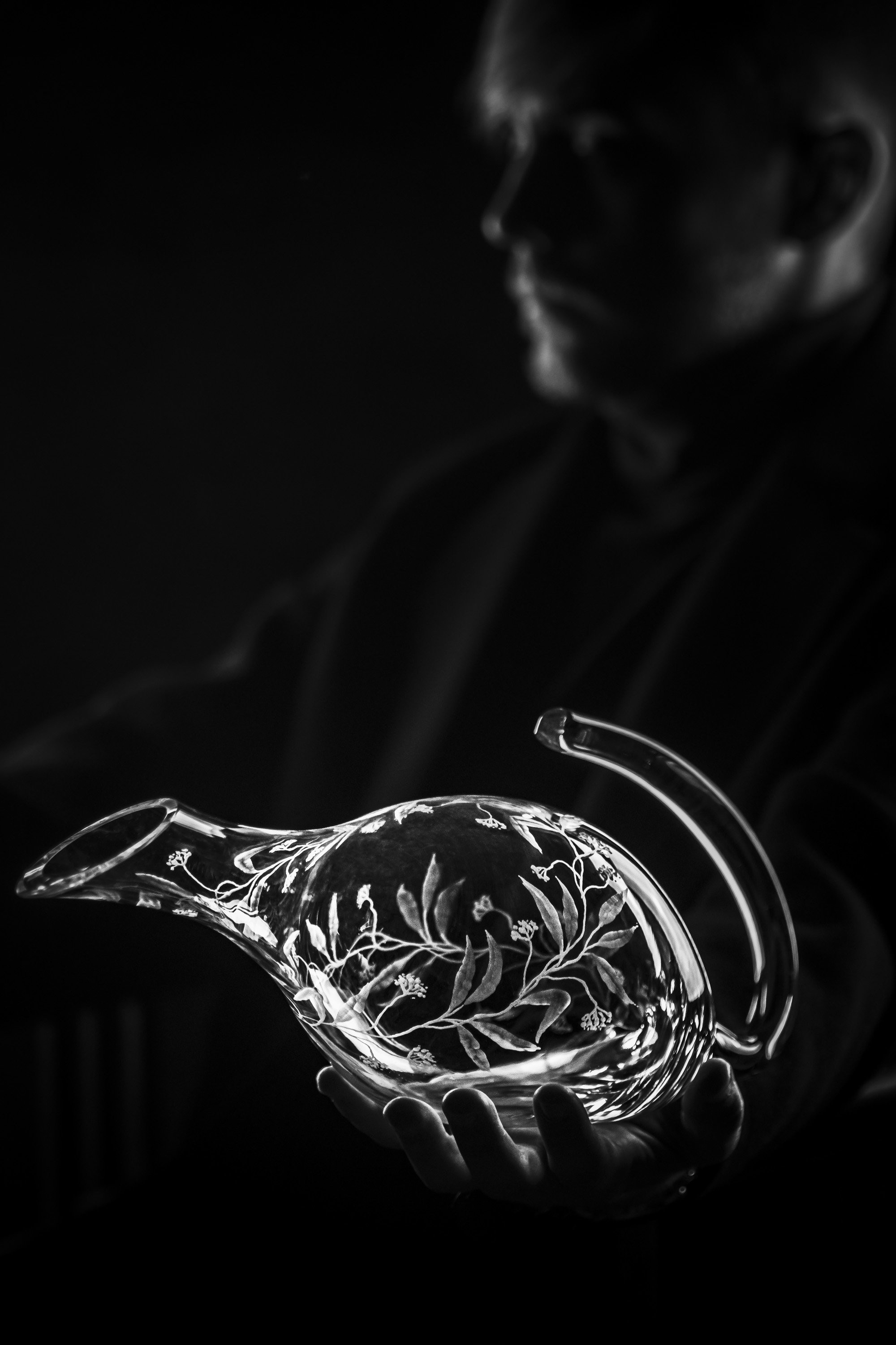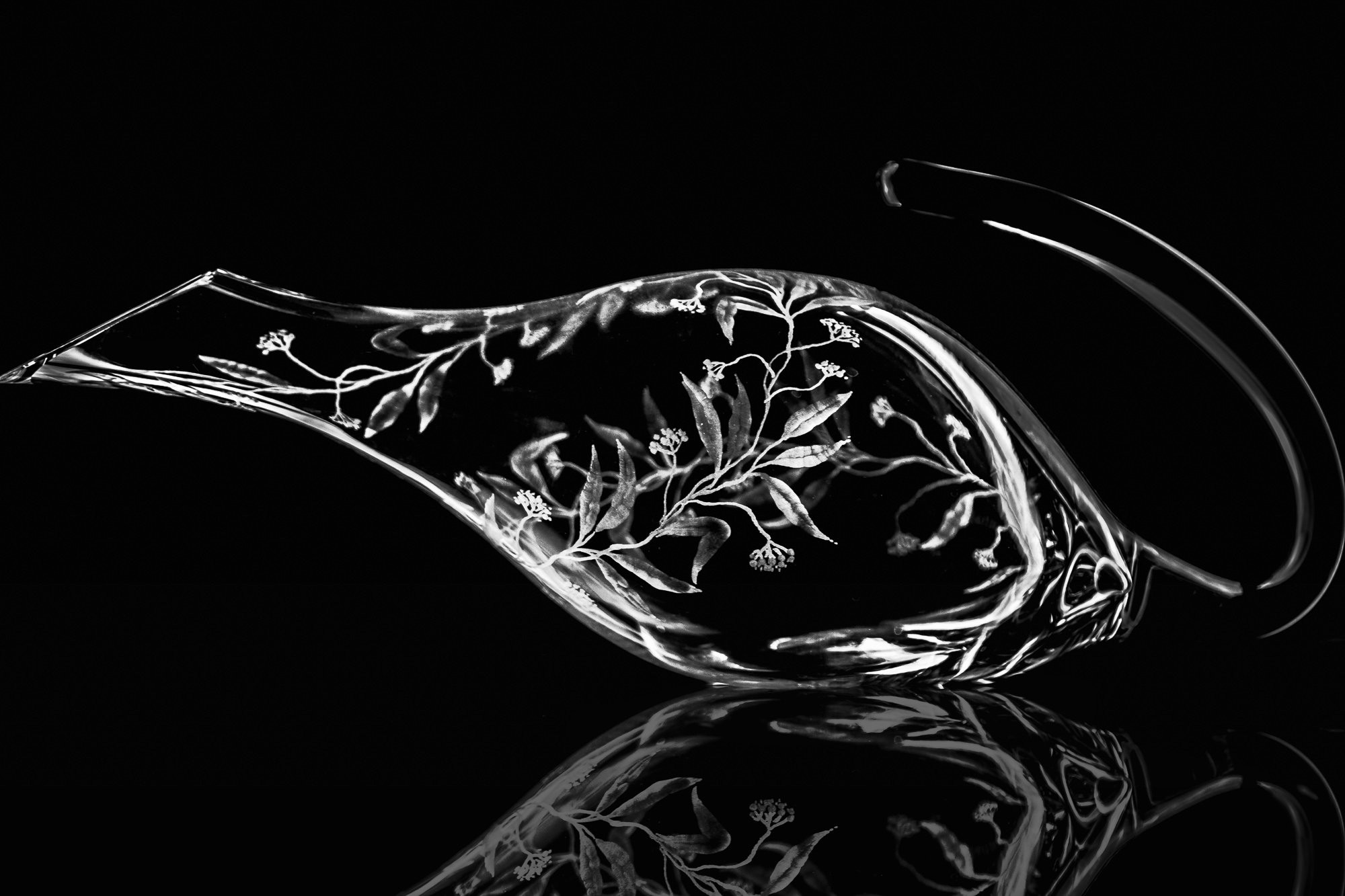 Tento dekantér na víno je skvělou volbou pro ty, kteří hledají unikátní set. Je celý ručně rytý s připomínkou přírody kolem nás. Toto propojení ruční práce se sklem s unikátním designem dodá Vašemu stolování tu pravou doposud chybějící jiskru.