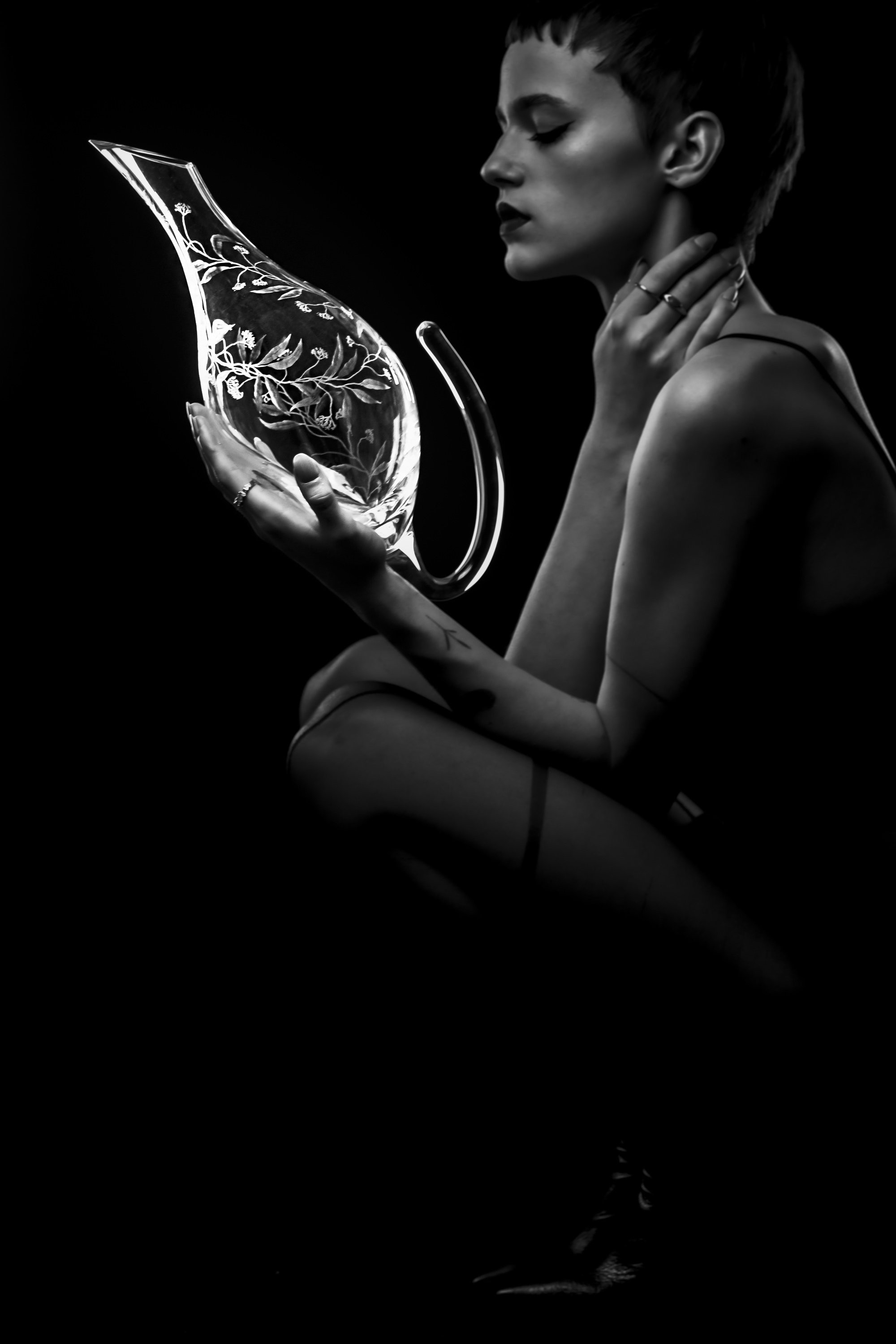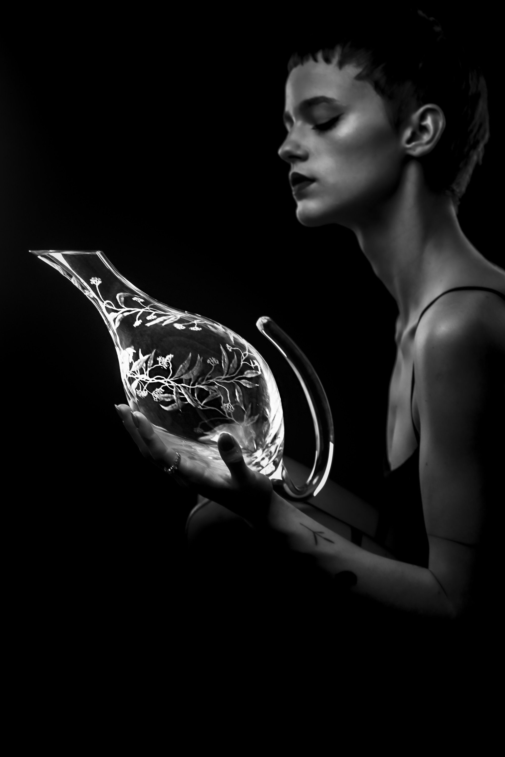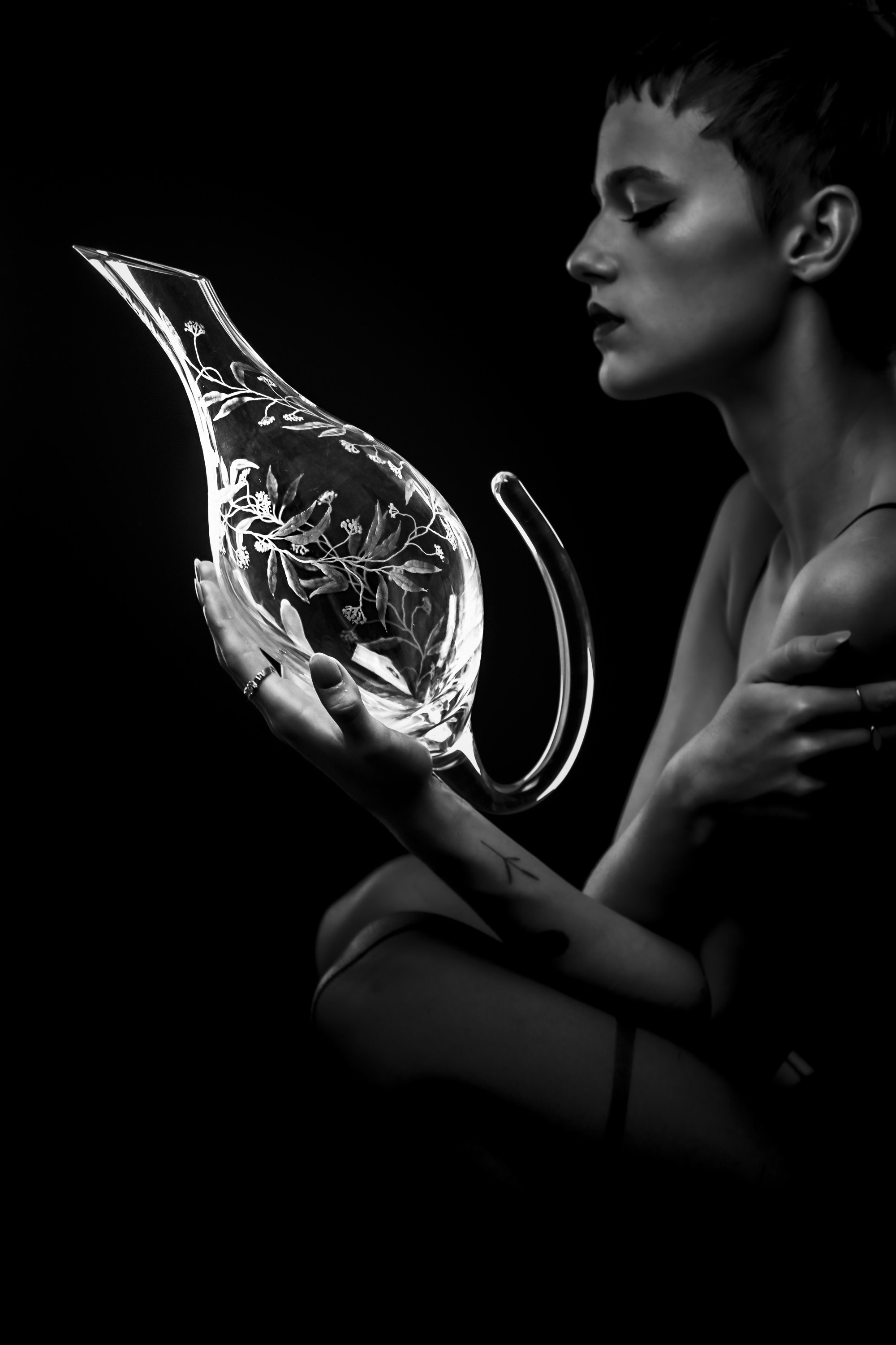 Tento dekantér na víno je skvělou volbou pro ty, kteří hledají unikátní set. Je celý ručně rytý s připomínkou přírody kolem nás. Toto propojení ruční práce se sklem s unikátním designem dodá Vašemu stolování tu pravou doposud chybějící jiskru.