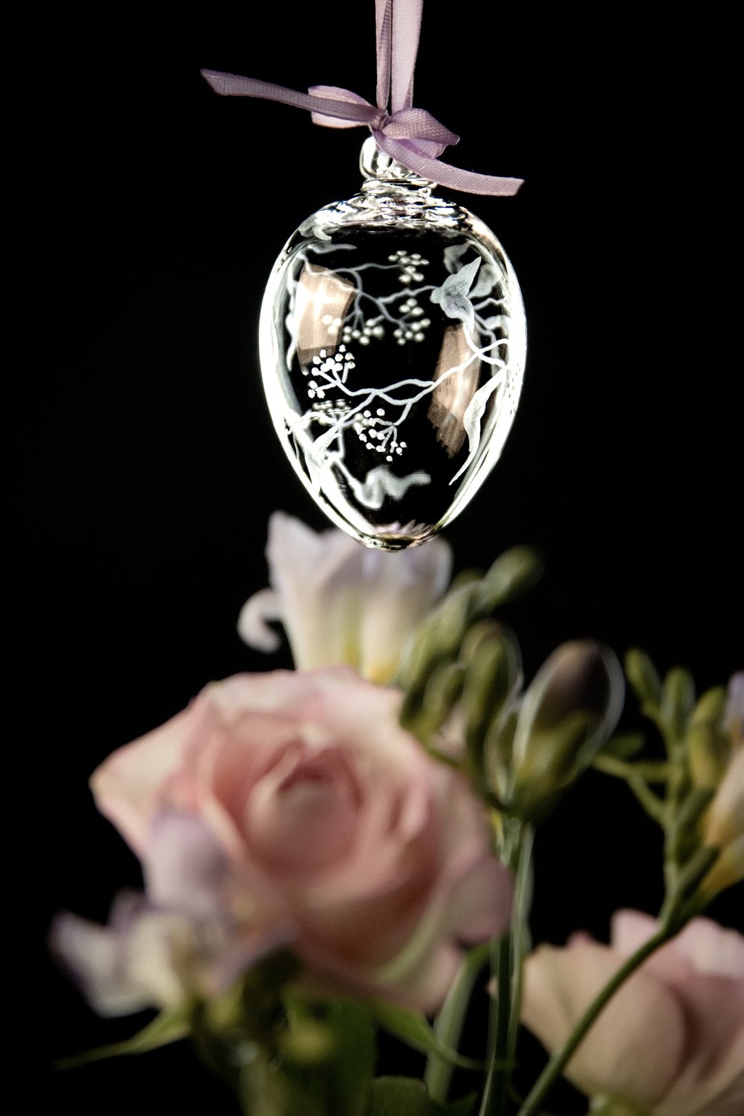 Přivítejte jaro s českými ručně foukanými vajíčky. Křišťálové vajíčko objímá ručně rytý motiv po celém obvod, který podtrhne jarní atmosféru v každé domácnosti.