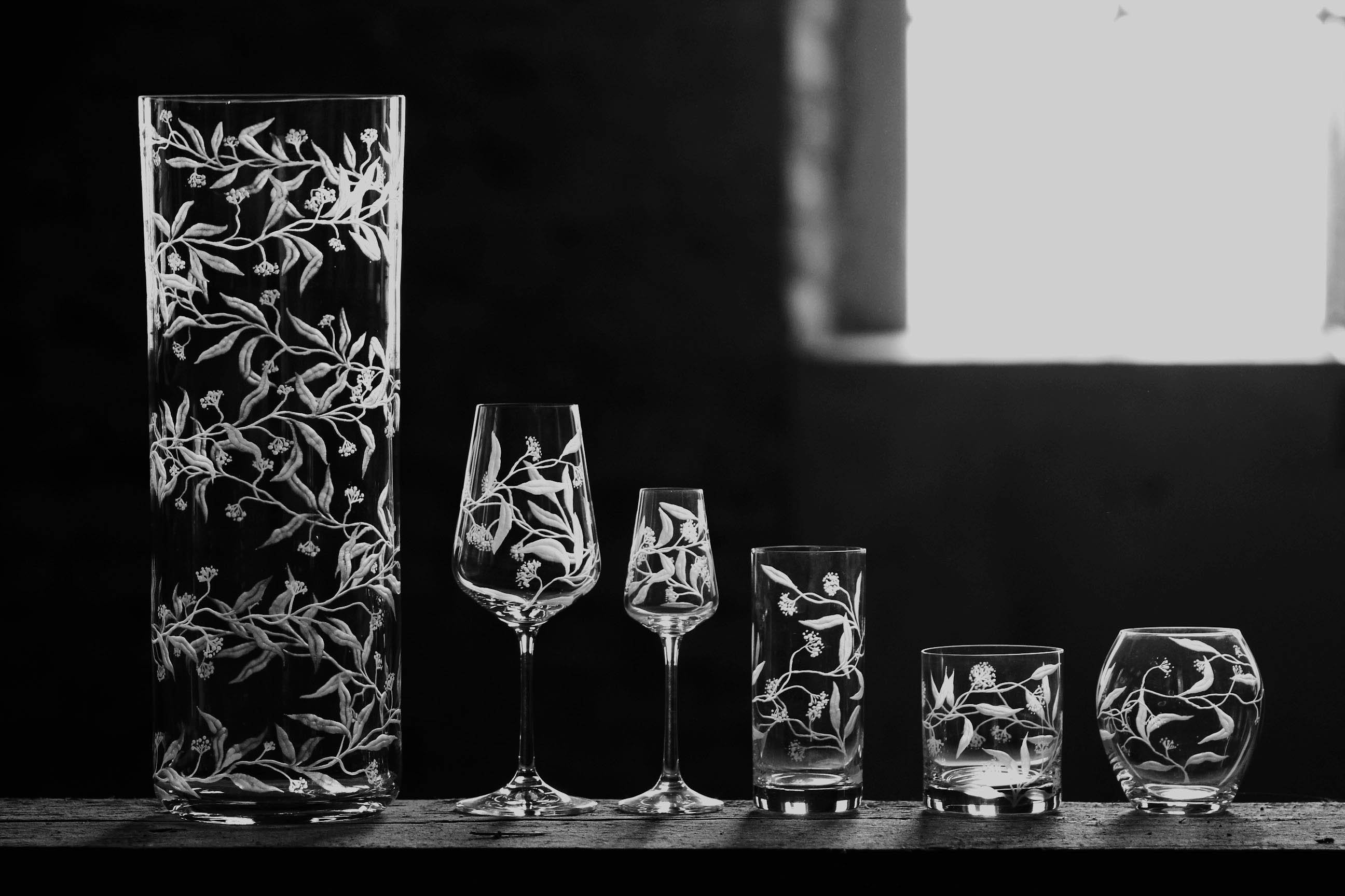 Objem a tvar předurčuje danou sklenici k pití likéru. Celý rytý kalich jako kdyby svírala sama příroda. Toto propojení ruční práce se sklem s unikátním designem dodá Vašemu stolování tu pravou doposud chybějící jiskru.