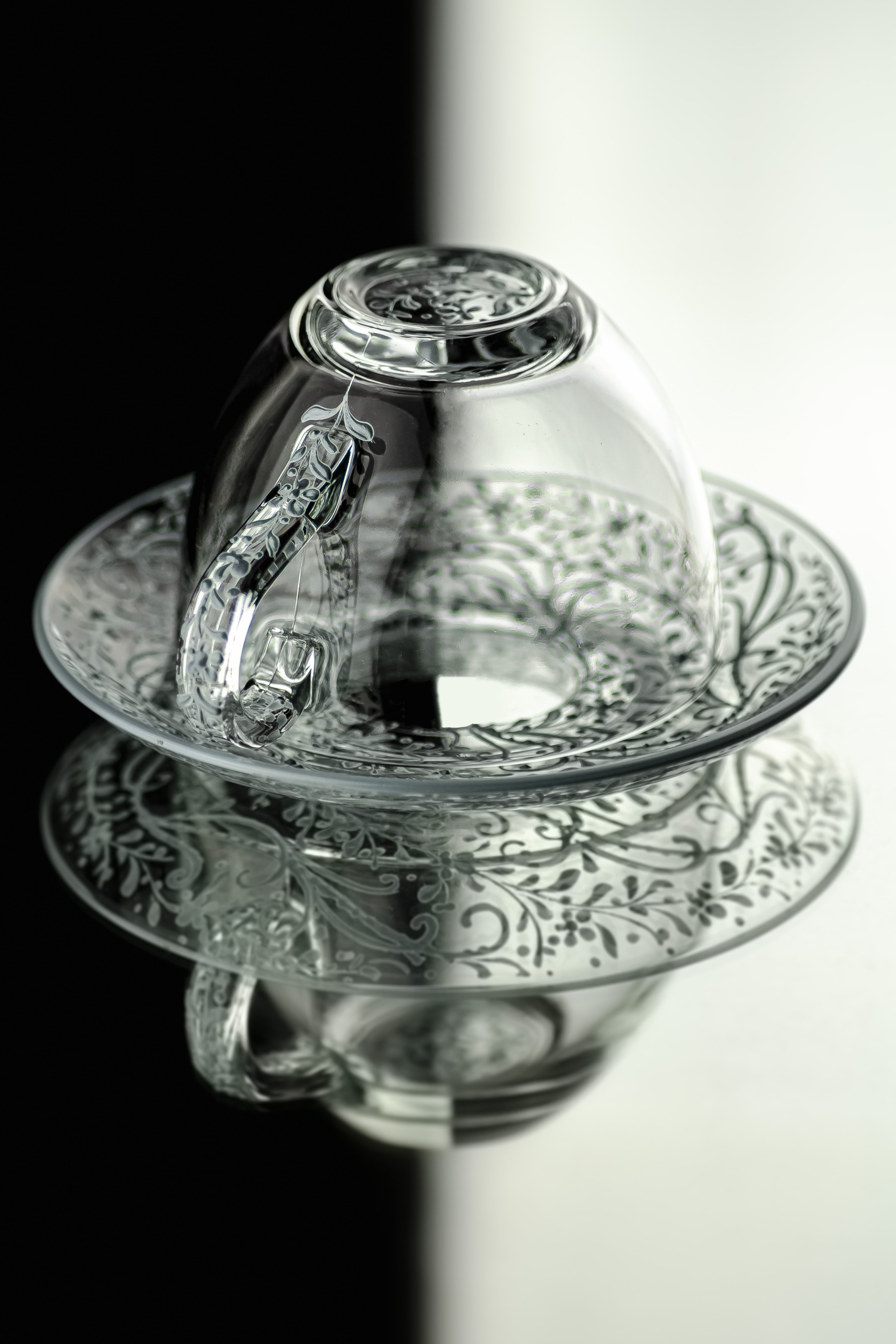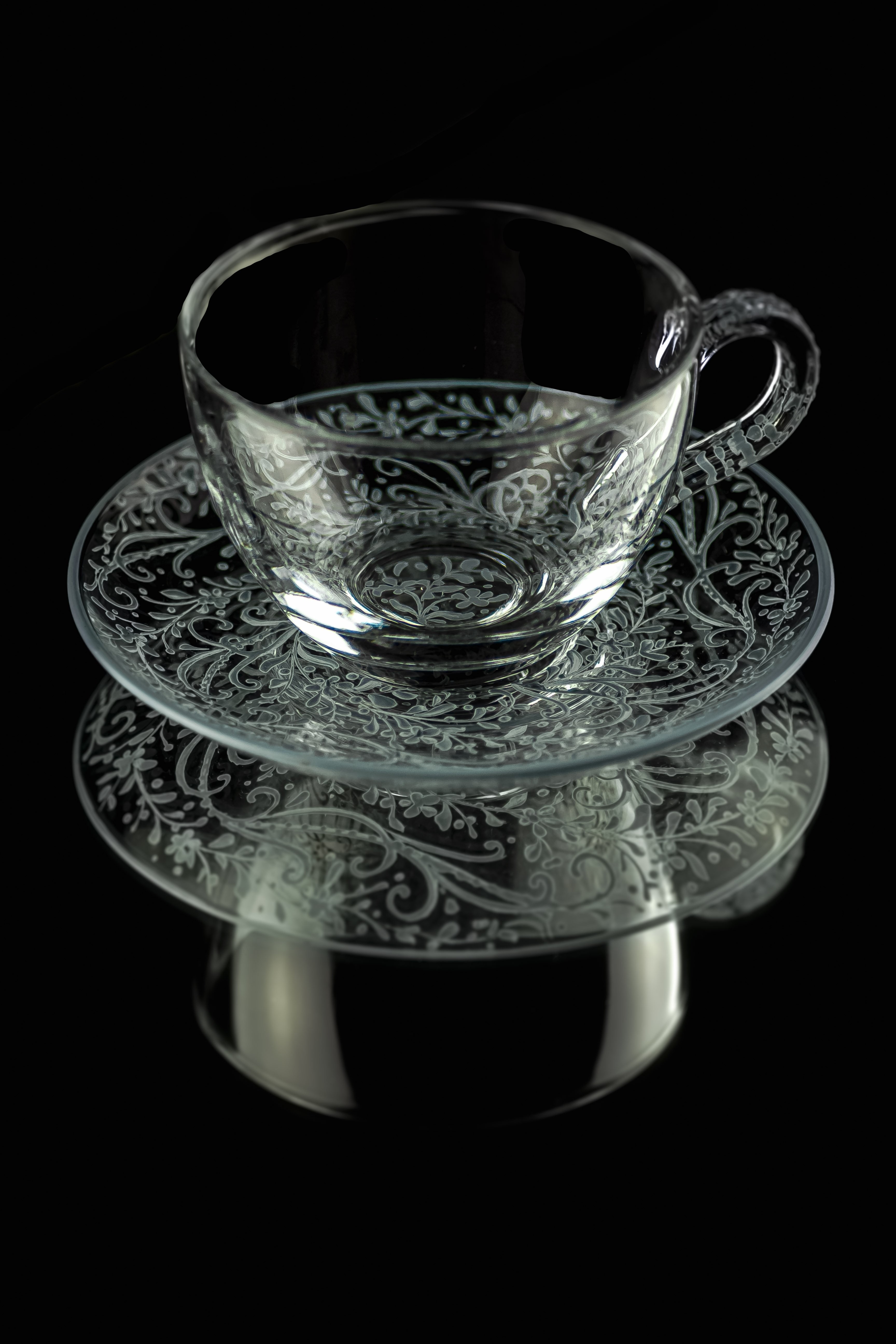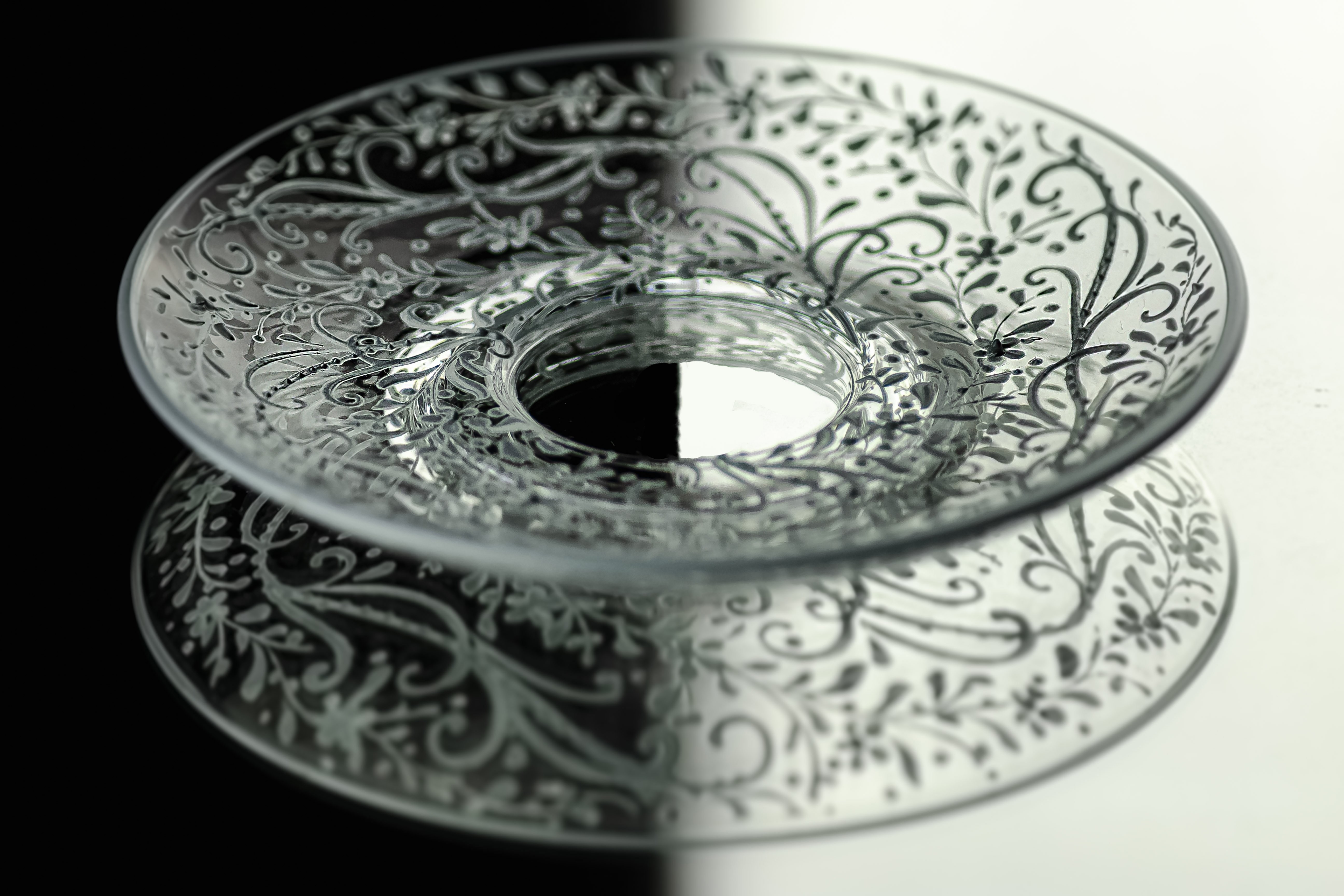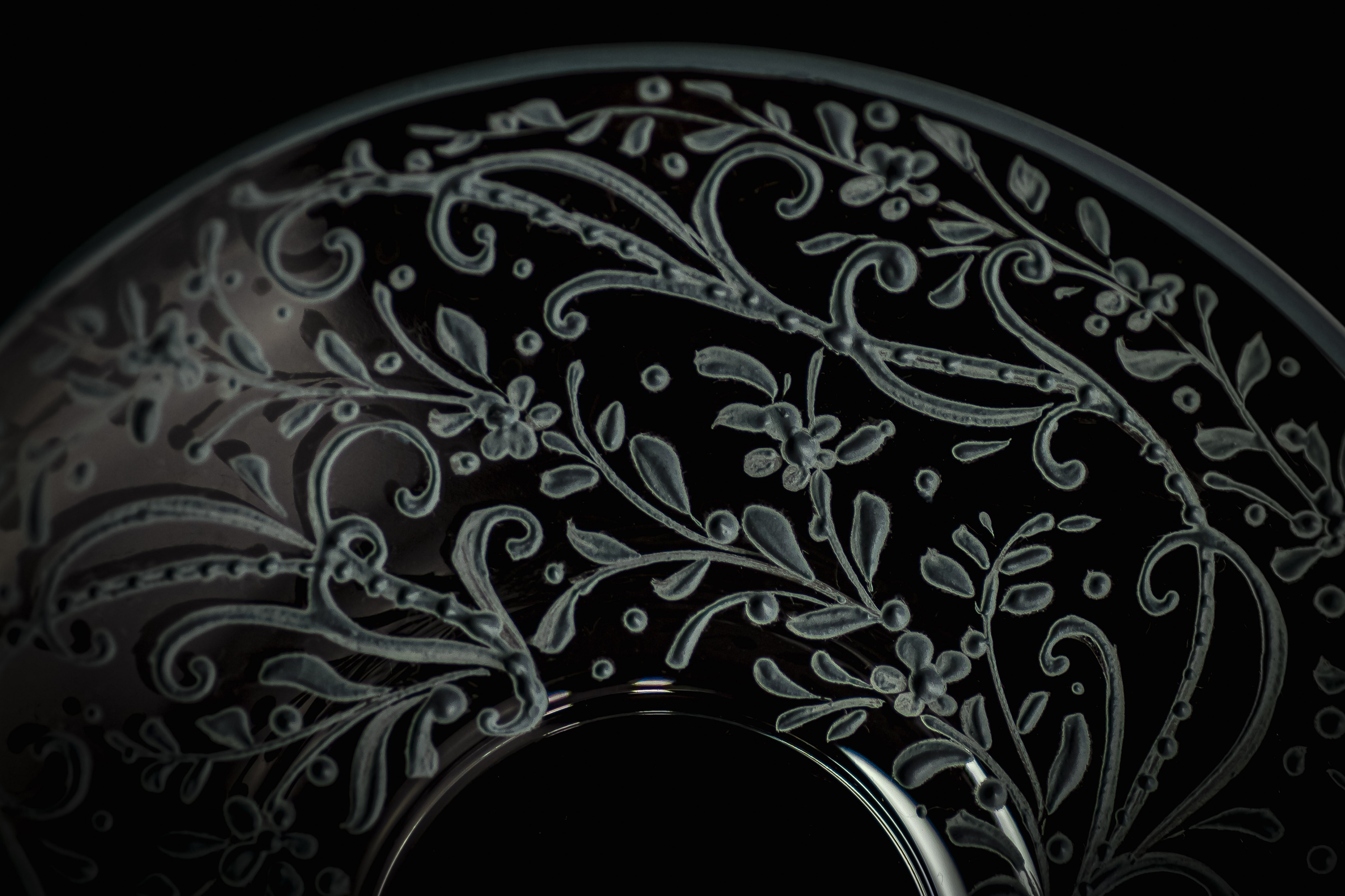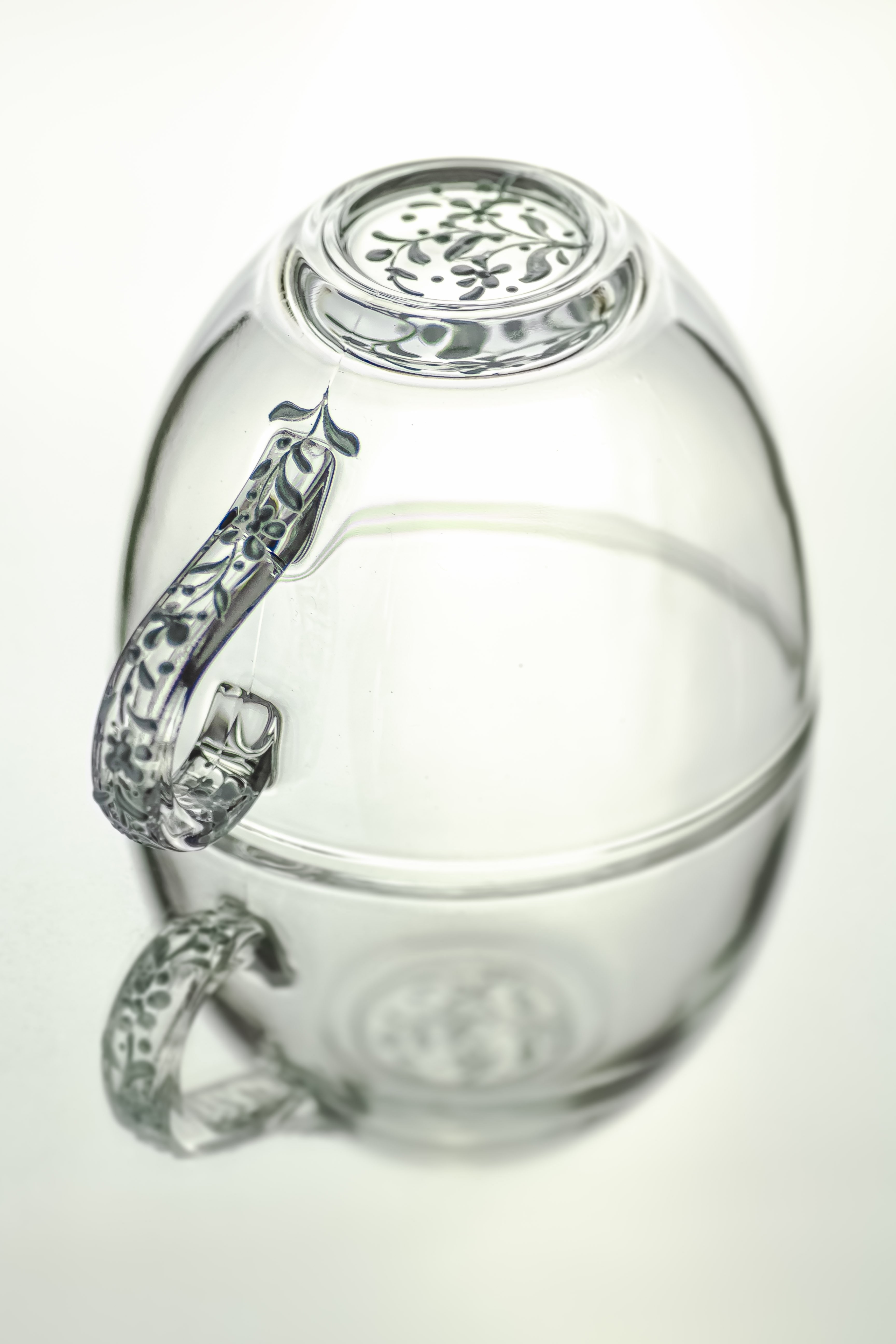 Sklo: Čiré, Ručně malované, Bezolovnatý český křišťál, Vysoký smalt