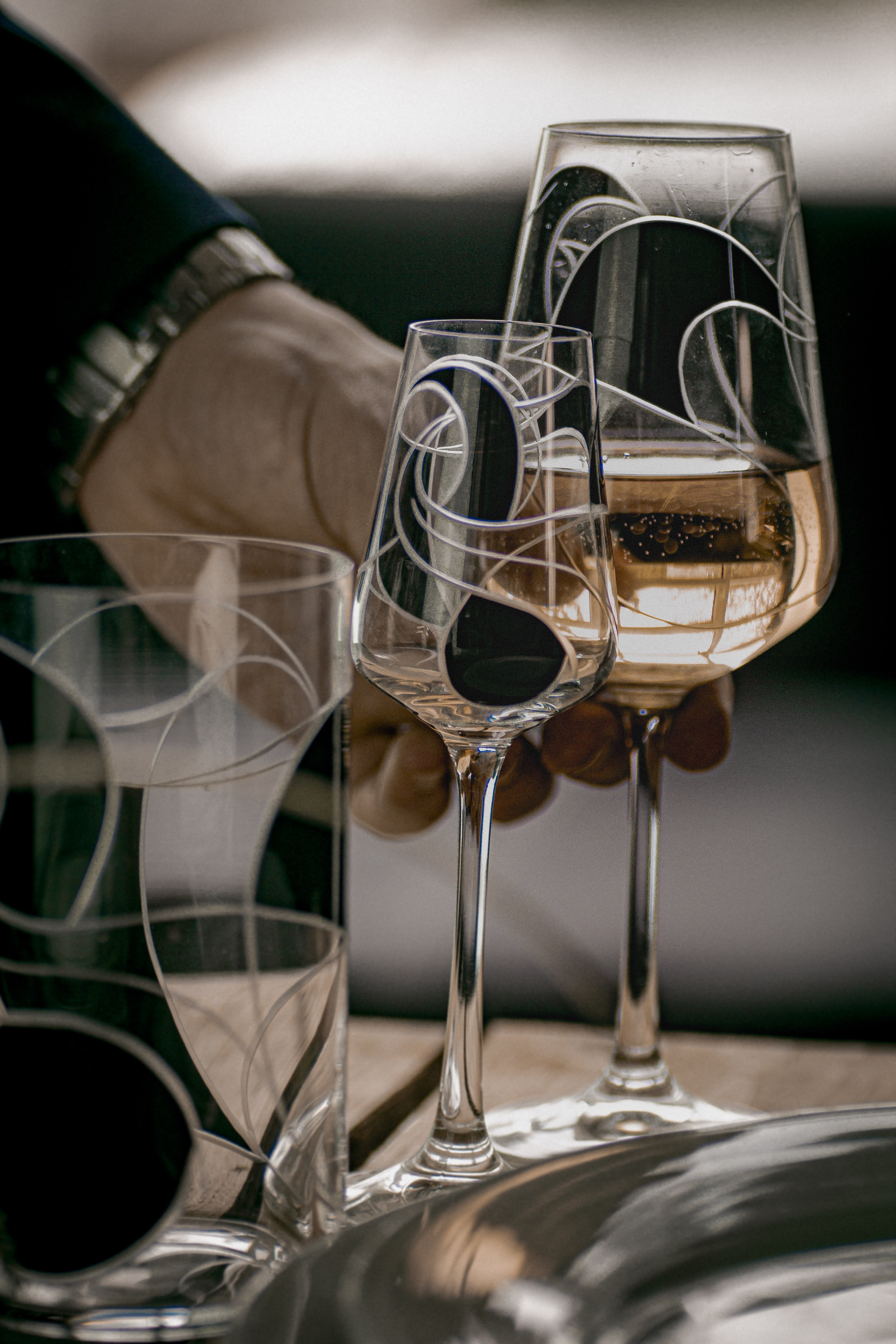 Sklo: Čiré, Barevné, Ručně ryté, Bezolovnatý český křišťál