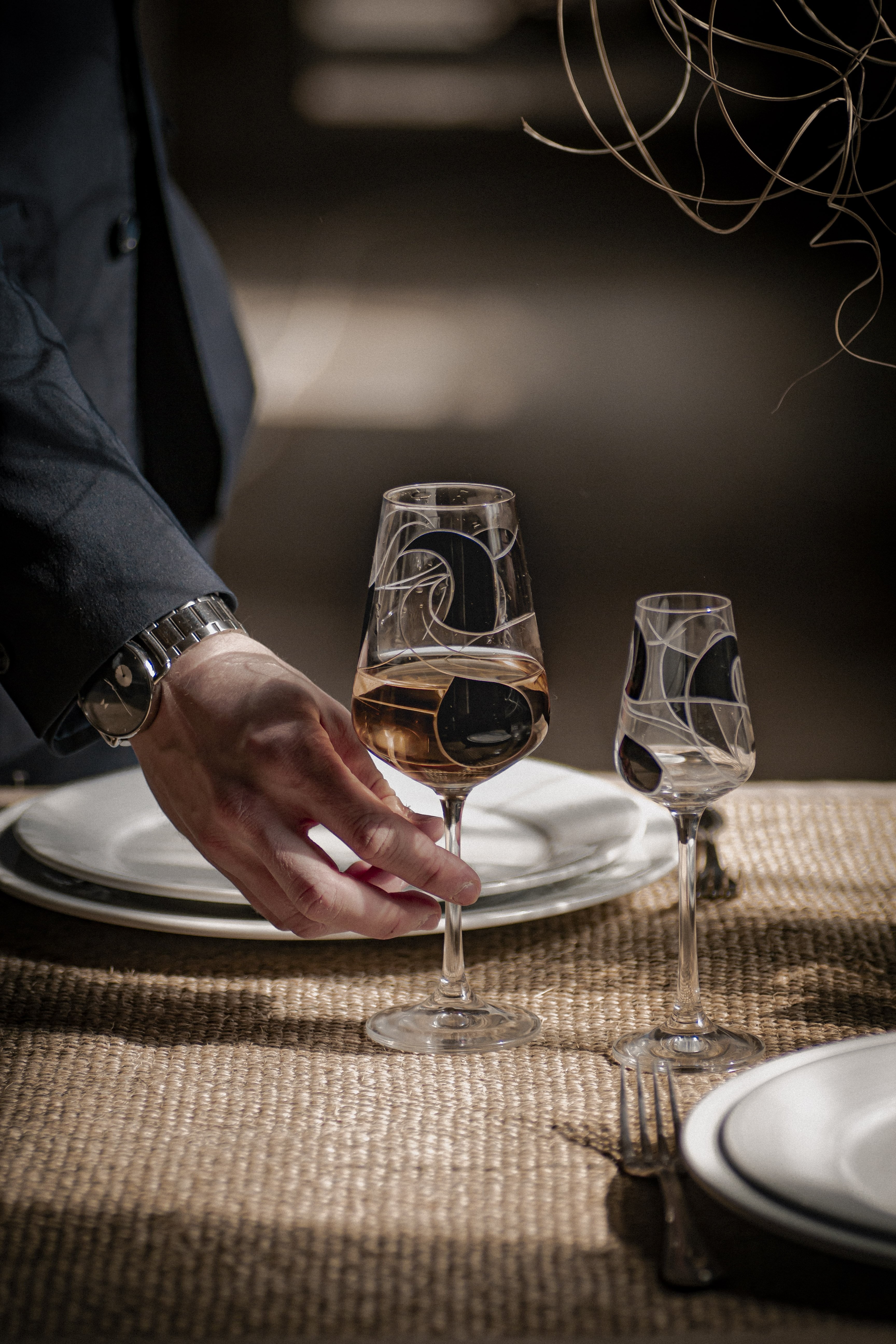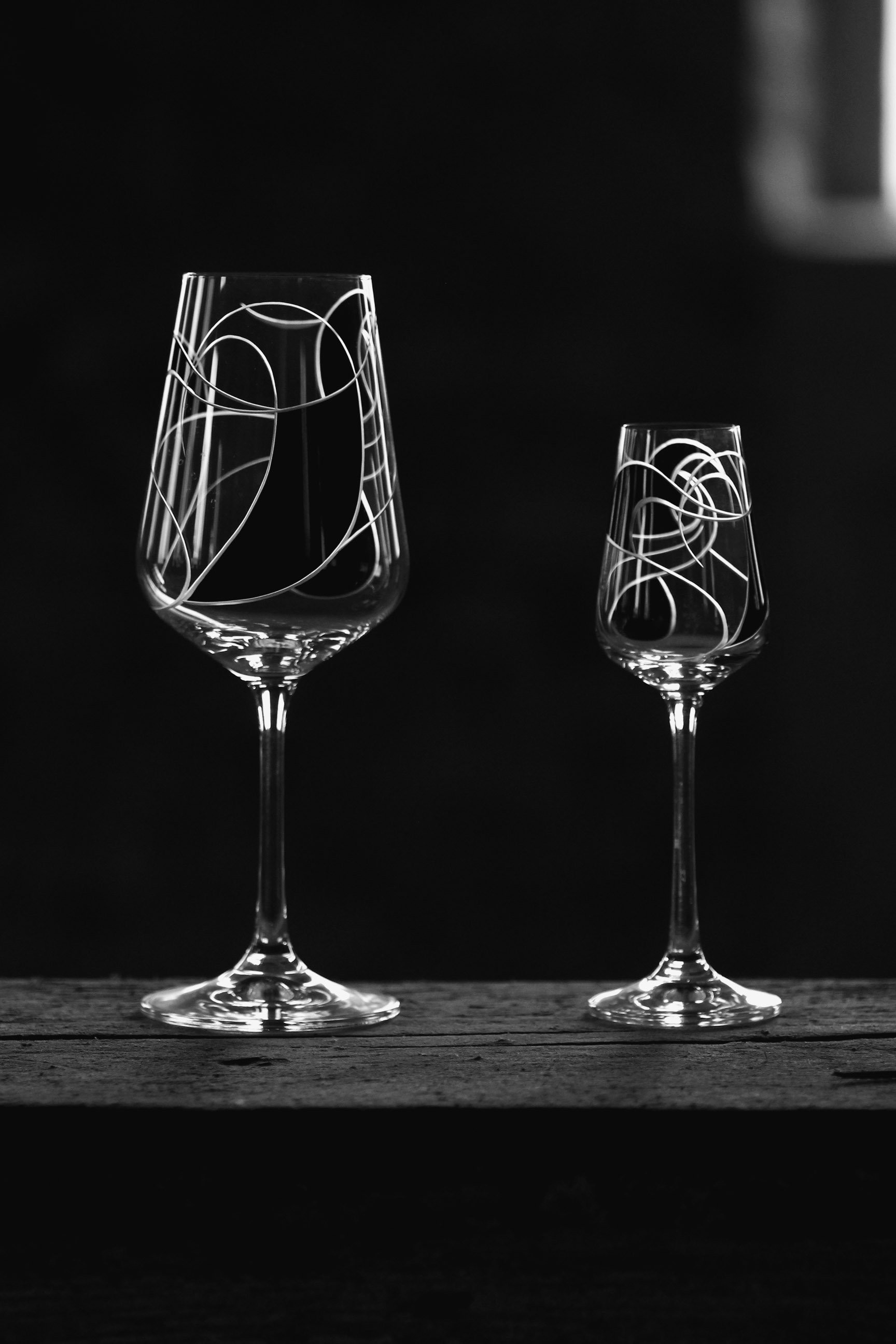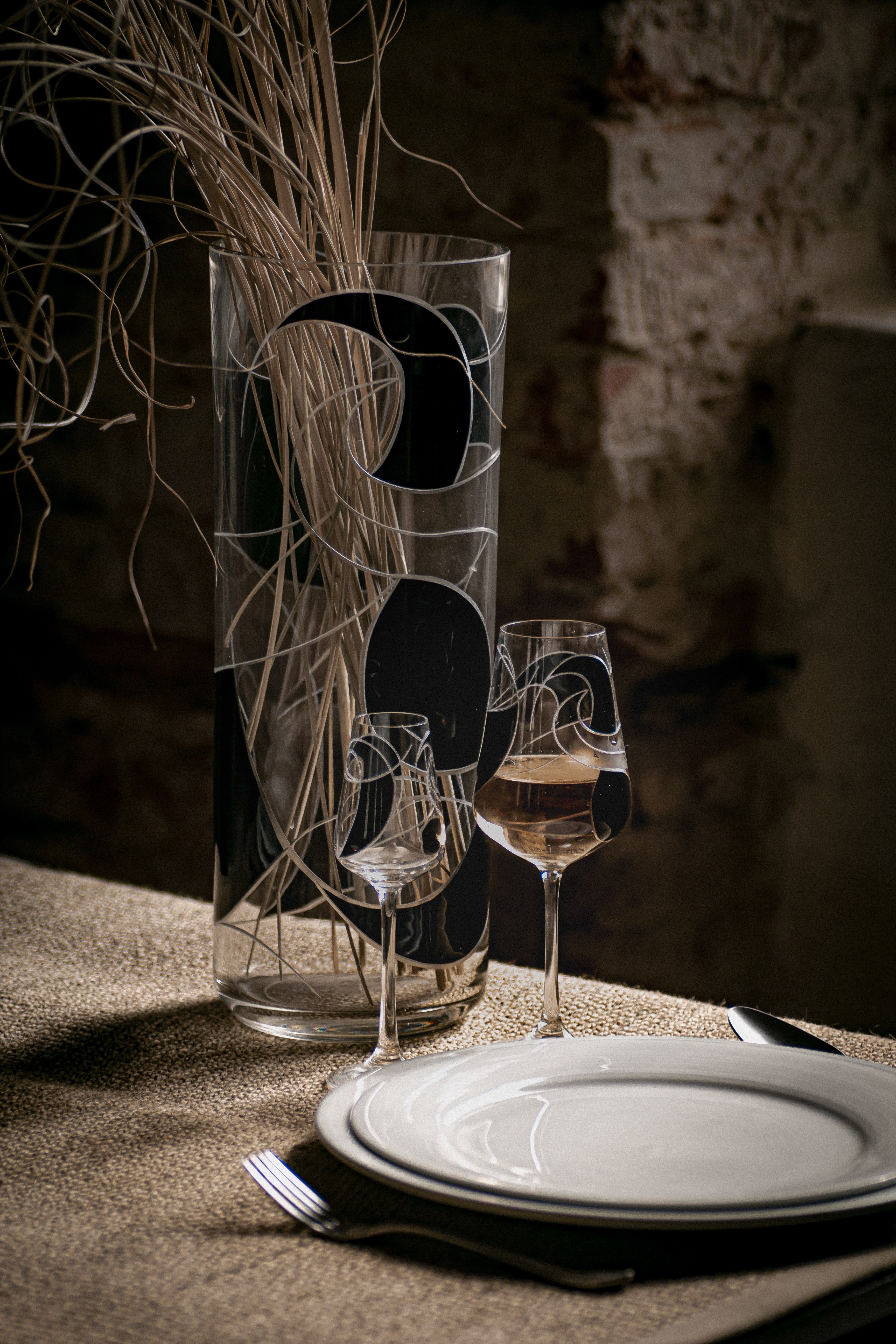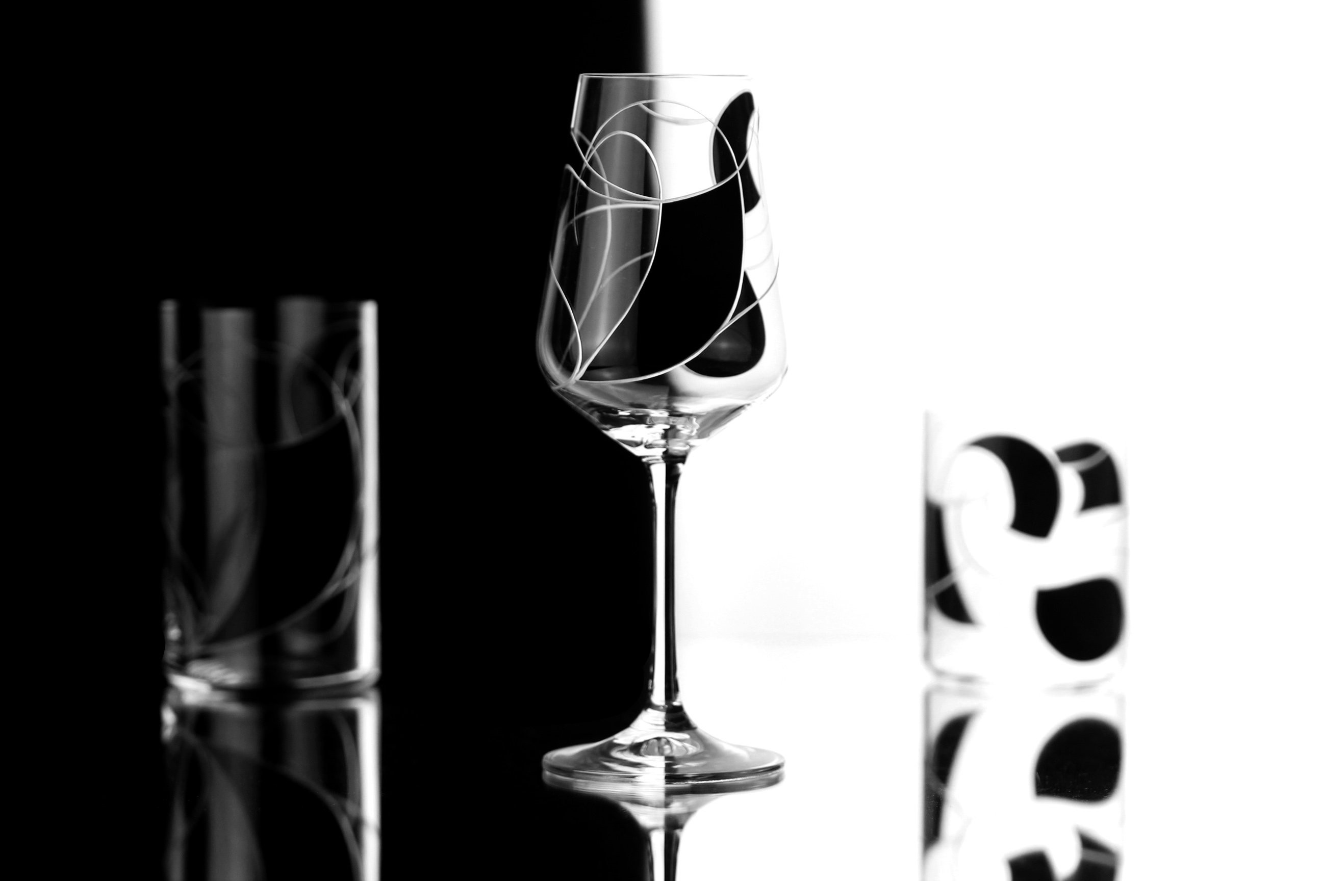 Sklenice na červené víno je součástí série Shard, která stojí za povšimnutí a je k sehnání i v jiných barvách a velikostech. Atypické zkrášlení čirého skla pomocí ruční rytecké práce doplněné o černé barevné úlomky motivu zaručeně oživí Váš stůl.