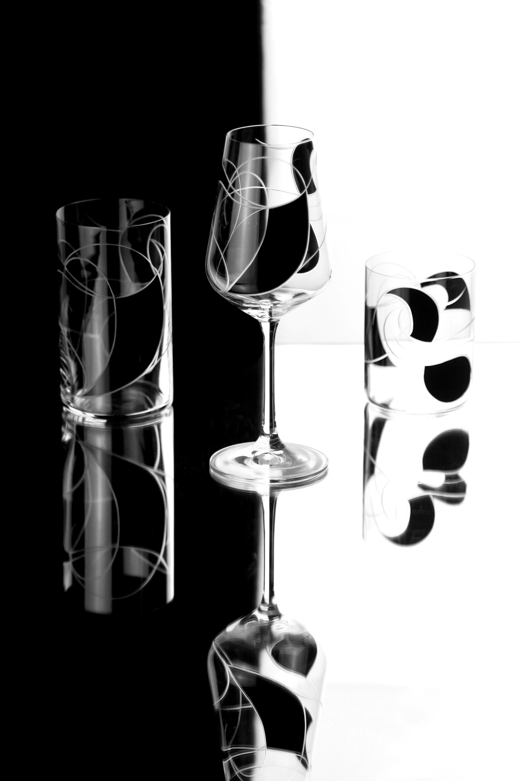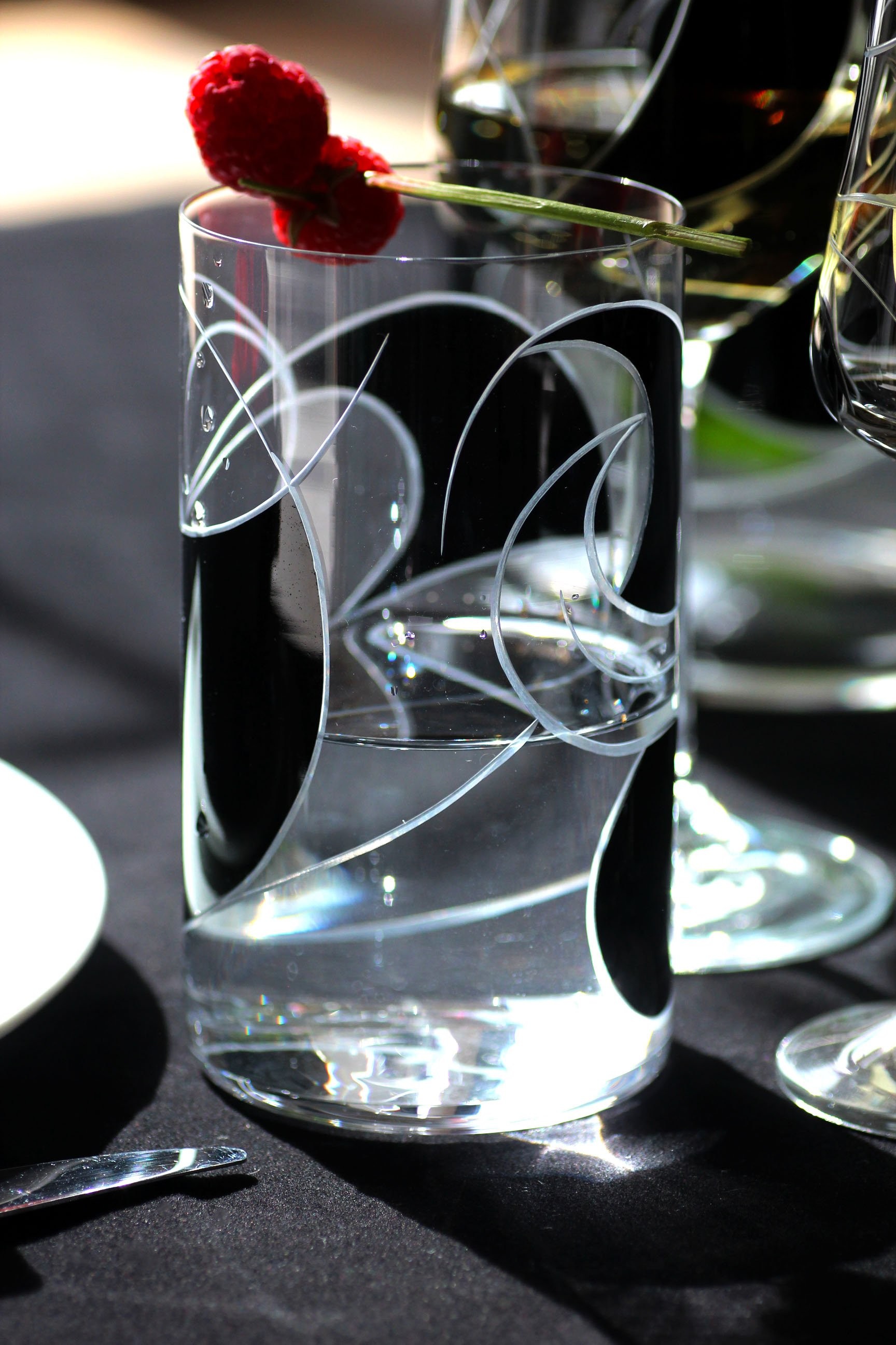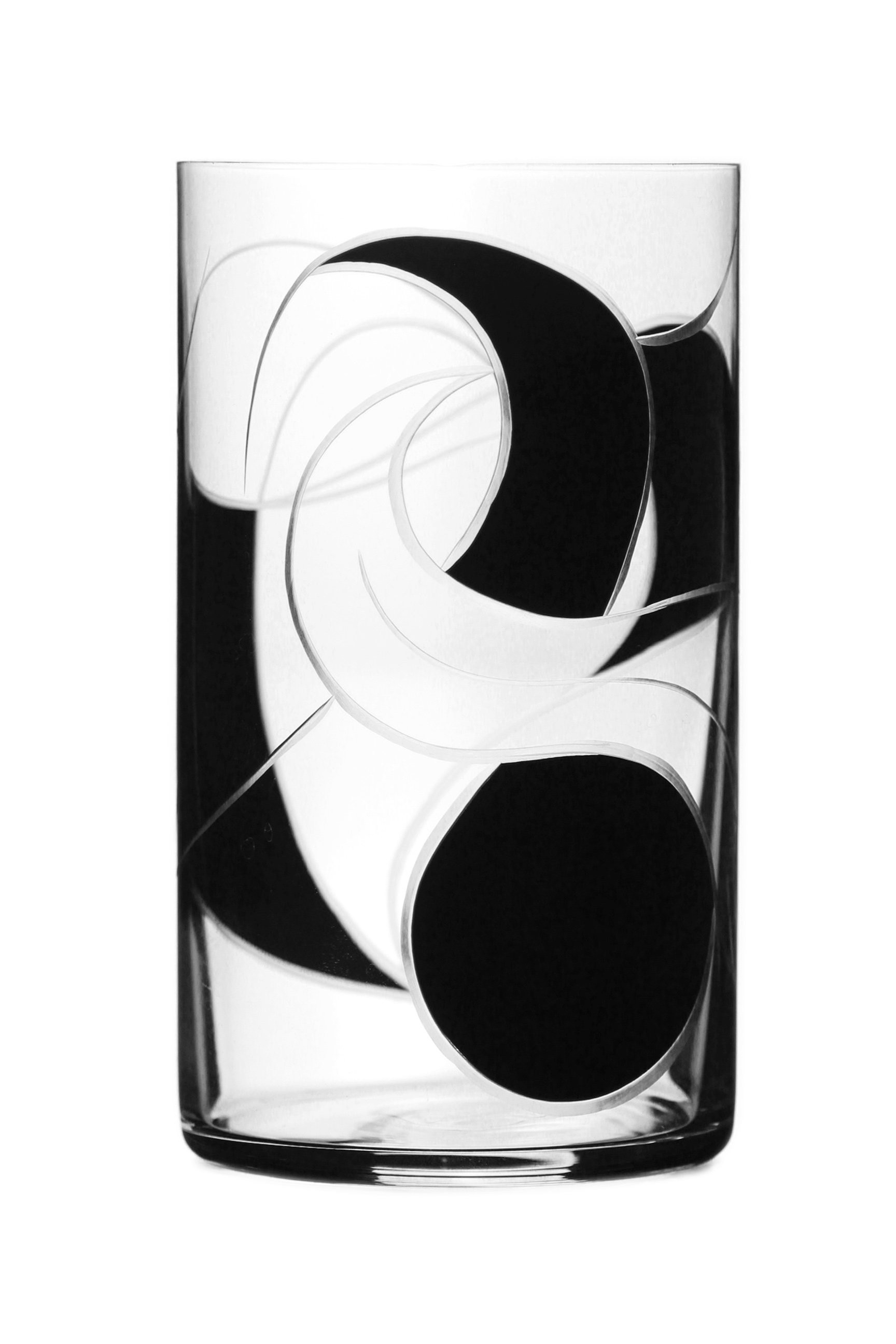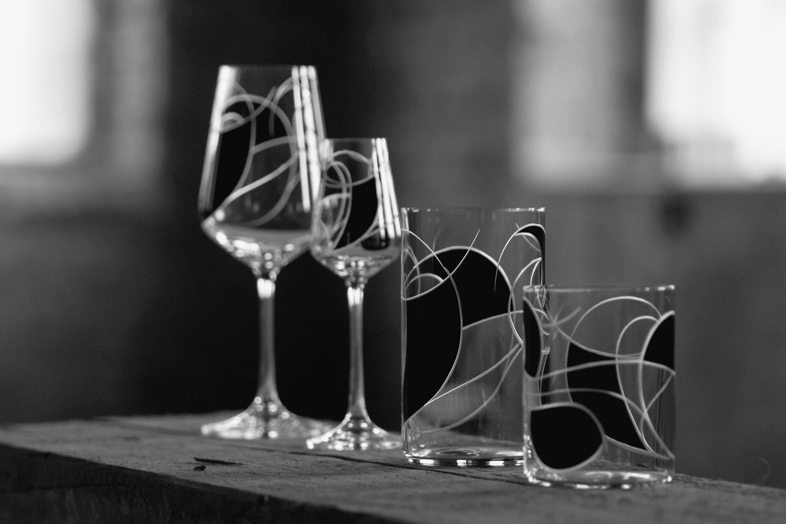 Sklenice na vodu je součástí série Shard, která stojí za povšimnutí a je k sehnání i v jiných barvách a velikostech. Atypické zkrášlení čirého skla pomocí ruční rytecké práce doplněné o černé barevné úlomky motivu zaručeně oživí Váš stůl.