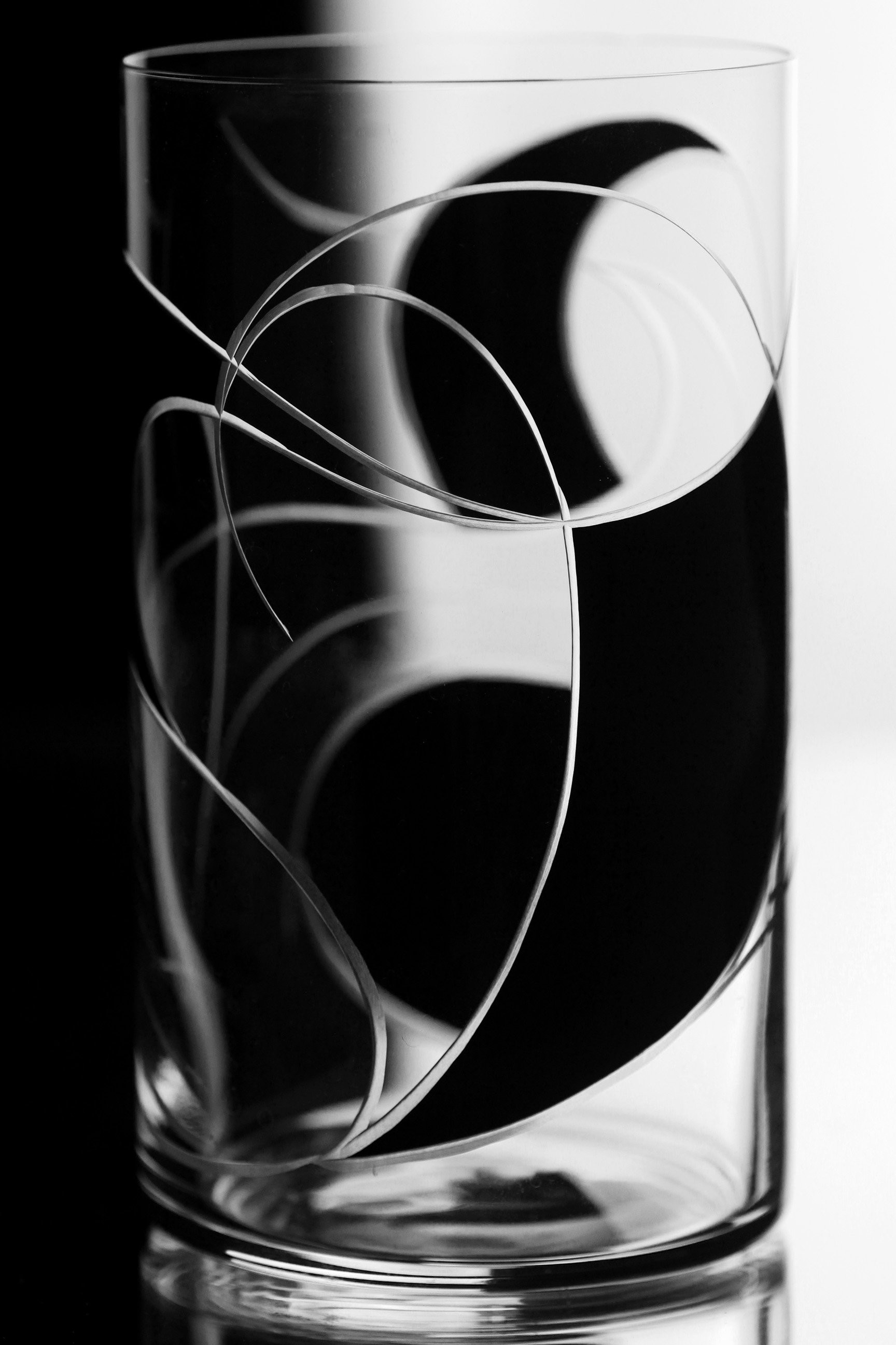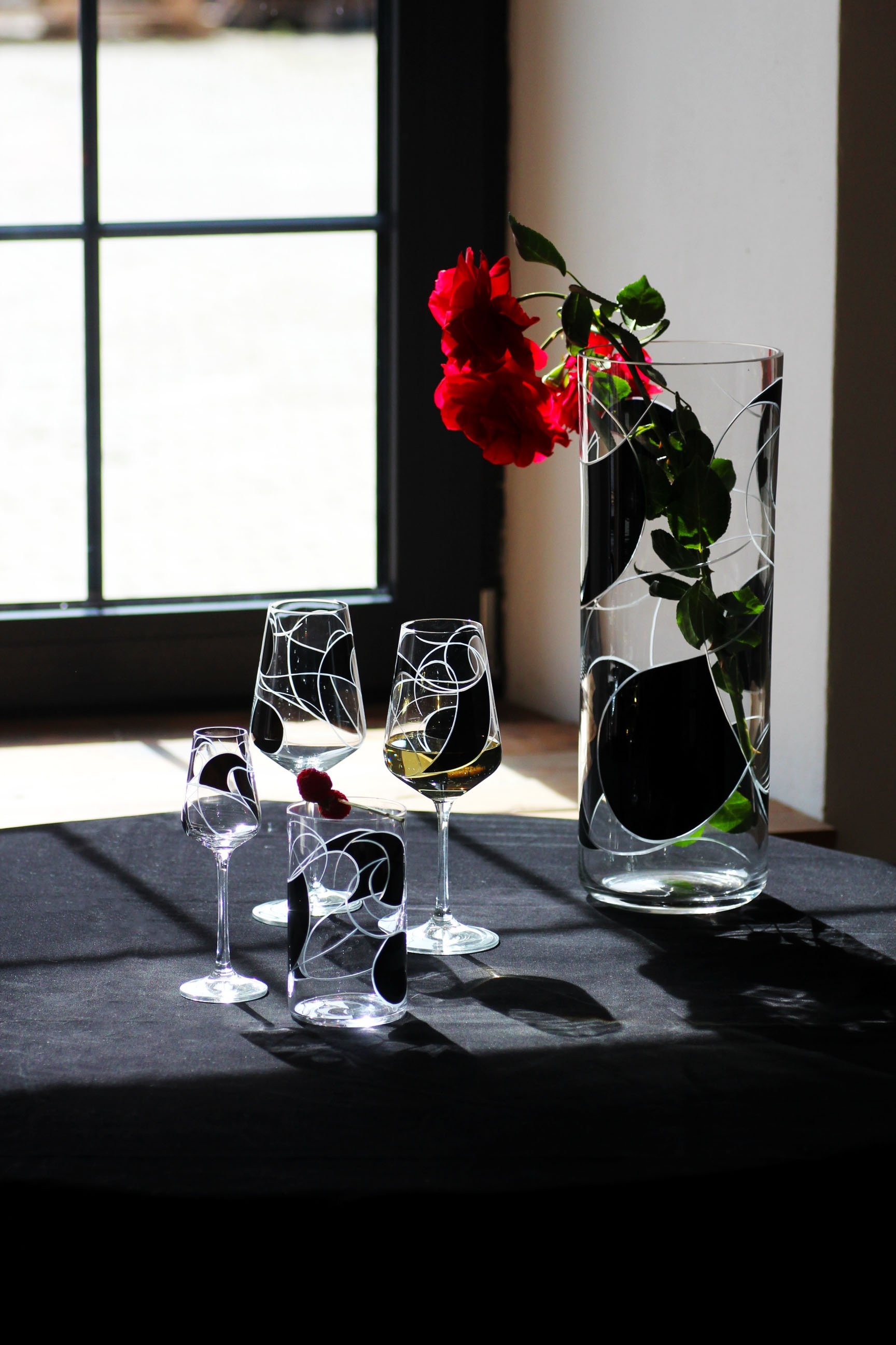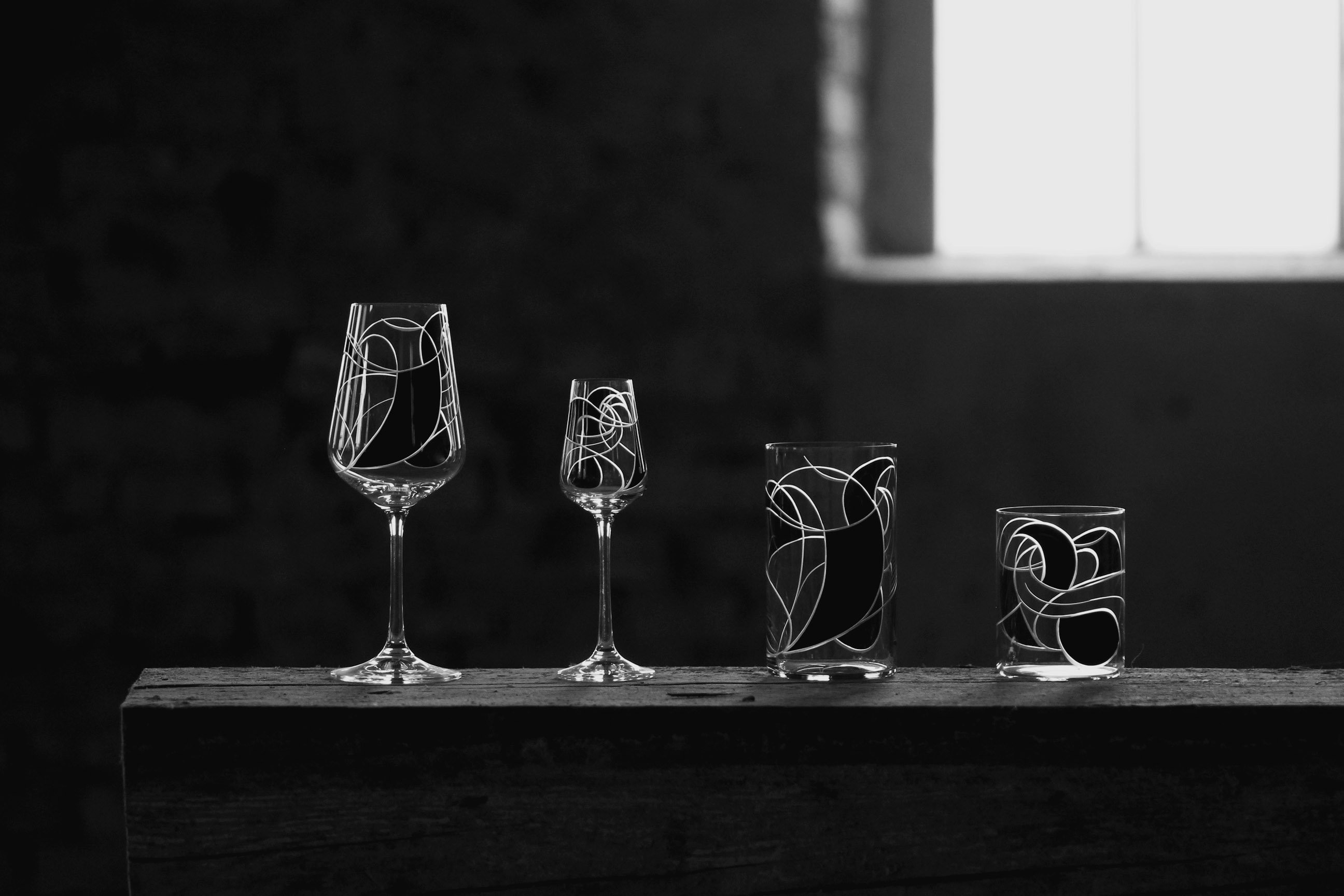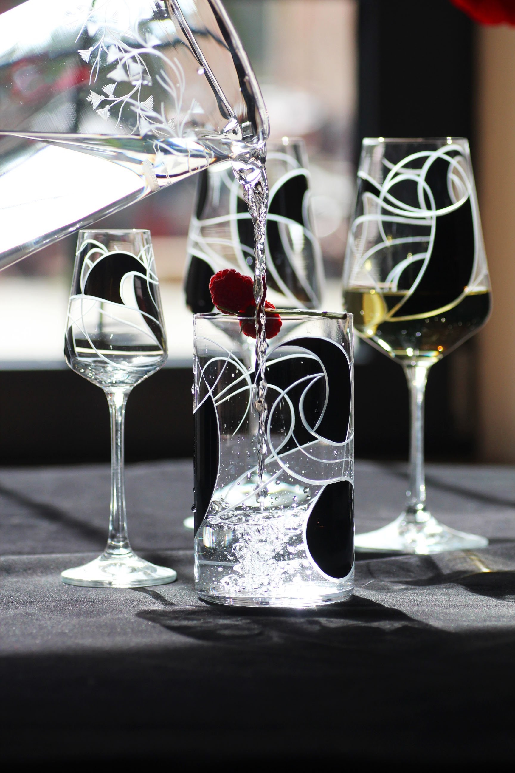 Sklenice na vodu je součástí série Shard, která stojí za povšimnutí a je k sehnání i v jiných barvách a velikostech. Atypické zkrášlení čirého skla pomocí ruční rytecké práce doplněné o černé barevné úlomky motivu zaručeně oživí Váš stůl.