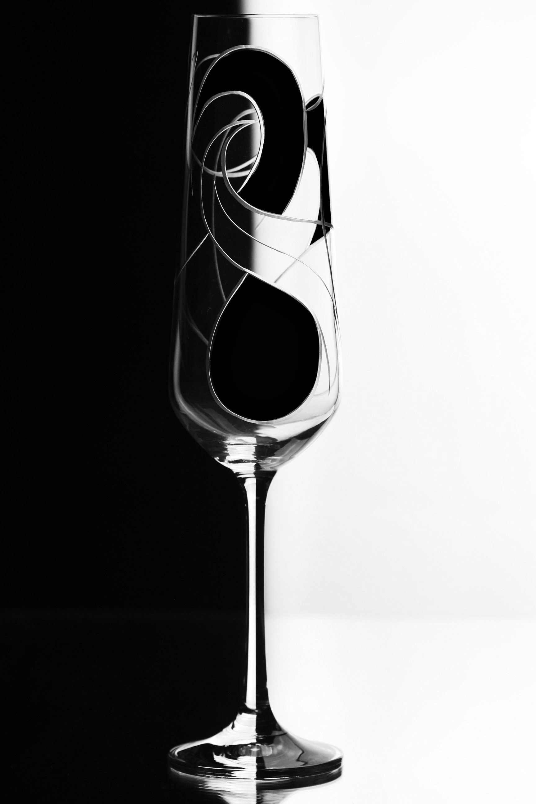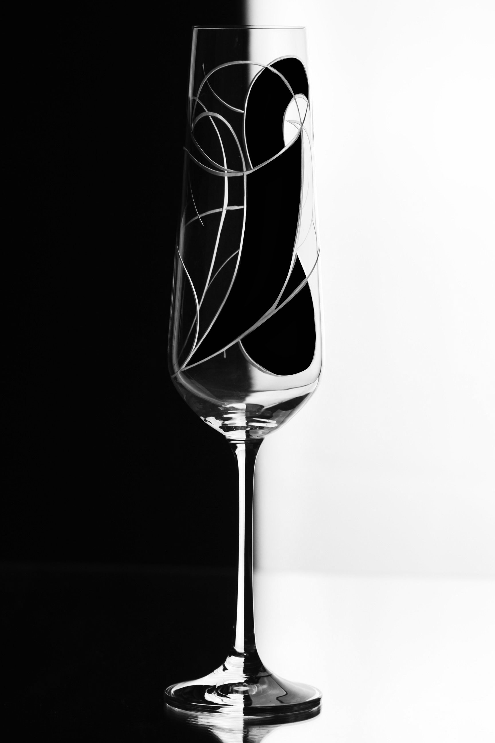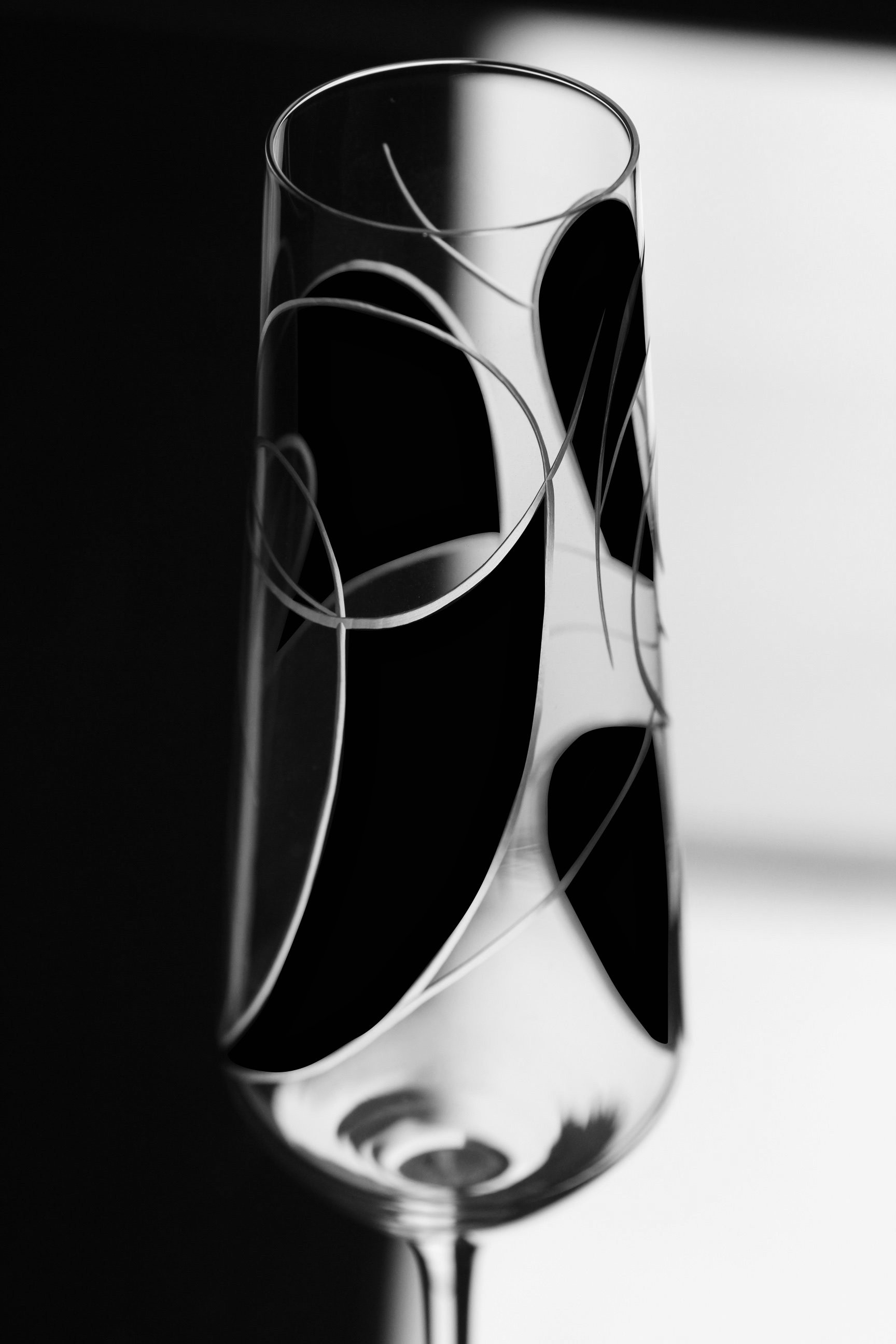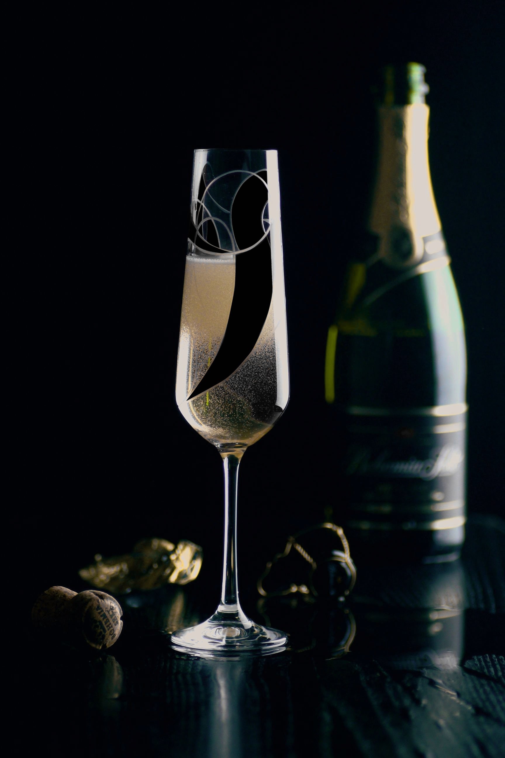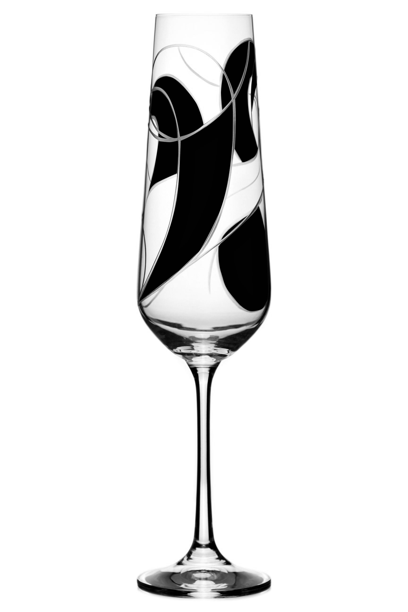 Sklenice na šampaňské je součástí série Shard, která stojí za povšimnutí a je k sehnání i v jiných barvách a velikostech. Atypické zkrášlení čirého skla pomocí ruční rytecké práce doplněné o černé barevné úlomky motivu zaručeně oživí Váš stůl.