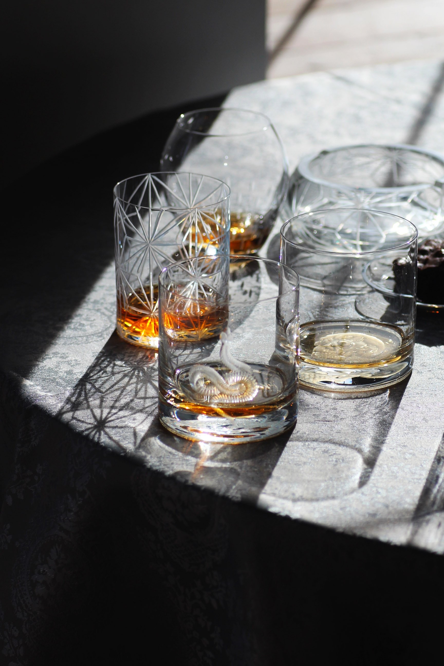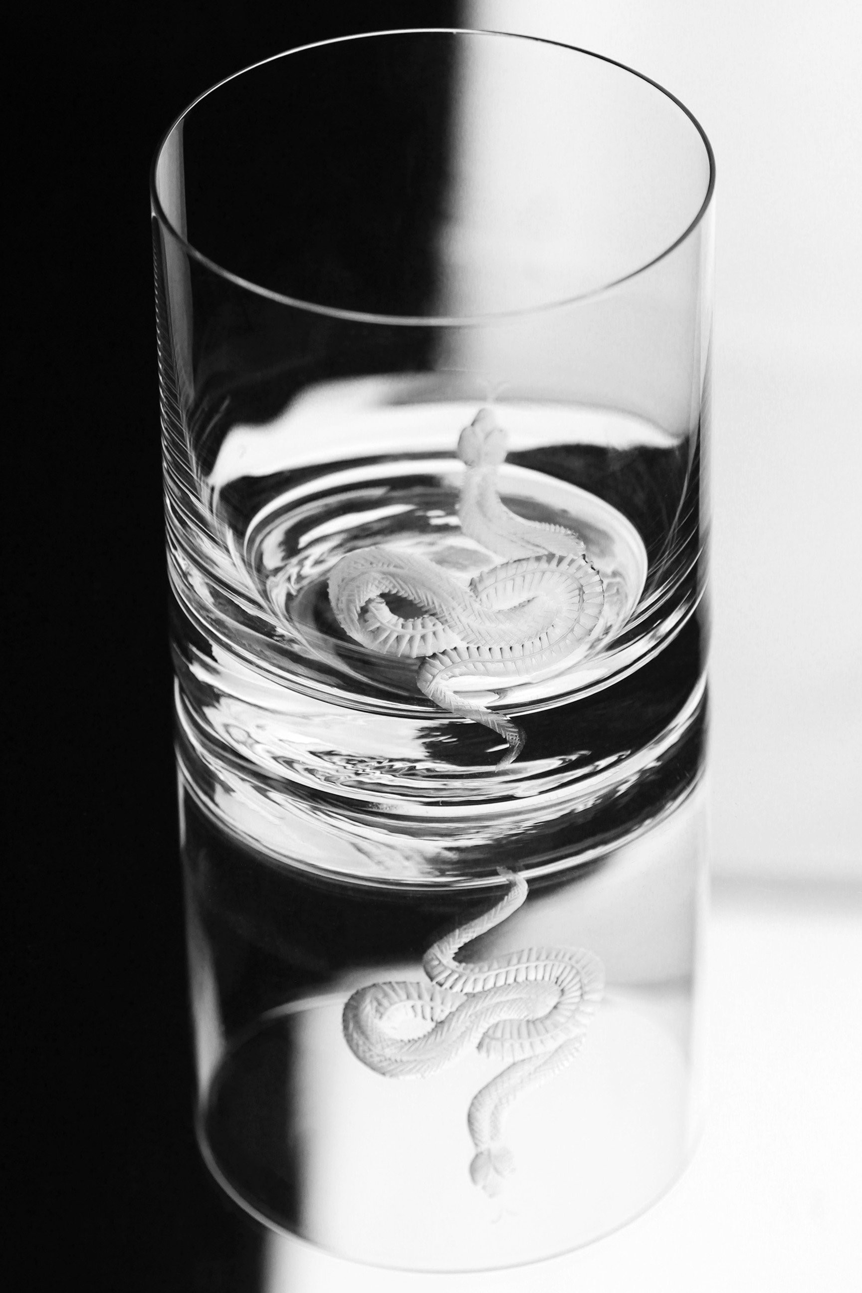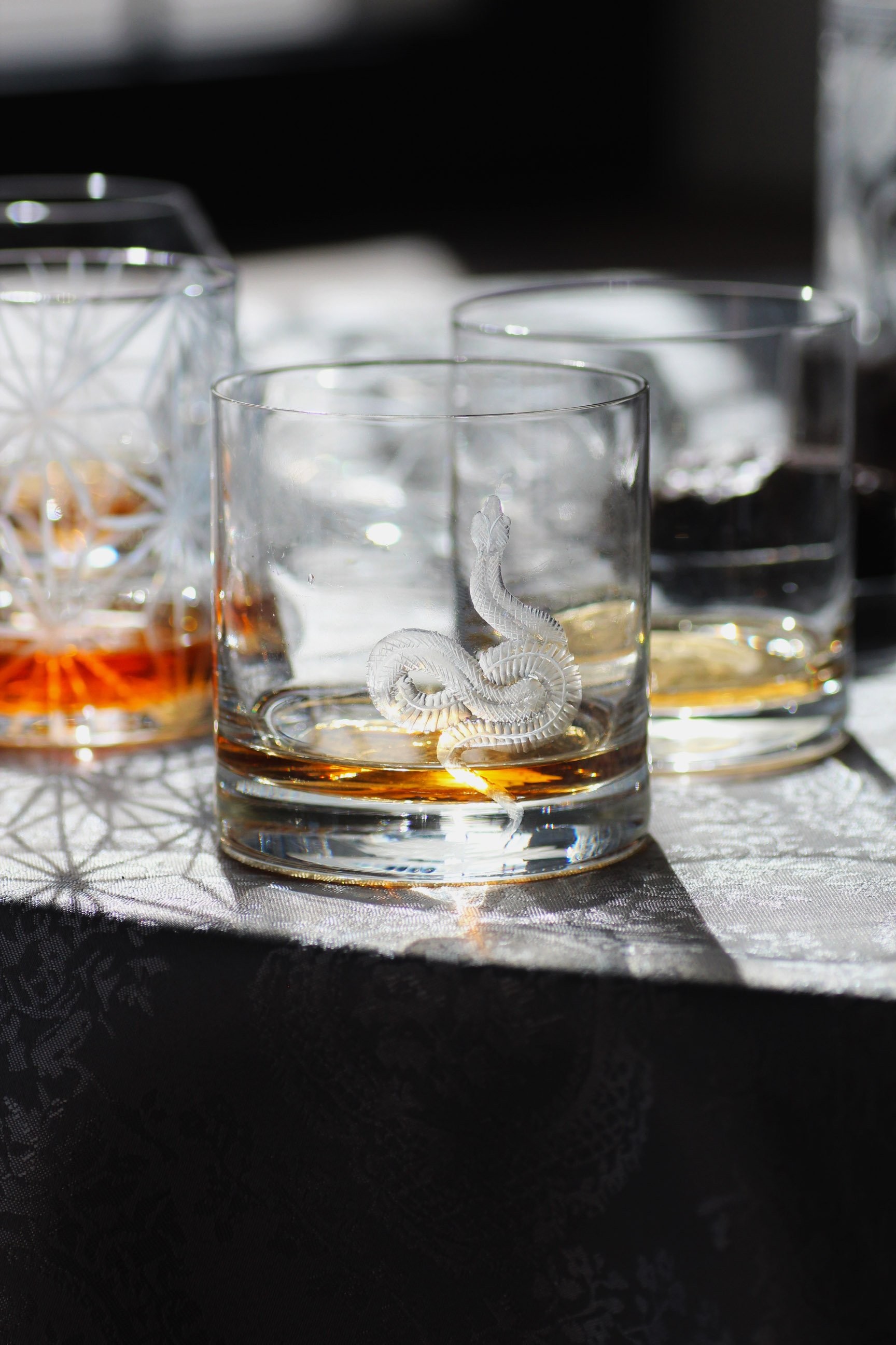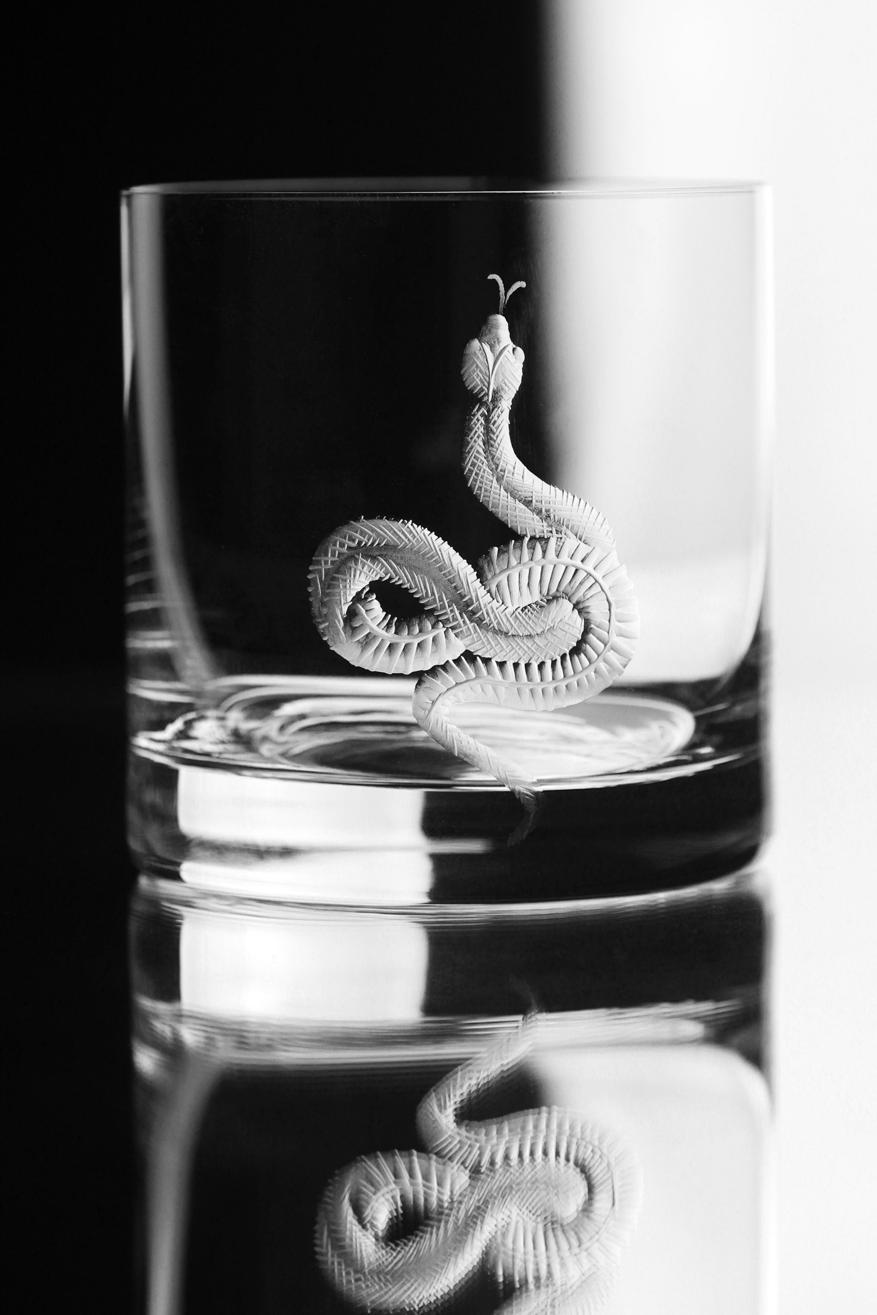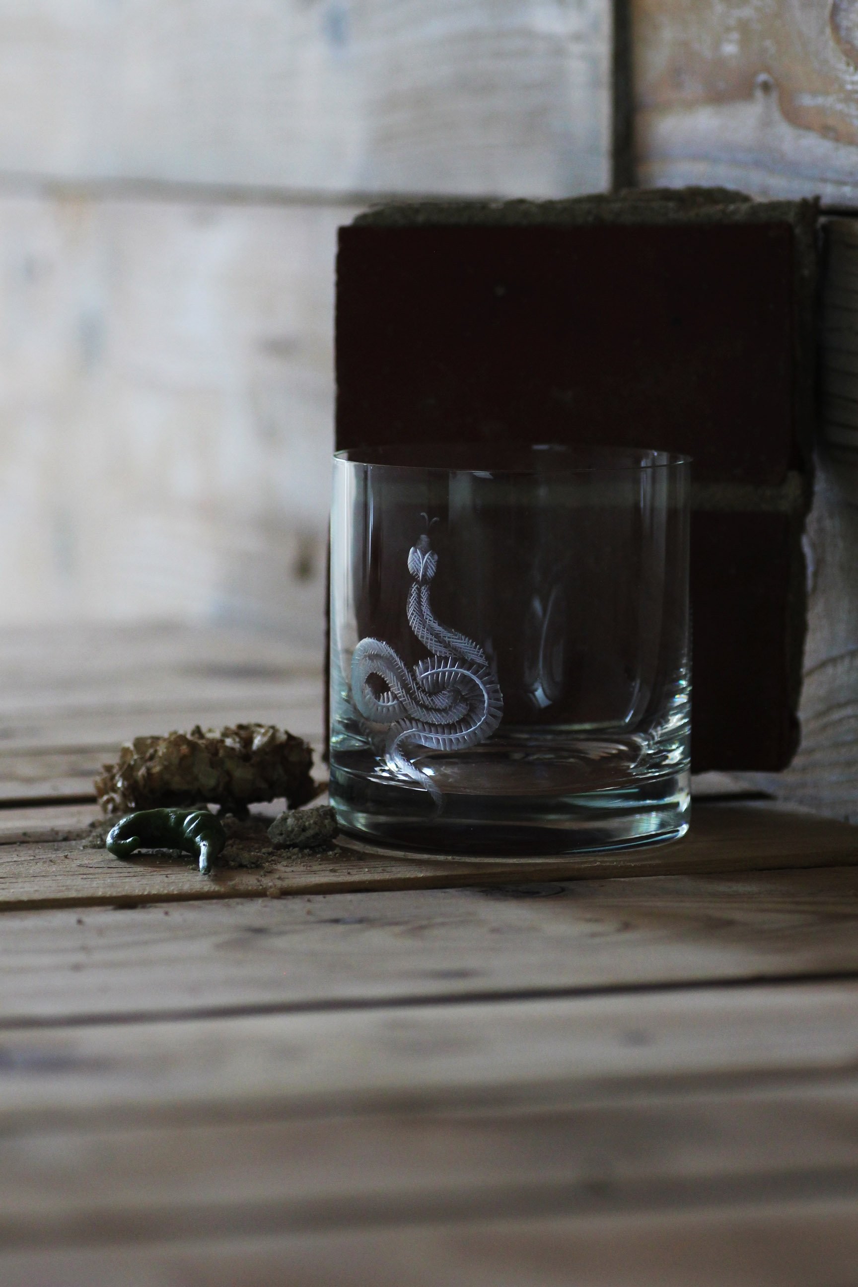 Tato moderní sklenice se pyšní silným dnem, rovným tvarem a ručně vyrytým hadem, který jí dodává elegantní nadřazenost a jedinečnost. Had je jedním z nejznámnějších a nejobávanějších plazů na světě, a proto si našel své místo v symbolice lidského strachu, ale i obdivu.