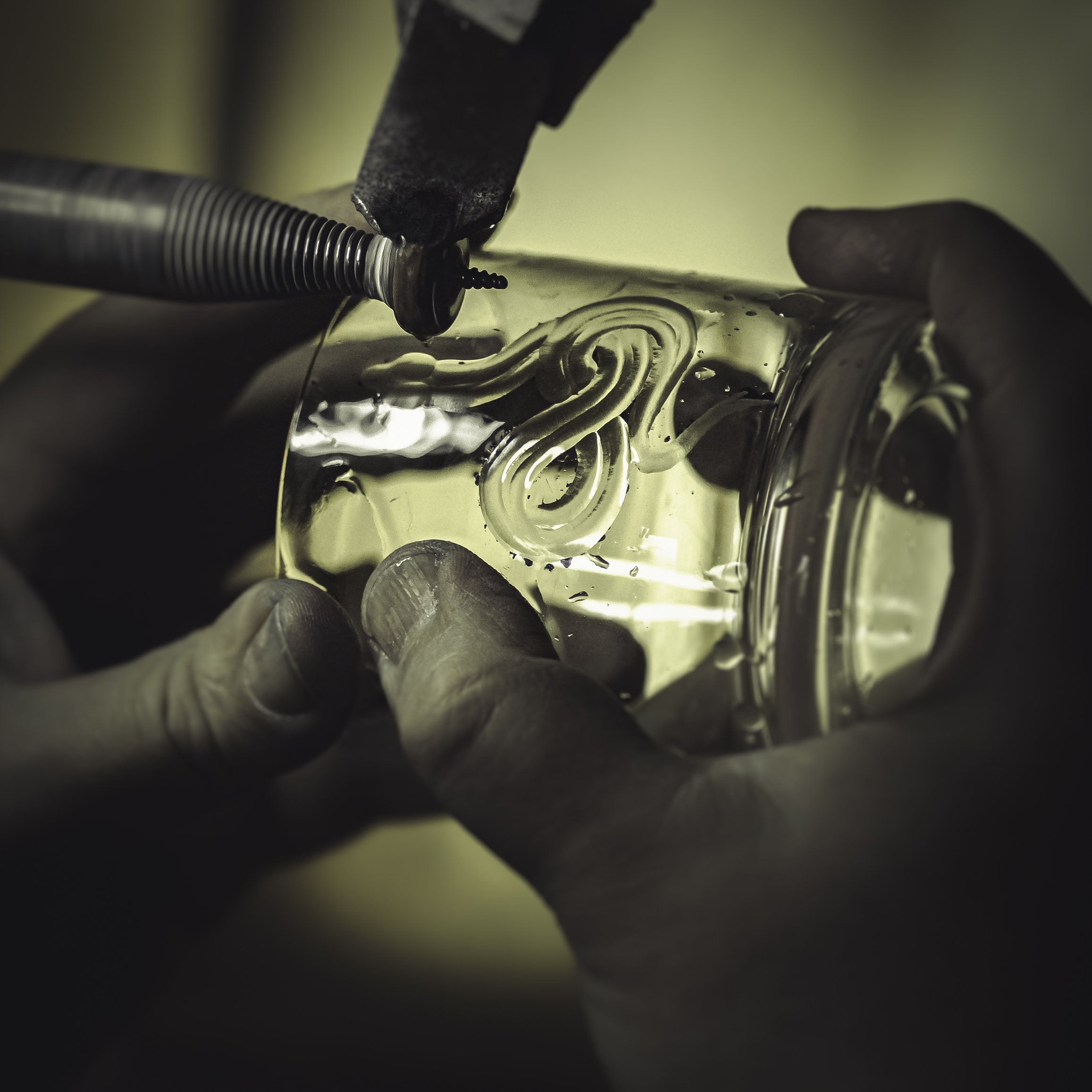 Sklo: Čiré, Ručně ryté, Bezolovnatý český křišťál