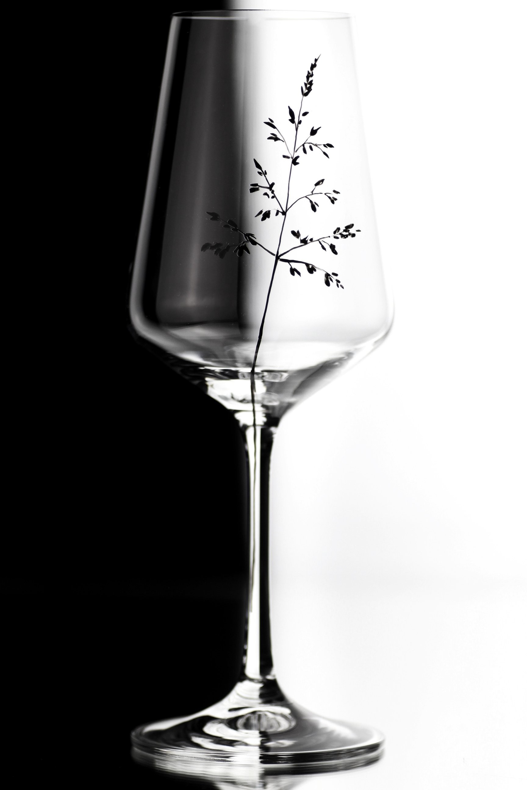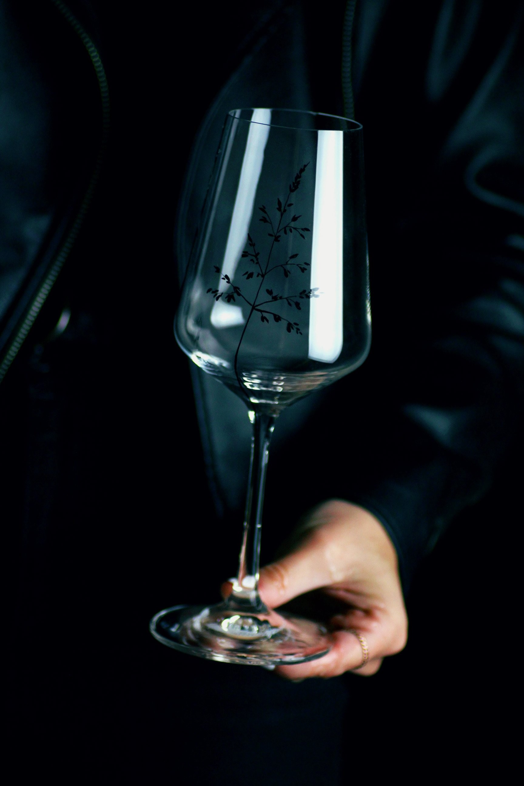 V jednoduchosti je krása. Tento moderní a přírodní design je celý ručně malovaný až do posledního lístečku a obzvláštní jakýkoliv prostřený stůl i prožitek z výborného vína.