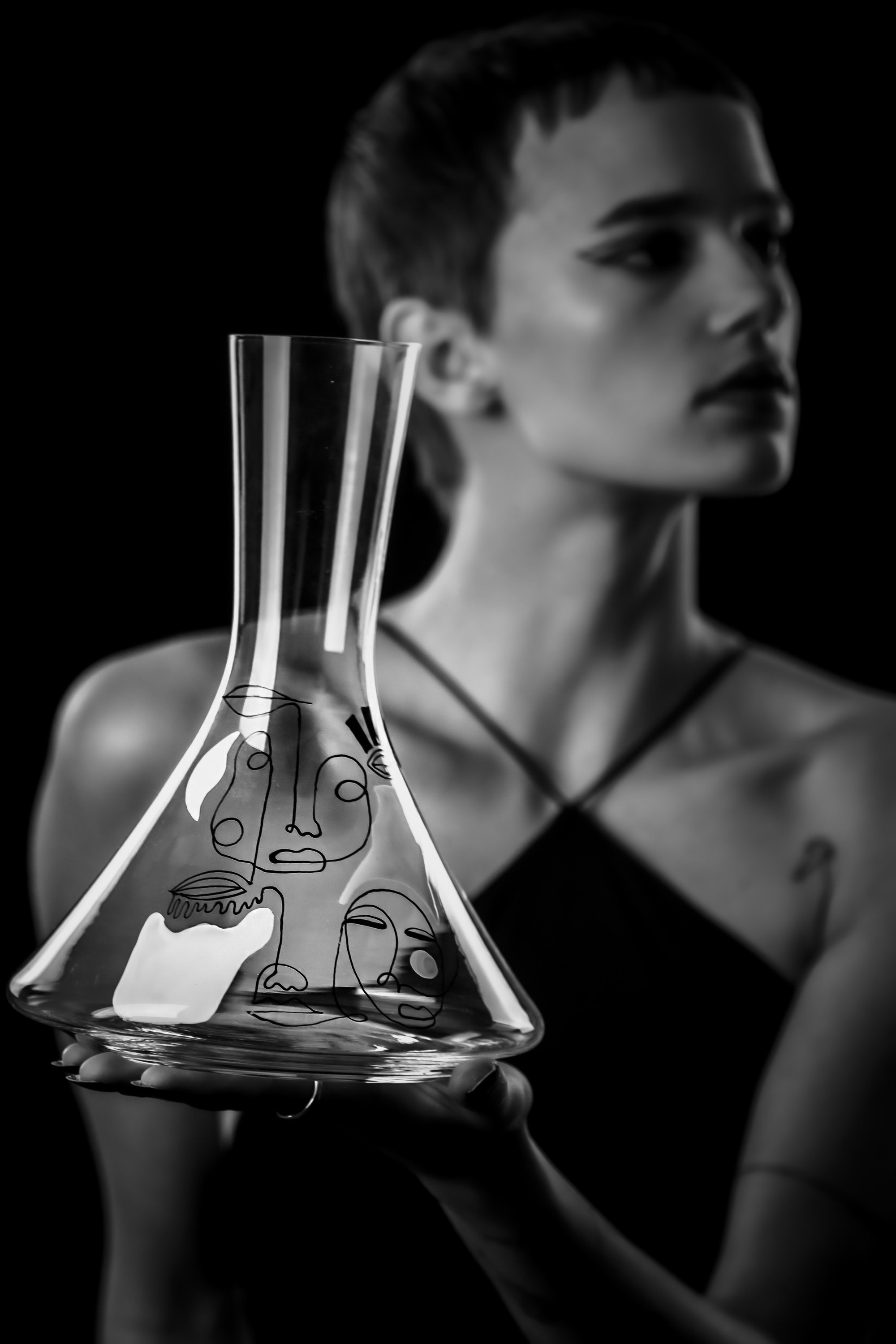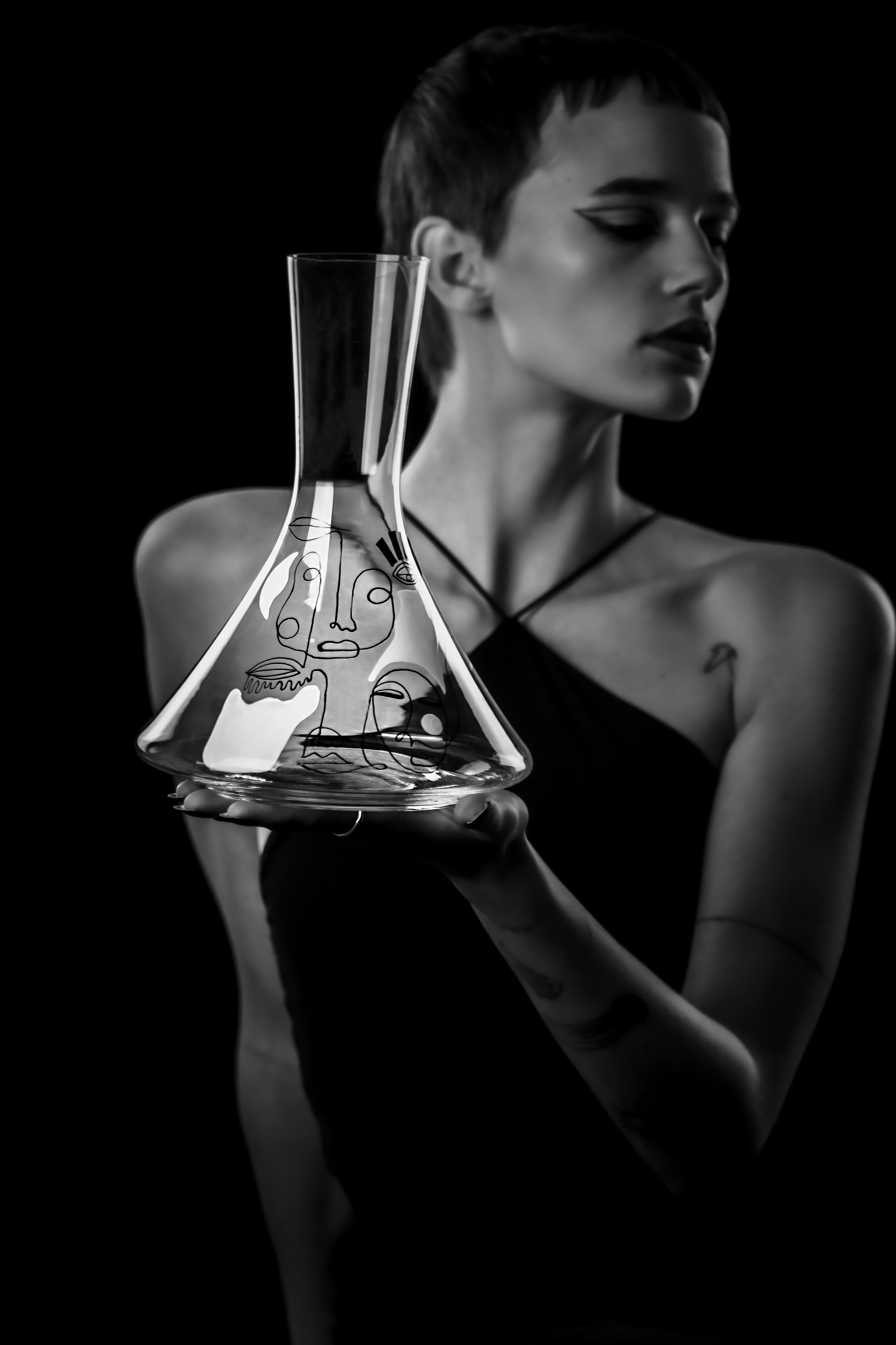 Na první pohled vás zaujme výrazná a ručně malovaná abstraktní malba, která je sama o sobě obraz. Perfektní dekantér na víno, ale i vodu, je pro milovníky umění a kreativních věcí. Podívejte se na další malované dekory a zkombinujte si jedinečné sklo začínající a končící s vámi každý nový den.