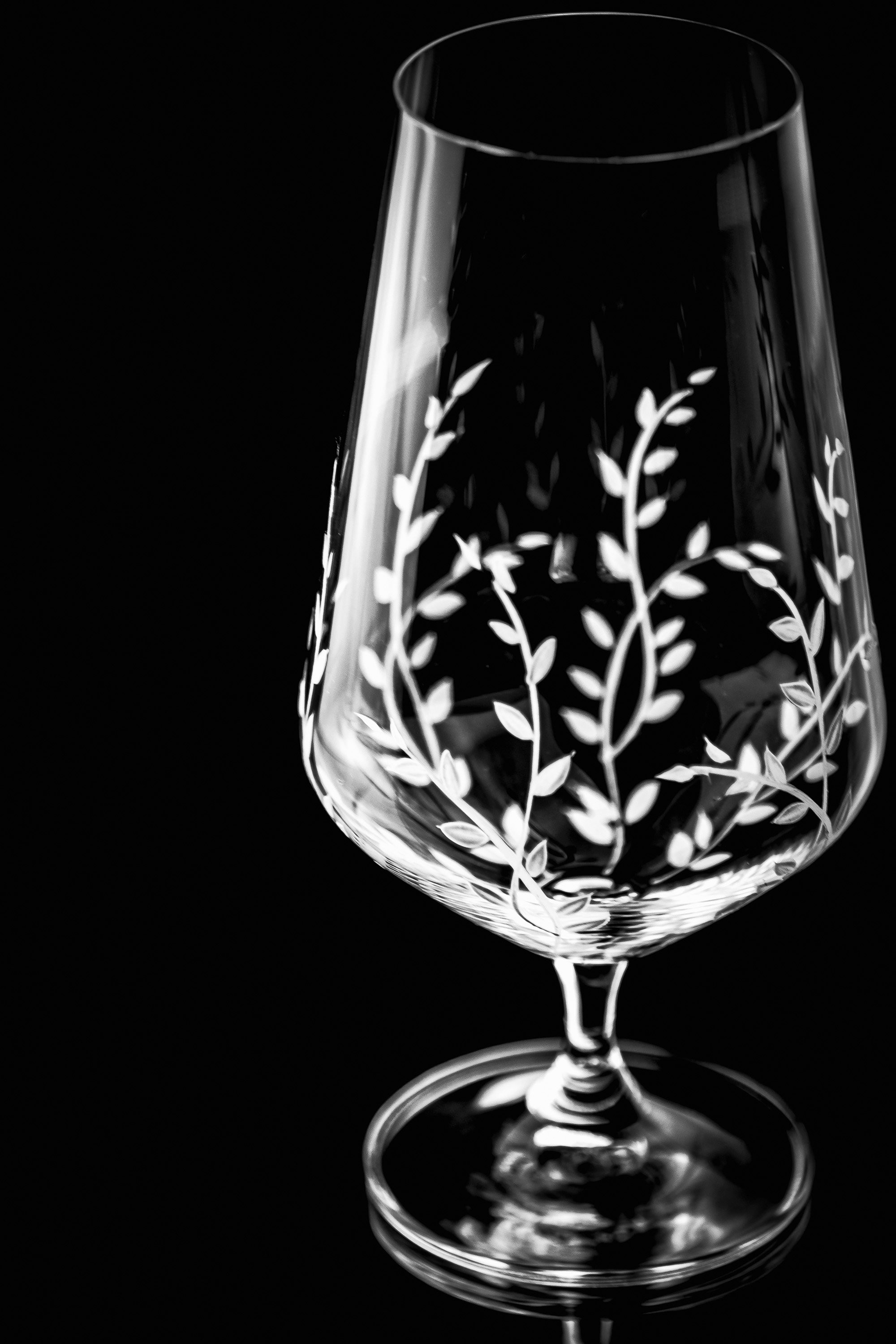 Sklo: Čiré, Ručně malované, Bezolovnatý český křišťál, Vysoký smalt