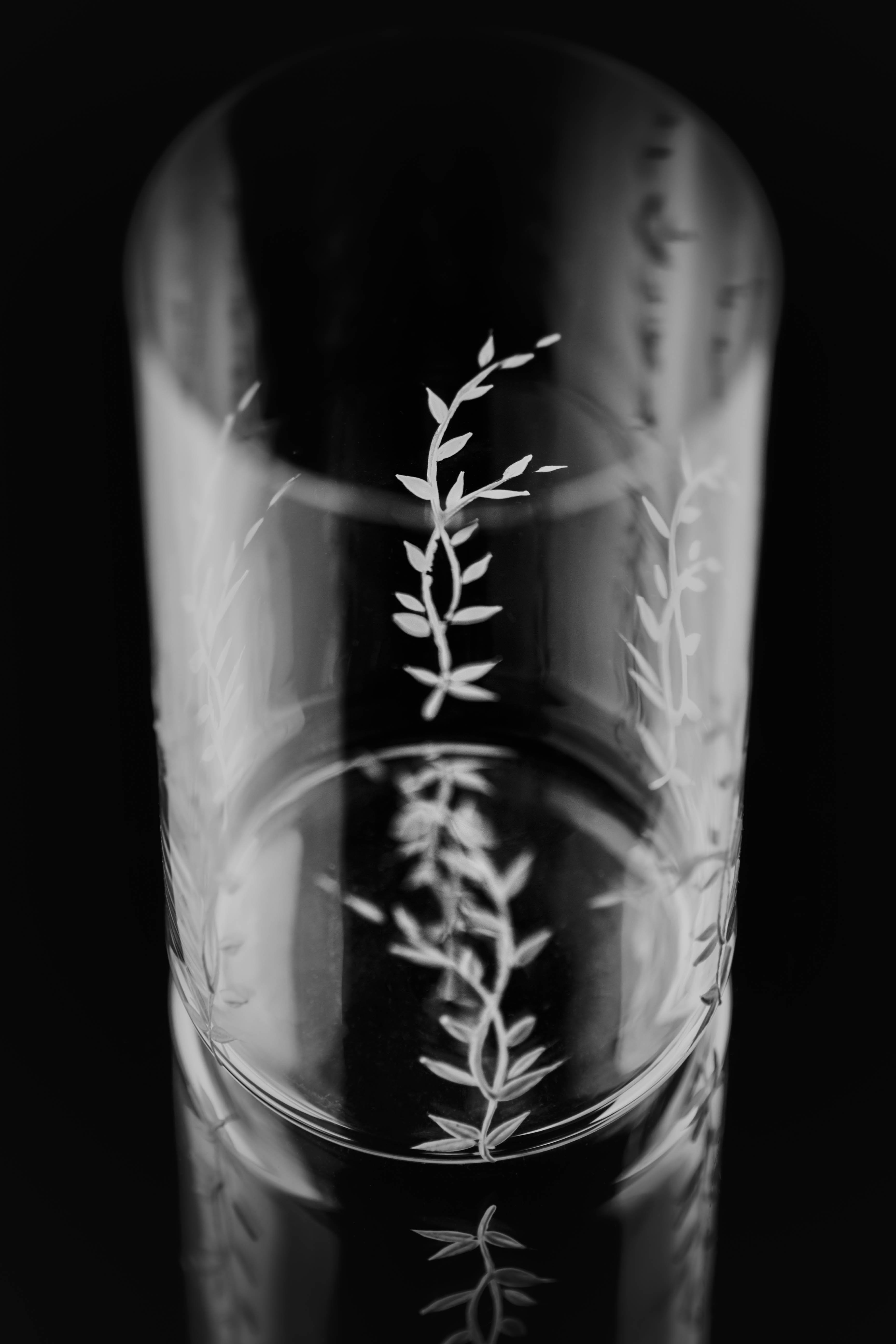 Sklo: Čiré, Ručně malované, Bezolovnatý český křišťál, Vysoký smalt