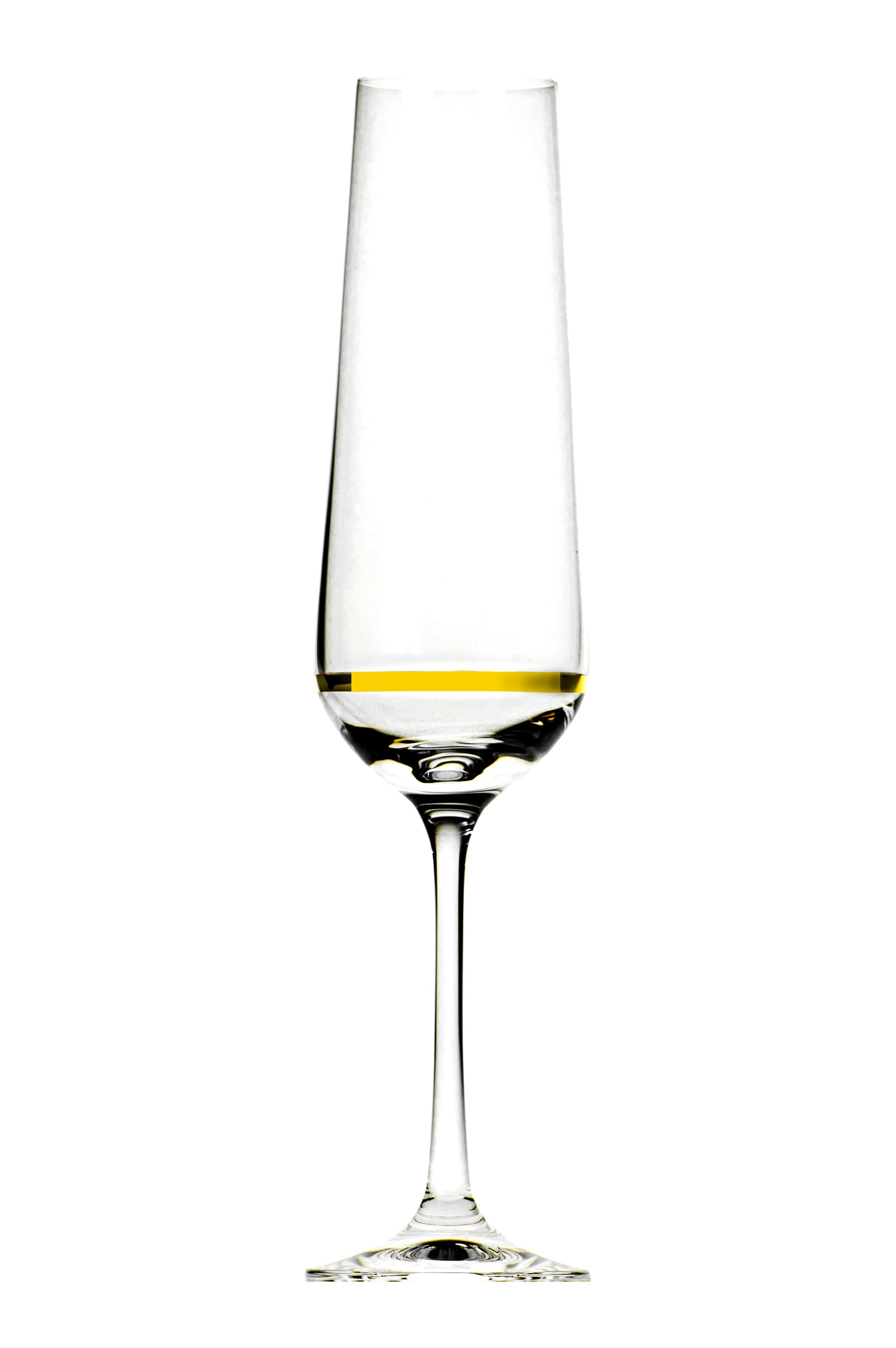 Tato sklenice z kolekce Trendy byla vytvořena pro minimalistické oko a viditelnost šampusového nápoje. Heslem je - hladkost a jednoduchost. Úzký podlouhlý tvar kalichu se u otvoru zužuje a u vnější strany dna je ručně zdobený tenkým zlatým ráfkem, který je moderně pojat tradiční technikou ráfkování a práce s tekutým karátovým zlatem.