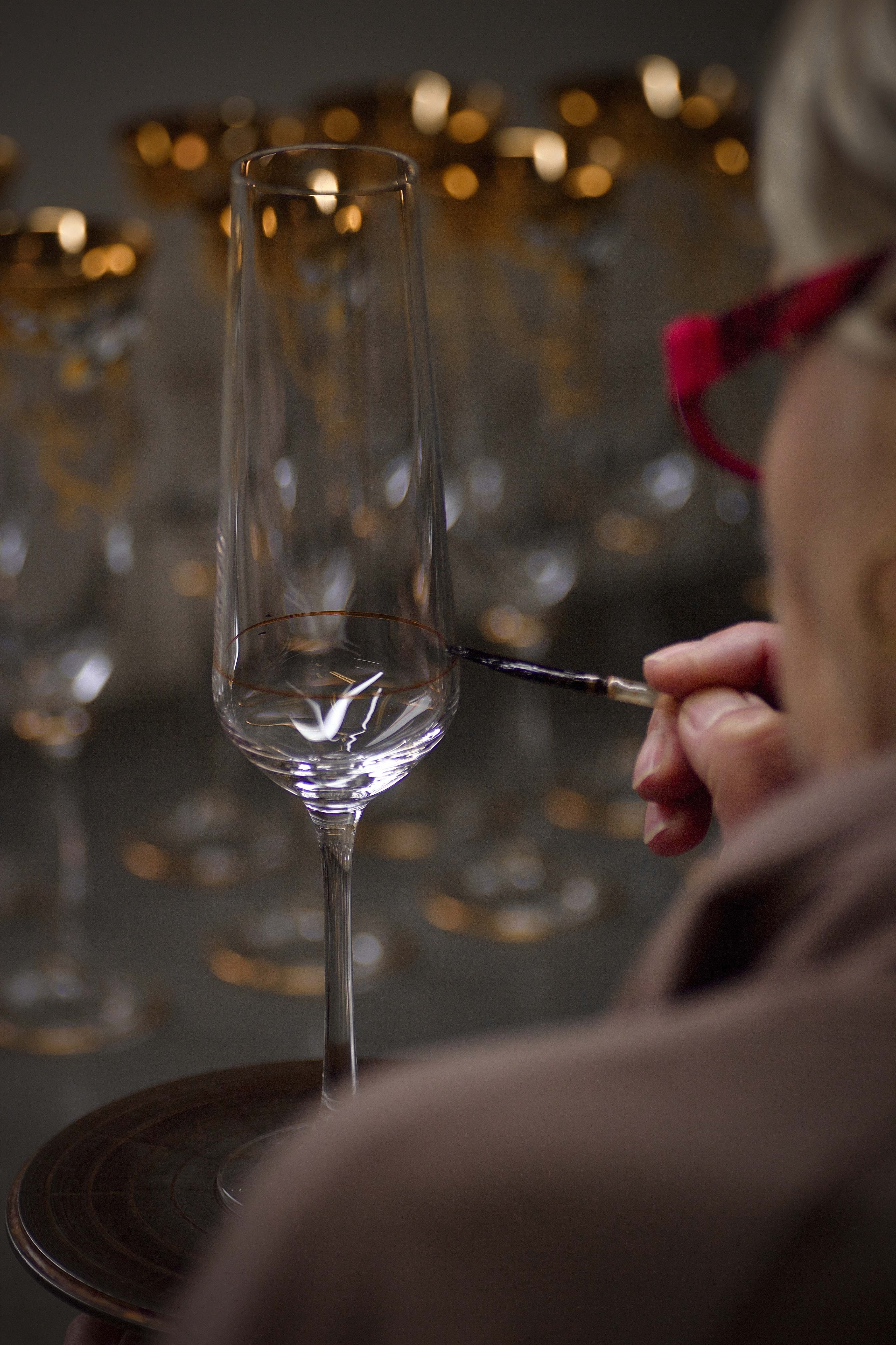Sklo: Čiré, Ručně malované, Ryzí zlato, Bezolovnatý český křišťál