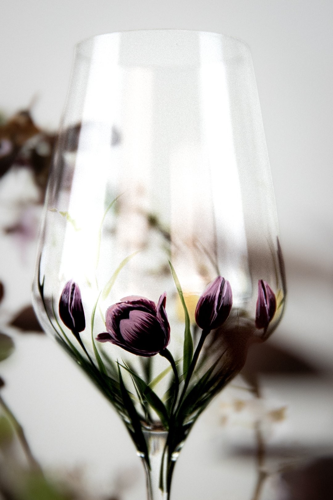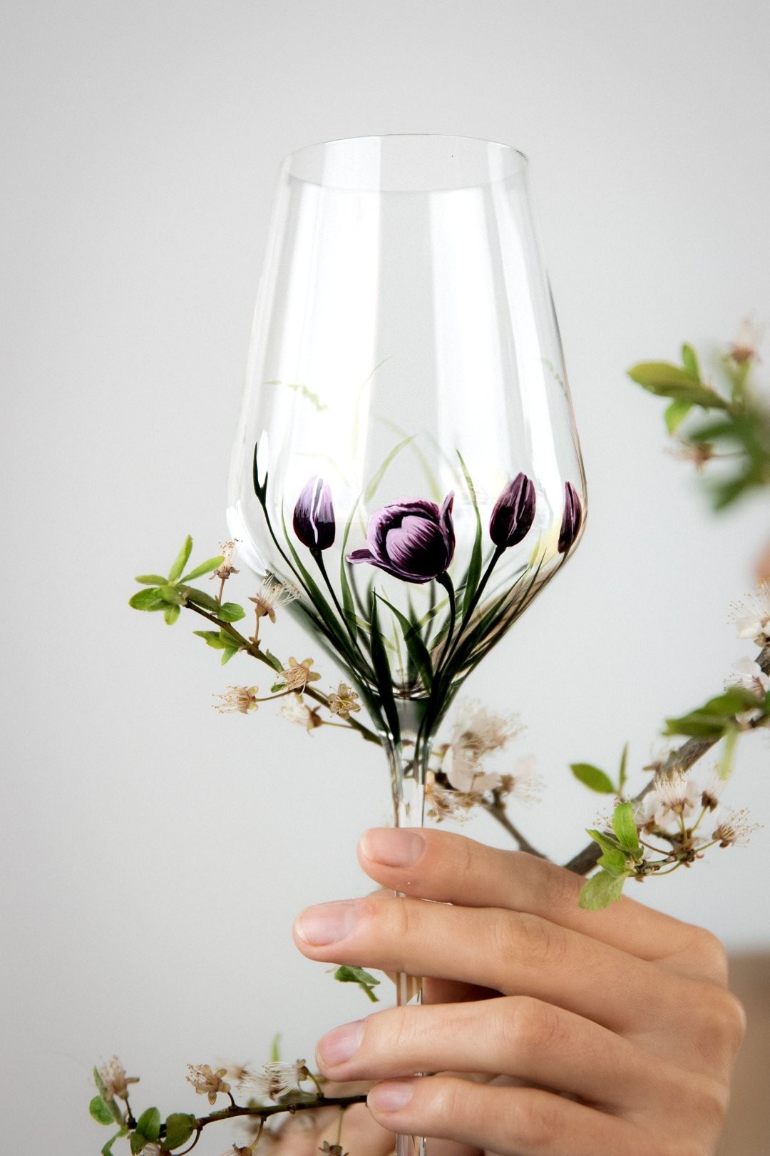 Ručně malovaná sklenička TULIPS je oslavou jednoduché krásy jara. Jemný motiv tulipánů obepíná celý kalíšek a vytváří dojem, jako by květy sklo něžně objímaly. Každý detail je malovaný s citem pro lehkost a harmonii, aby vynikla čistota tvaru i půvab květin. TULIPS přináší do každého dne klid, radost a kousek rozkvetlé zahrady, kterou si můžete vychutnat s každým douškem.