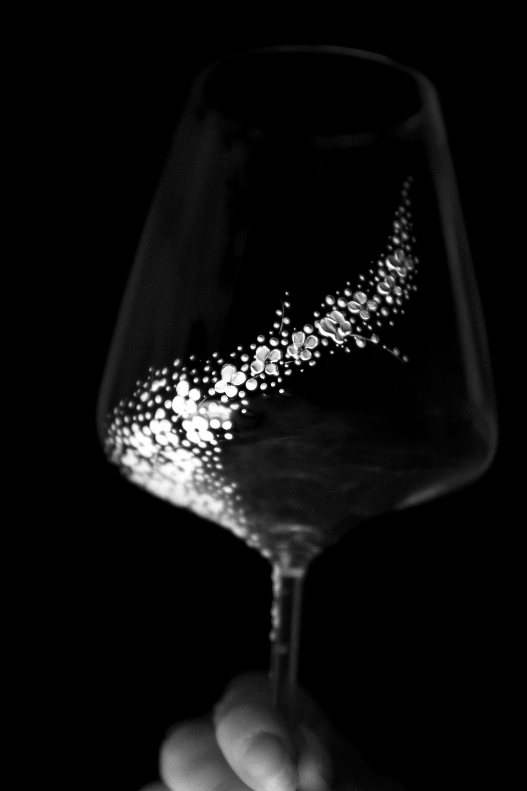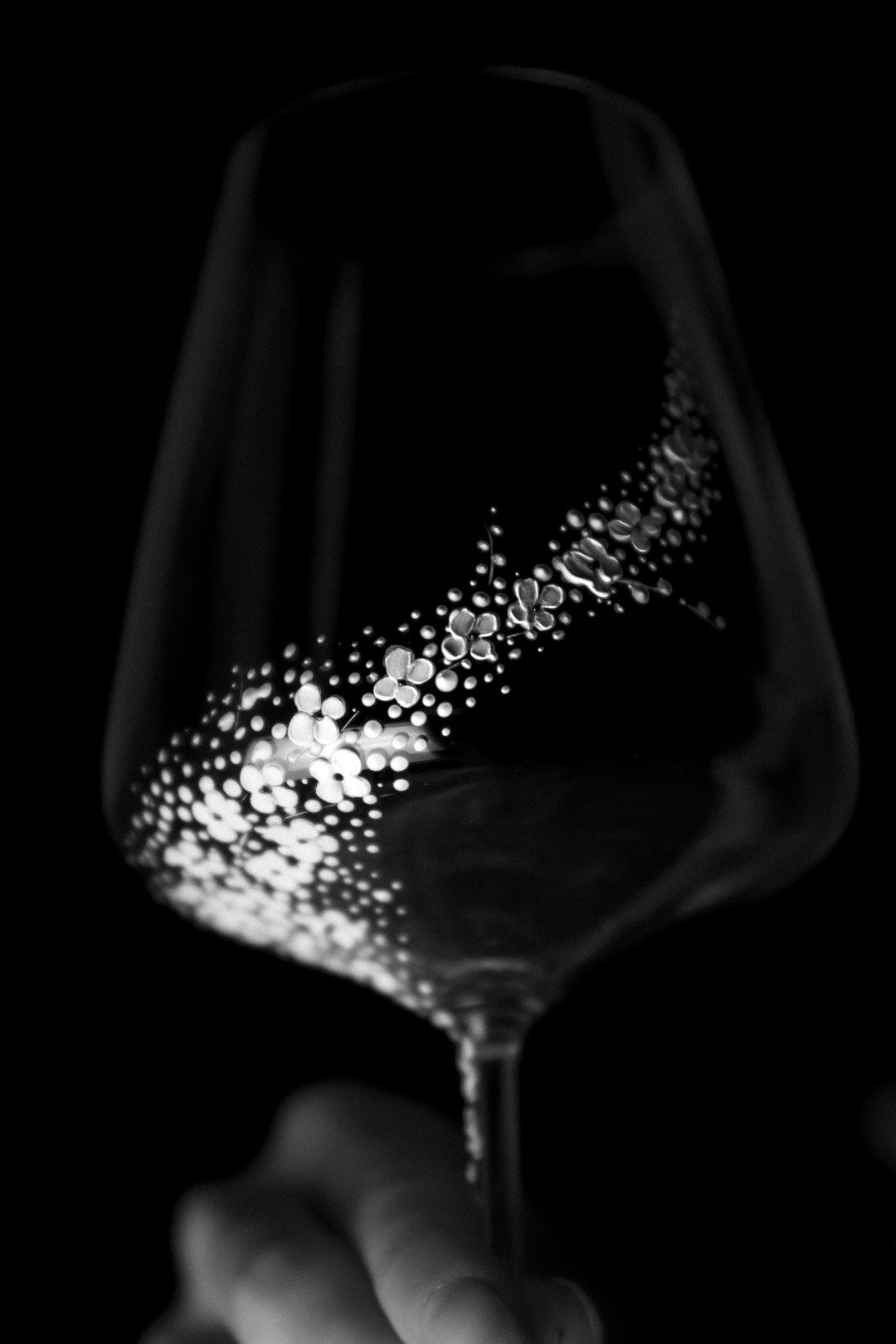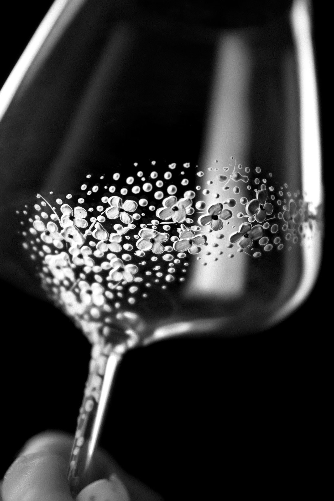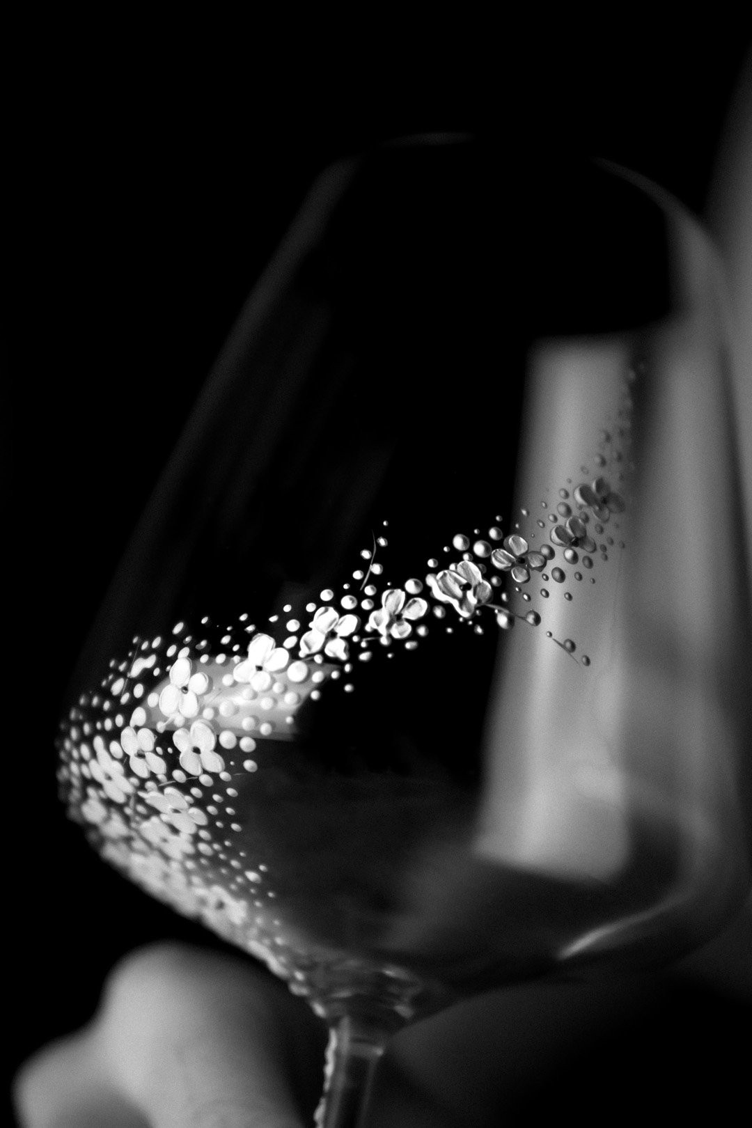 Sklenice na víno Veil white je zdobena jemnými bílými květy, které jsou ručně malovány trvalým smaltem a vytvářejí elegantní design. Tato nádherná dekorace jemně rozsplývá podél sklenice a nabízí dotek rafinované krásy při pití.